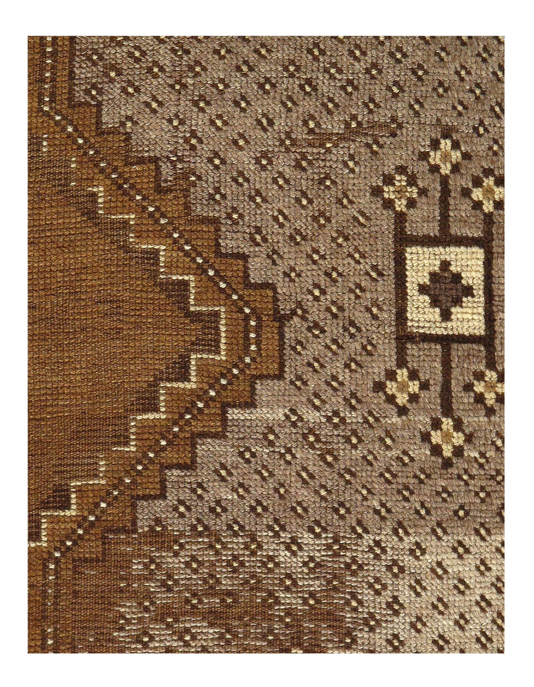 This is Vintage hand-knotted Turkish Oushak rug. The piece was made from 100% hand-spun lamb's wool rug with all natural dyes. Each rug has a dense, soft pile, and excellent quality.