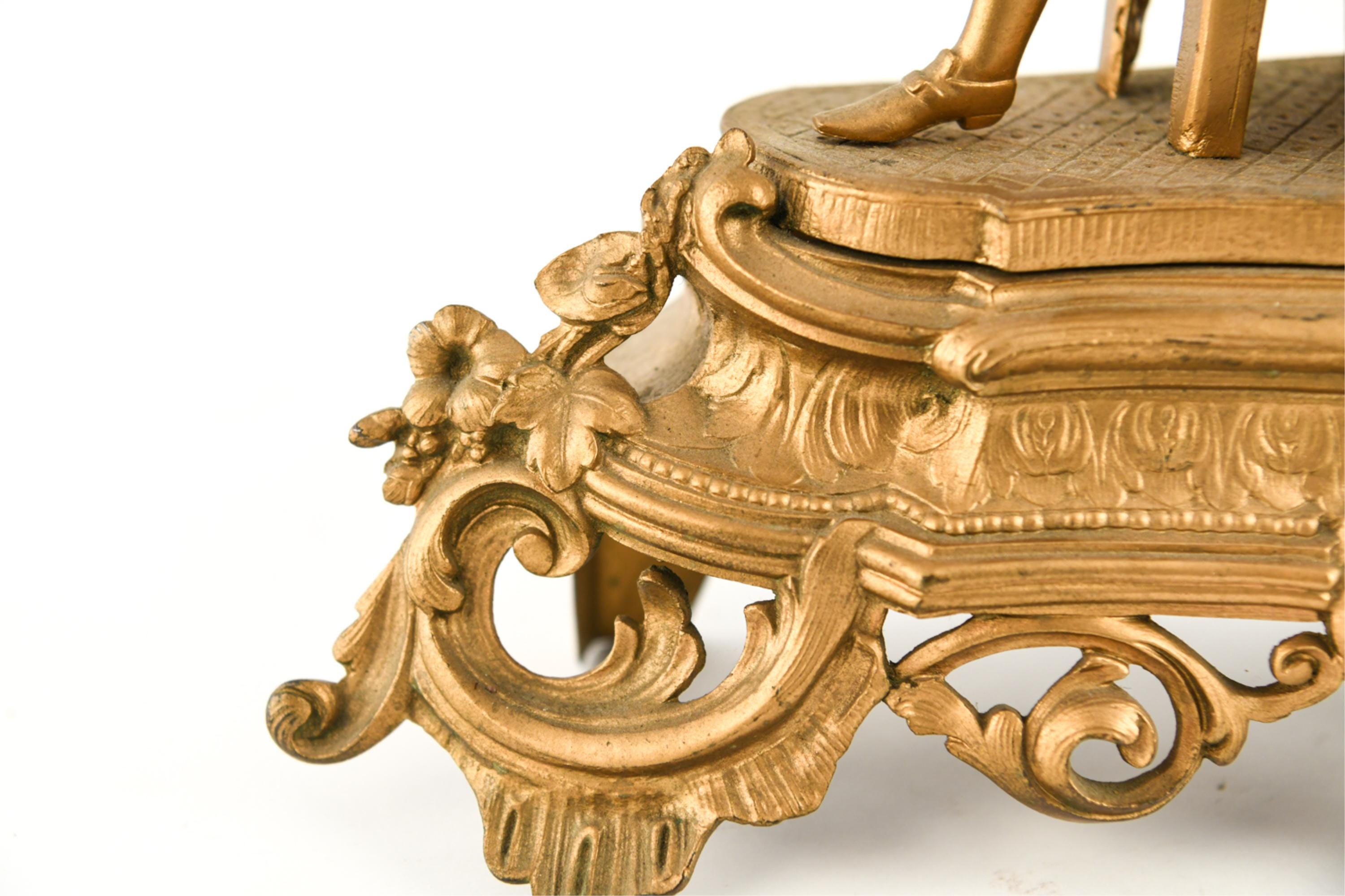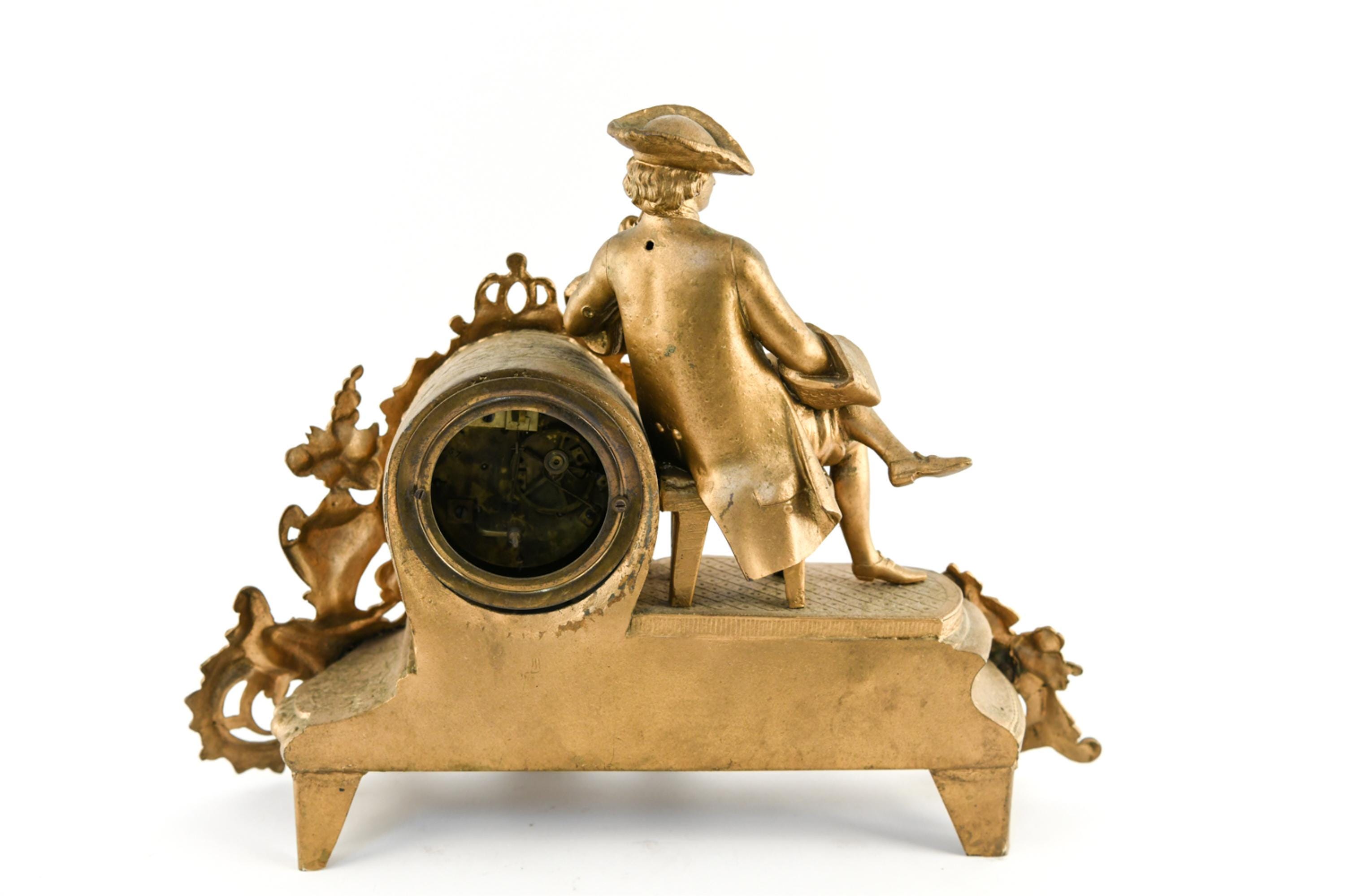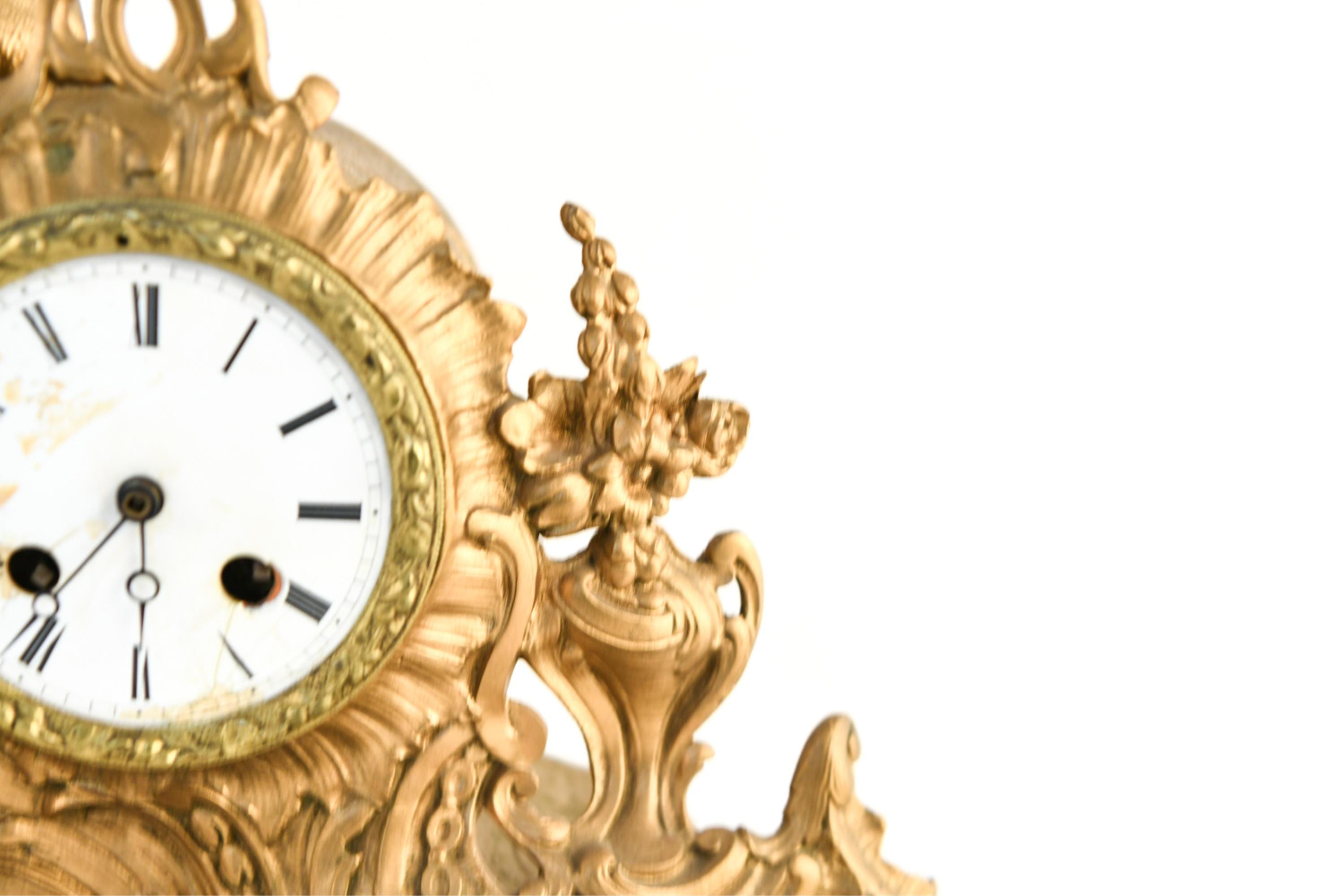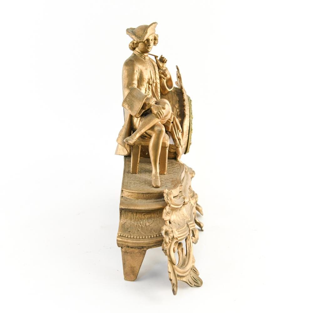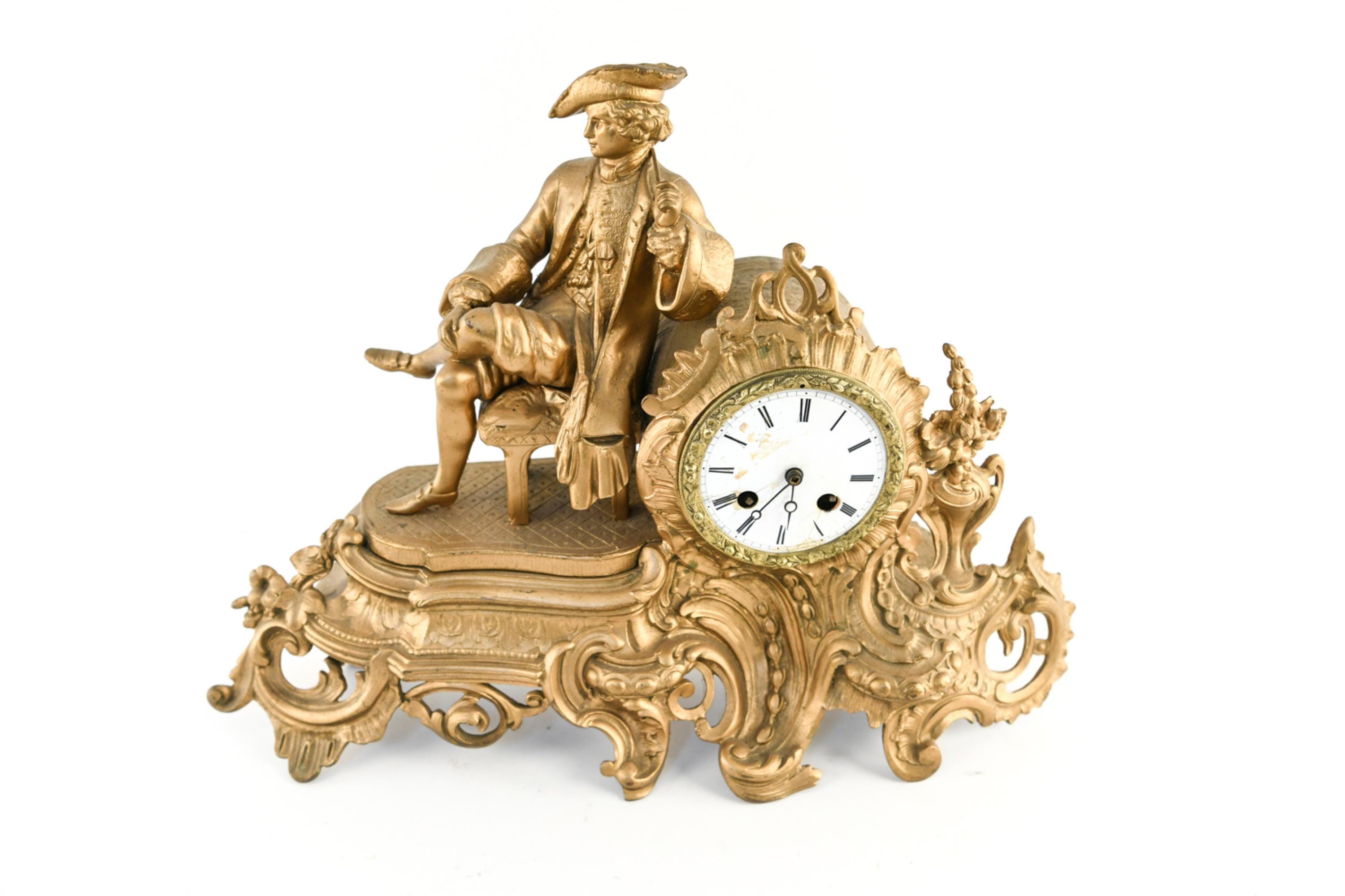 Dimensions: H 13" x W 17" x D 6" Condition: Untested with missing clock components including keys and clock back. Wear consistent with age and use including scratches and paint loss. Some hairline cracks to clock face with old repairs