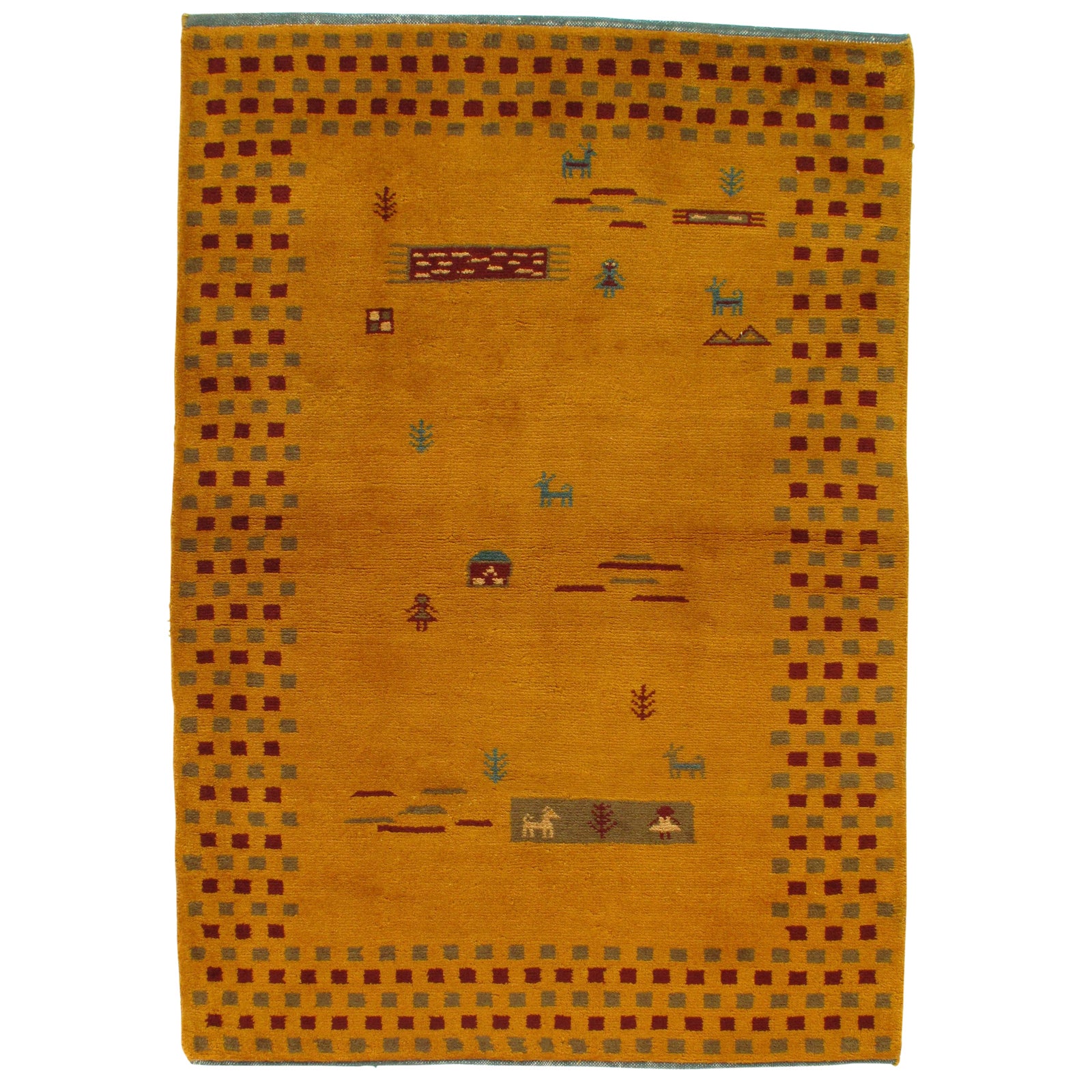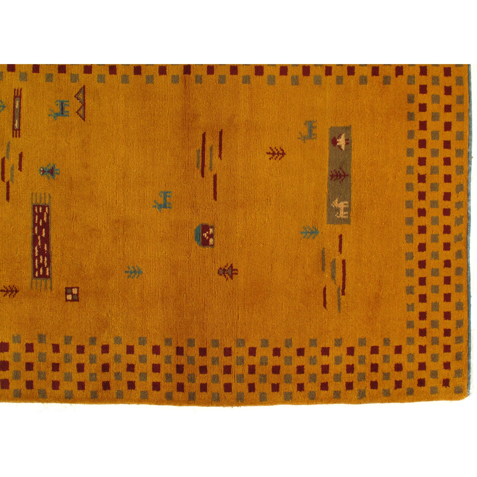 This is a contemporary Indian Gabbeh rug. The piece was hand-knotted from fine lamb's wool. A lovely piece for your home. This rug has a dense, soft pile, and excellent quality, to ensure that you will enjoy the look and feel of it for years to come.