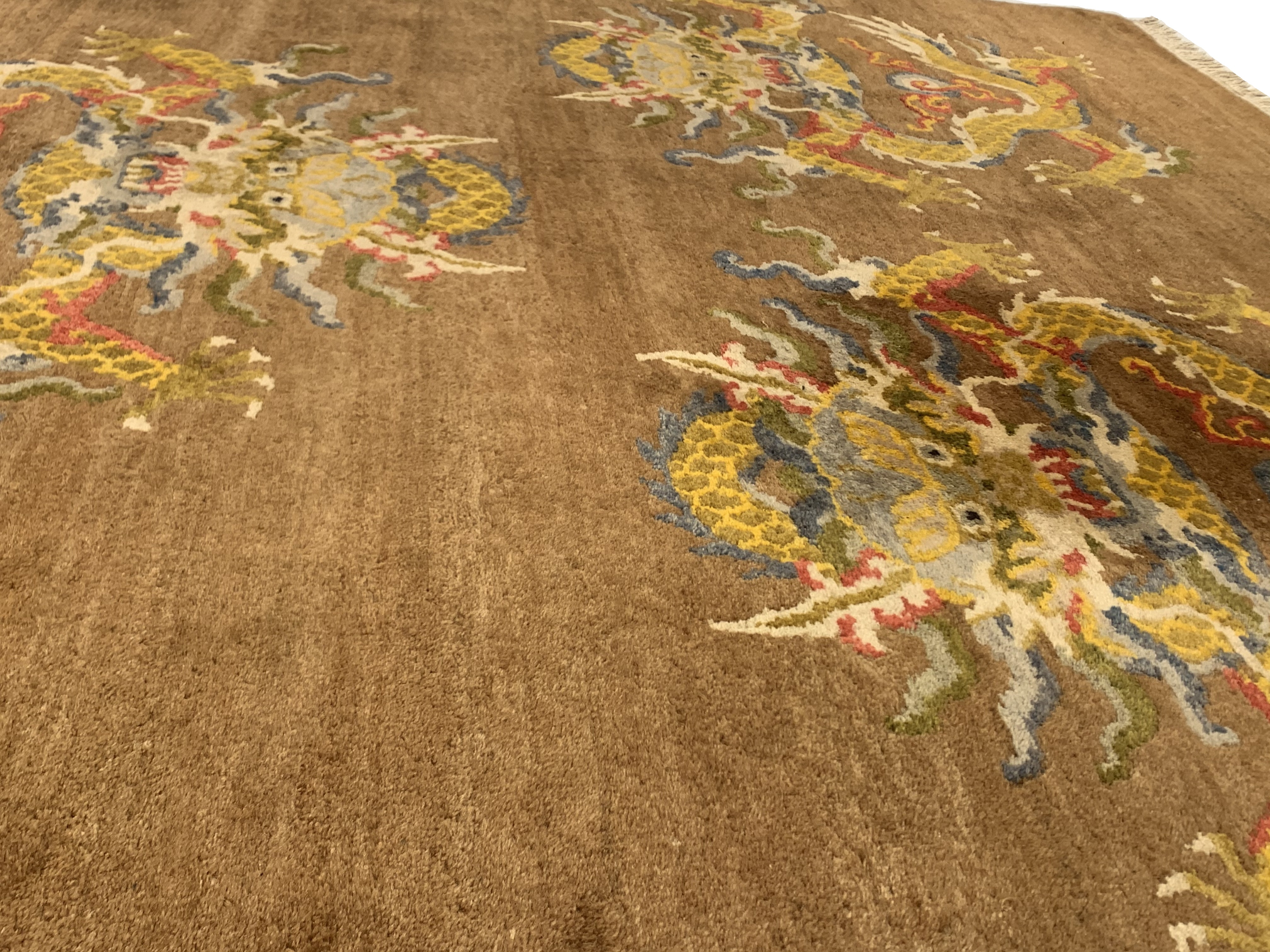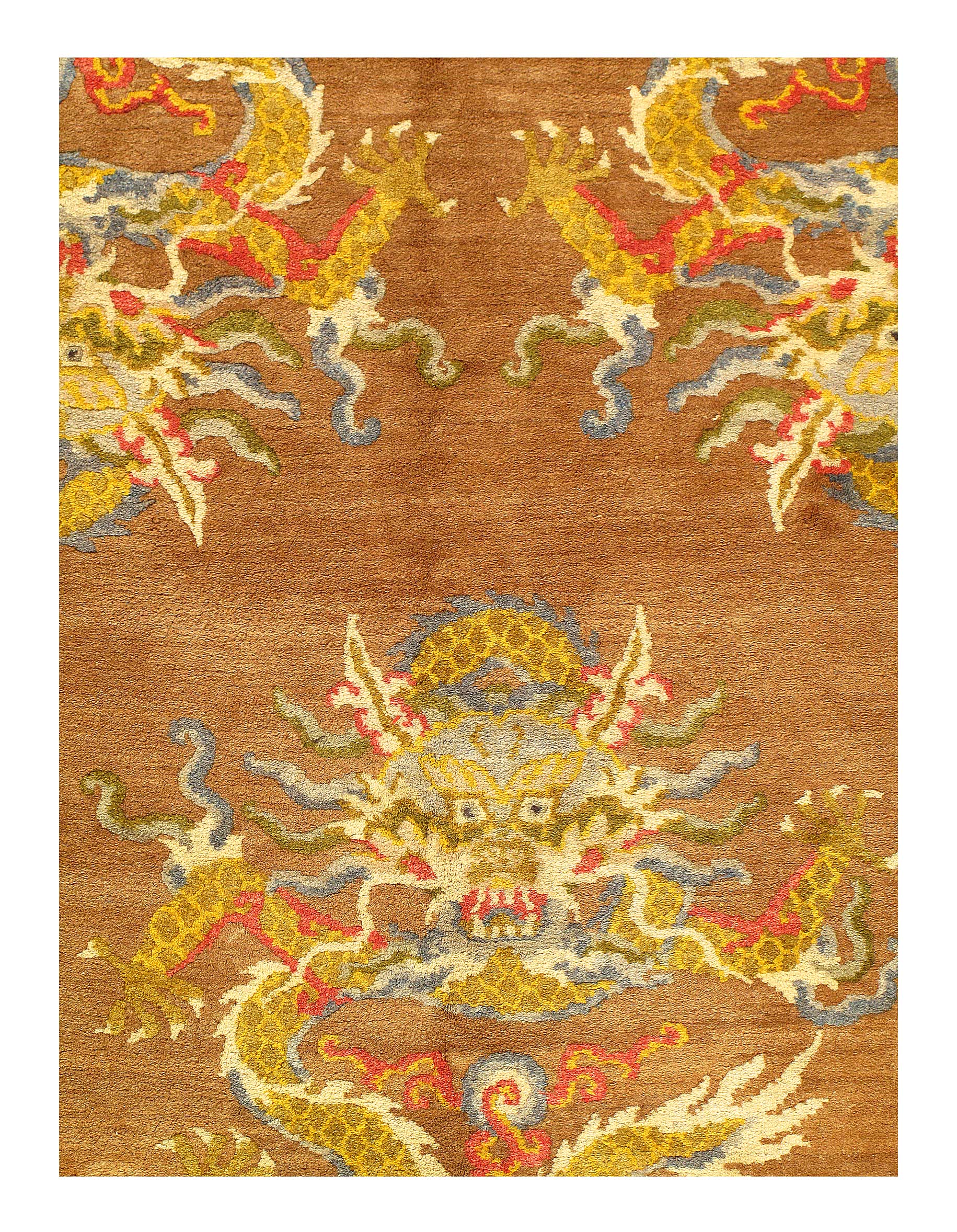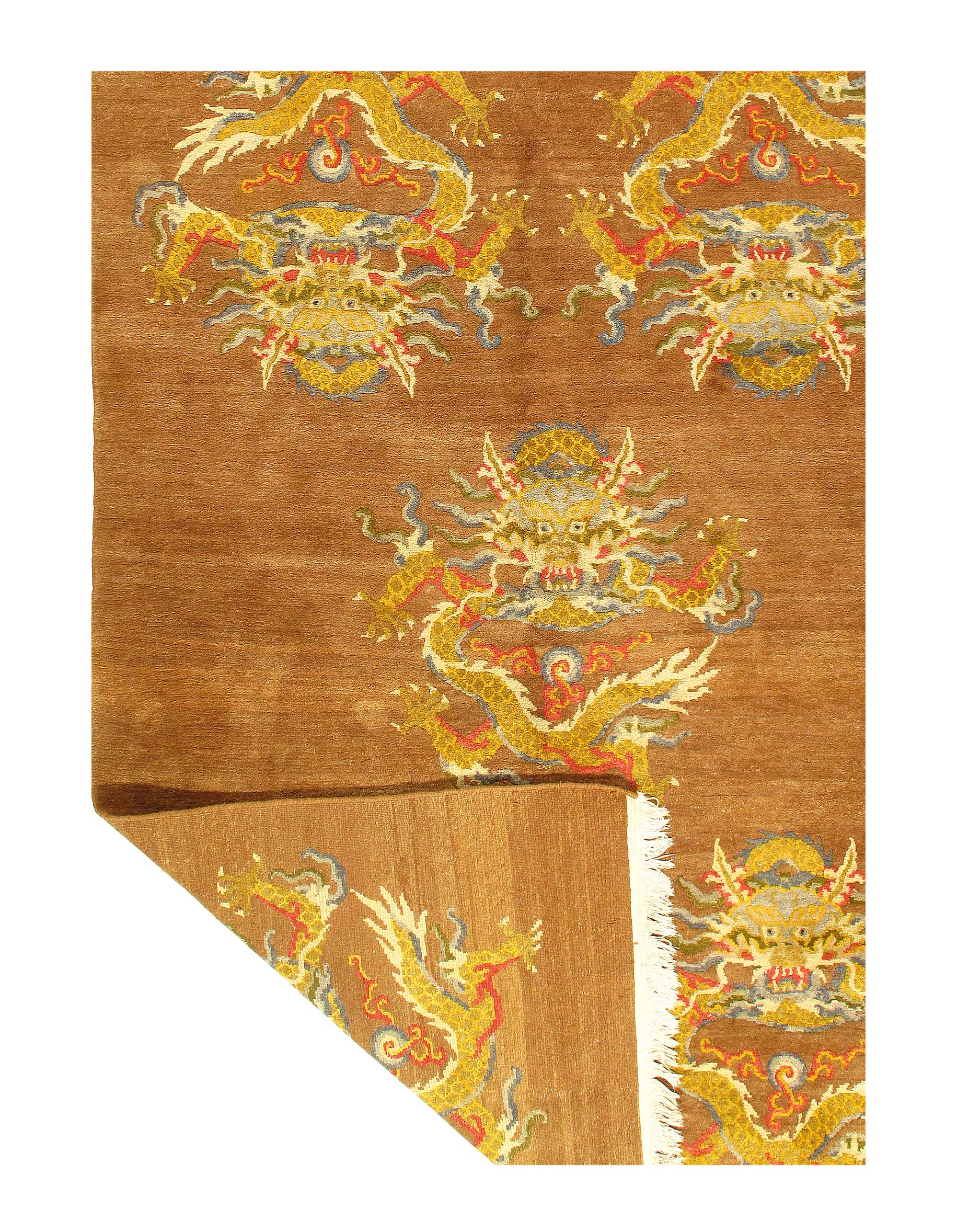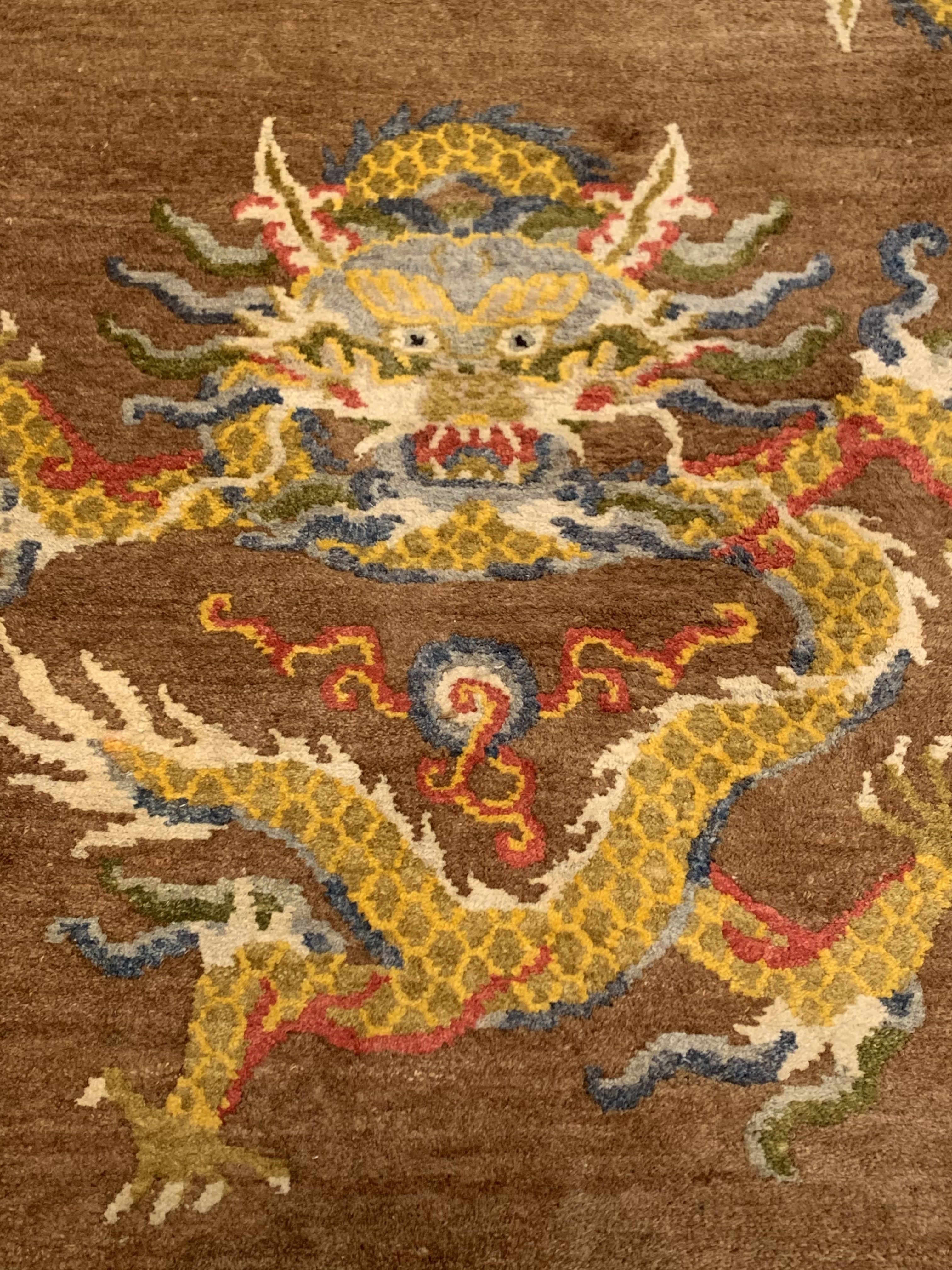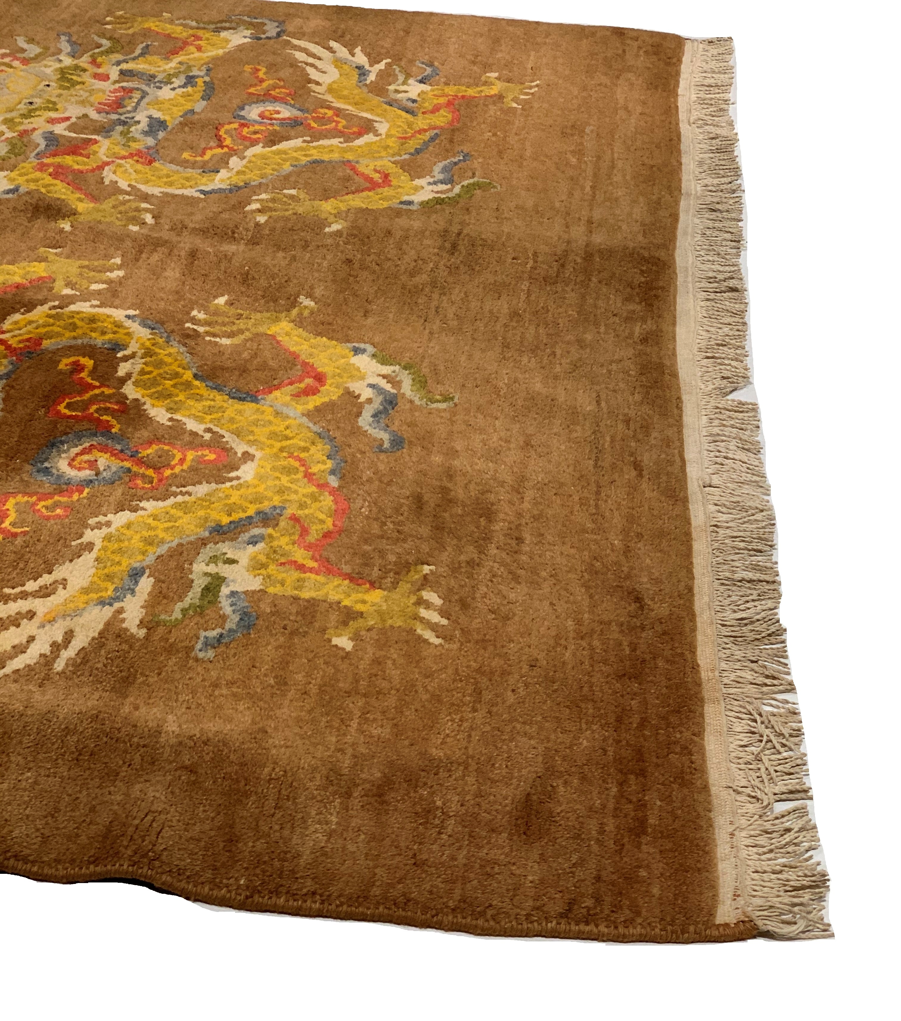 Chinese Deco Rug, Origin: China, Circa: Early 20th Century – Here is an exciting and appealing antique Oriental carpet – an antique Art Deco rug that was designed and woven in China during the early years of the twentieth century. Heavily informed by the aesthetic inclinations of the Art Deco period, this unique carpet is a compelling and thought-provoking example. A scalloped border of Blue encloses a Beige / Ivory sand field on this exquisitely subtle and restrained antique Chinese Art Deco. At first the field appears empty or open, but it is actually covered by a tone-on-tone design of scrolls and cloud-bands emanating inward from the outer edges. In their sinuous rhythms they echo the scalloped forms of the border and continue its visual effects across the carpet in a more subdued manner. This carpet testifies to the masterful design sensibilities of Chinese weavers as they made the transition into the modern world. The Art Deco movement had an outside influence on the world of art and design, and some of the most important qualities and characteristics of that movement may be found in this fine rug.