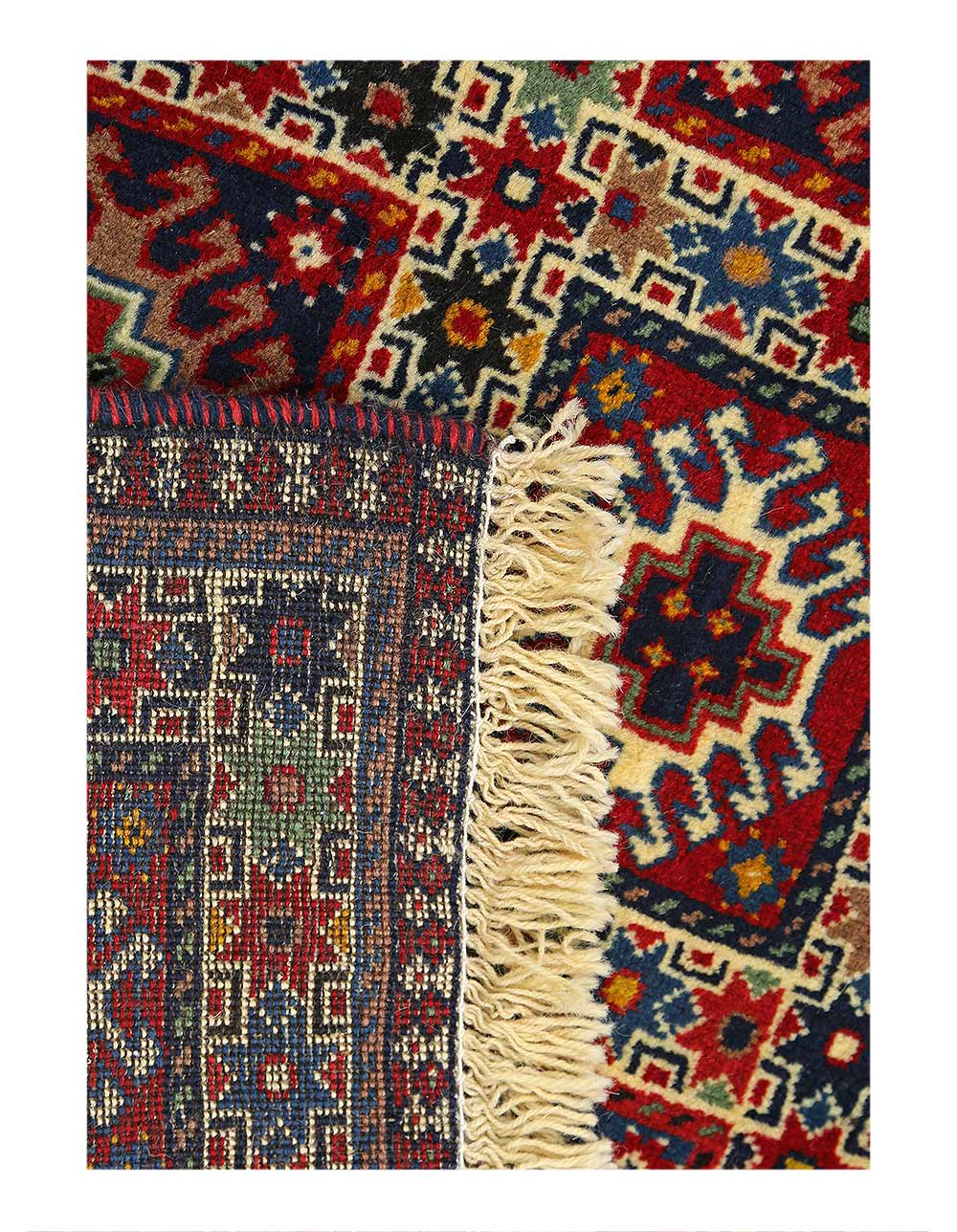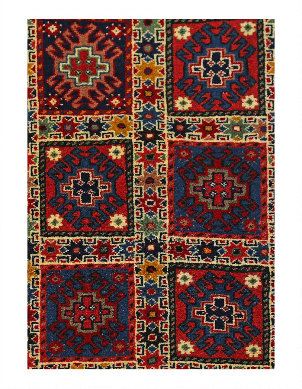 The pile used in Yalameh rugs is very fine, particularly in comparison to other tribal designs, using soft wool based on a Wool foundation. The pattern is distinctive with large repeated diamonds in a straight line down the carpet, often with geometrical animal or human prints scattered across the field. Dark red or light brown on a blue or orange background is most common for Yalameh, similar to Shiraz rugs, the rugs compliment modern or minimalist furniture beautifully, giving the living space an aura of luxurious style and warm.