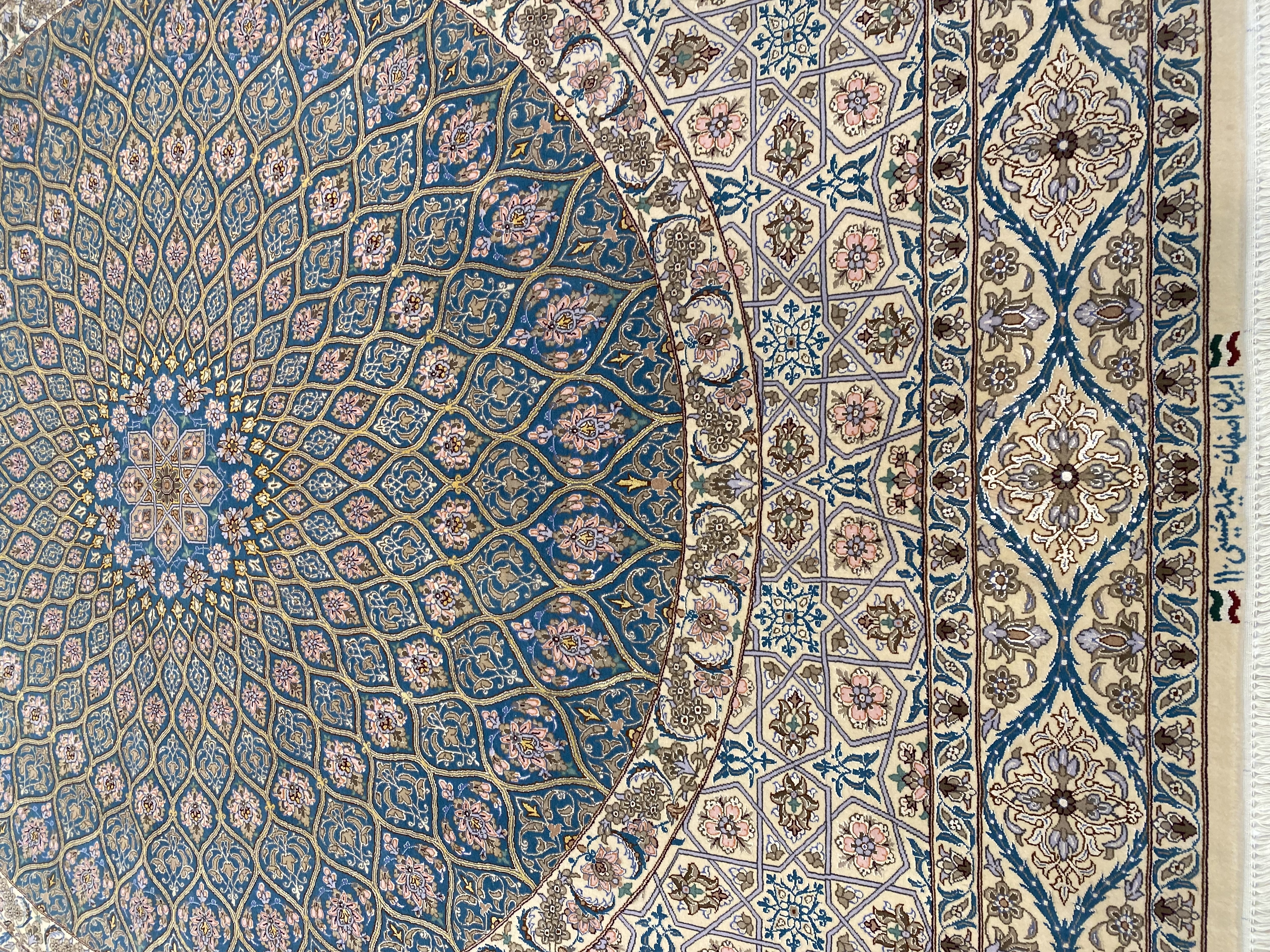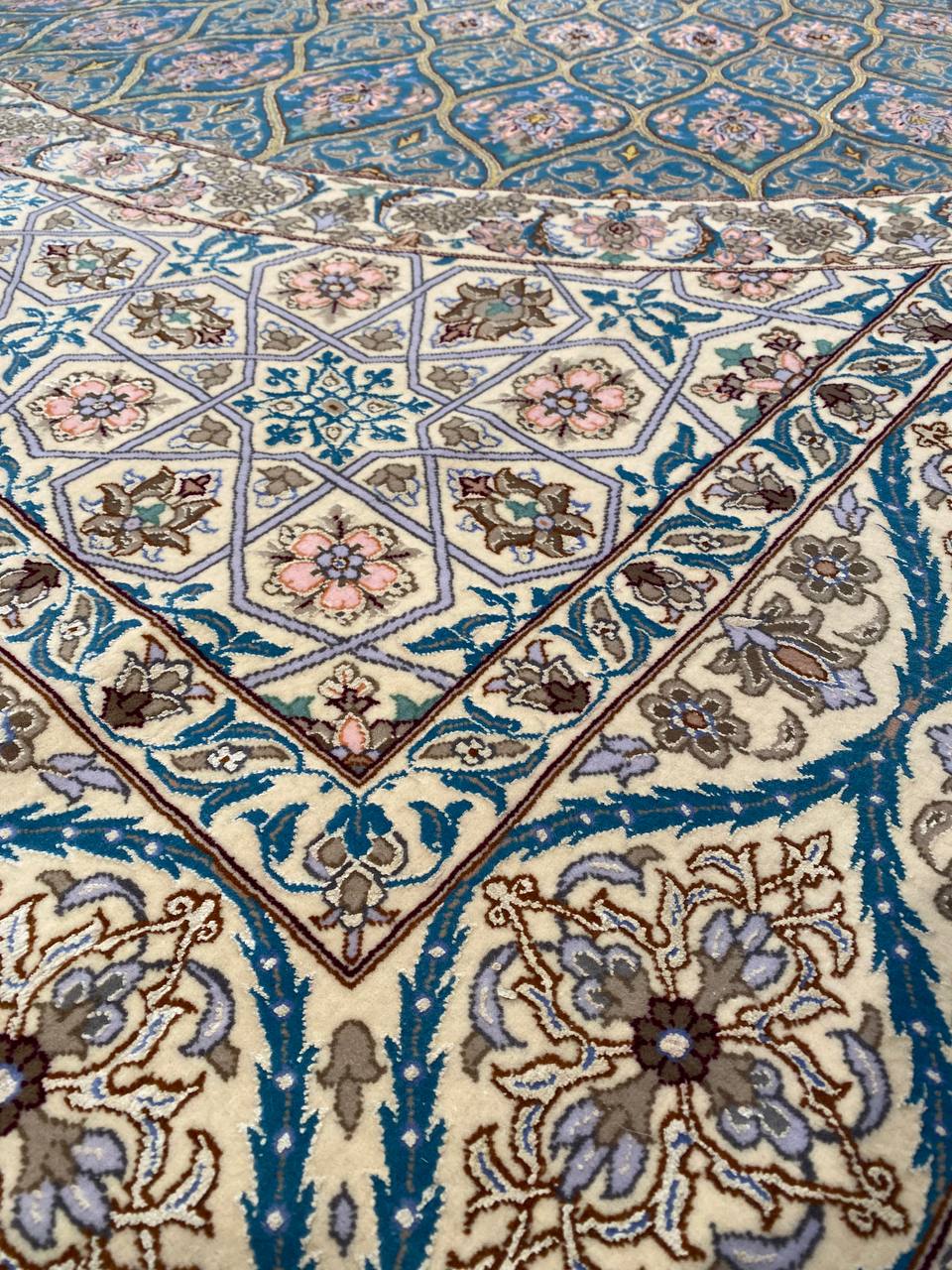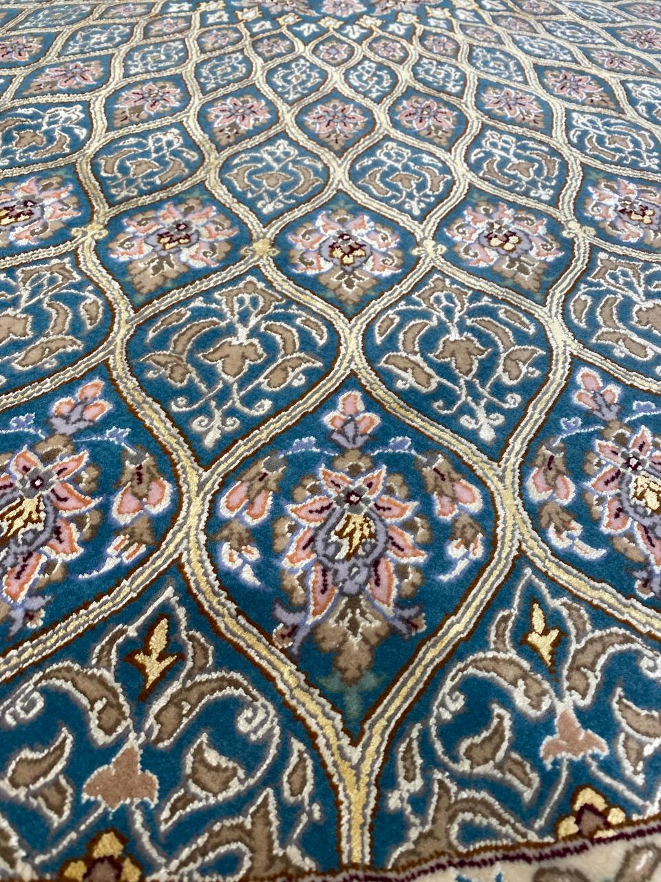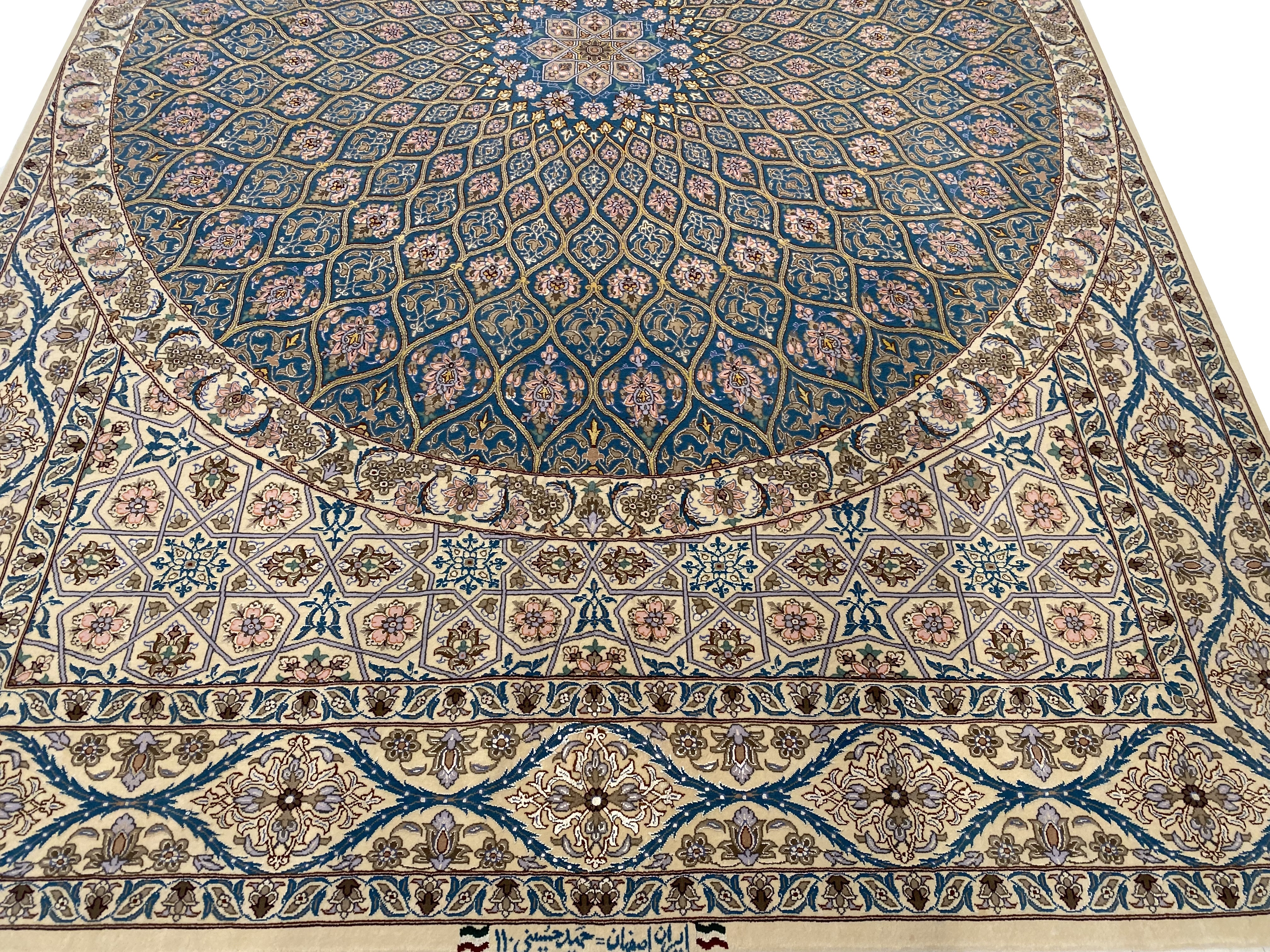 The Isfahan rugs are made with exceptionally good quality of wool & silk. They use traditional motifs inspired by architectural tiles that once decorated the historical buildings from which these rugs originated in. When it comes to high class designs the composition, patterns, and materials of Isfahan meets those expectations. The motifs usually consist of medallions with palmetts and also figural motifs. Isfahan rugs have an extremely high knot density and are woven with silk and golden threads, which give them their luxurious look.