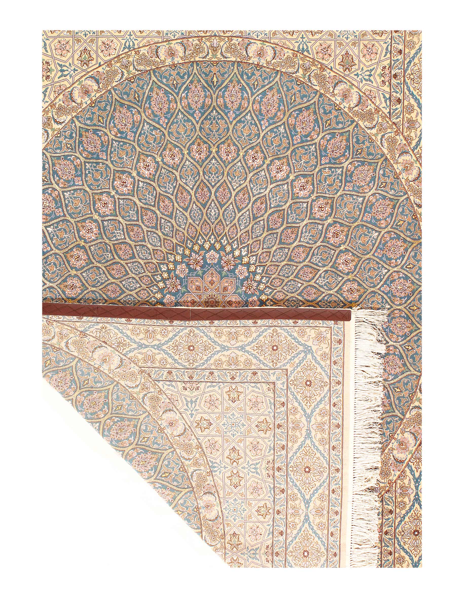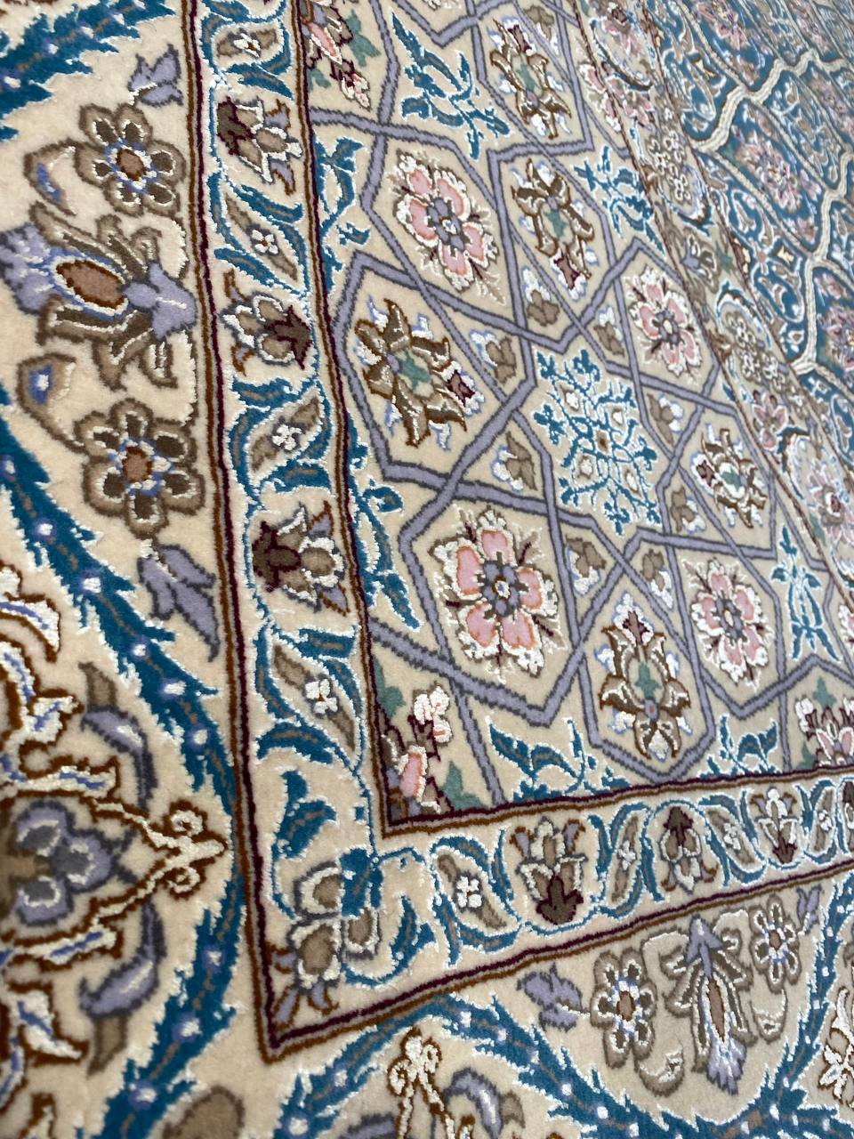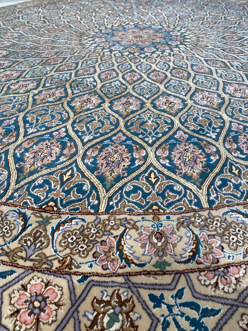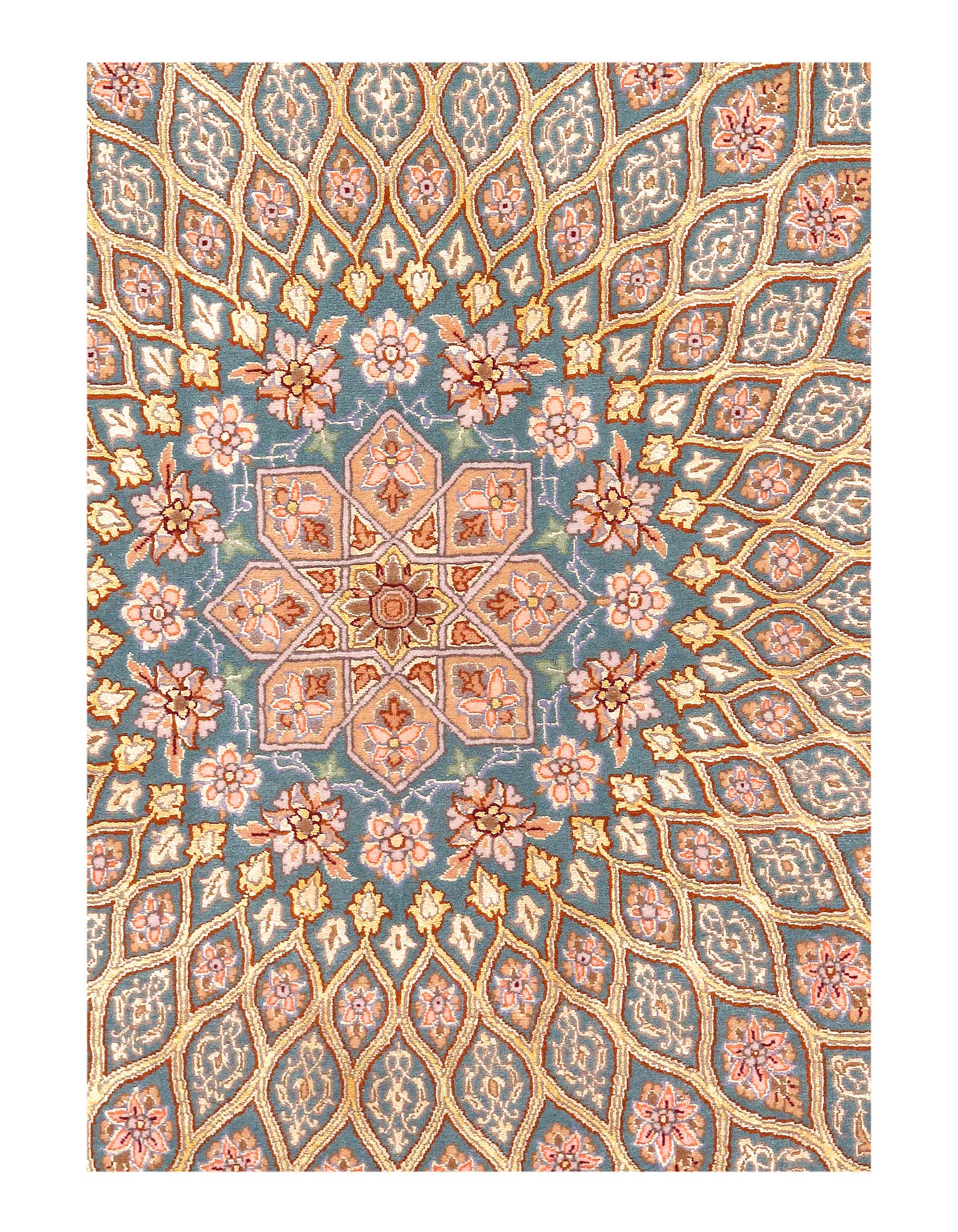 The Isfahan rugs are made with exceptionally good quality of wool & silk. They use traditional motifs inspired by architectural tiles that once decorated the historical buildings from which these rugs originated in. When it comes to high class designs the composition, patterns, and materials of Isfahan meets those expectations. The motifs usually consist of medallions with palmetts and also figural motifs. Isfahan rugs have an extremely high knot density and are woven with silk and golden threads, which give them their luxurious look.