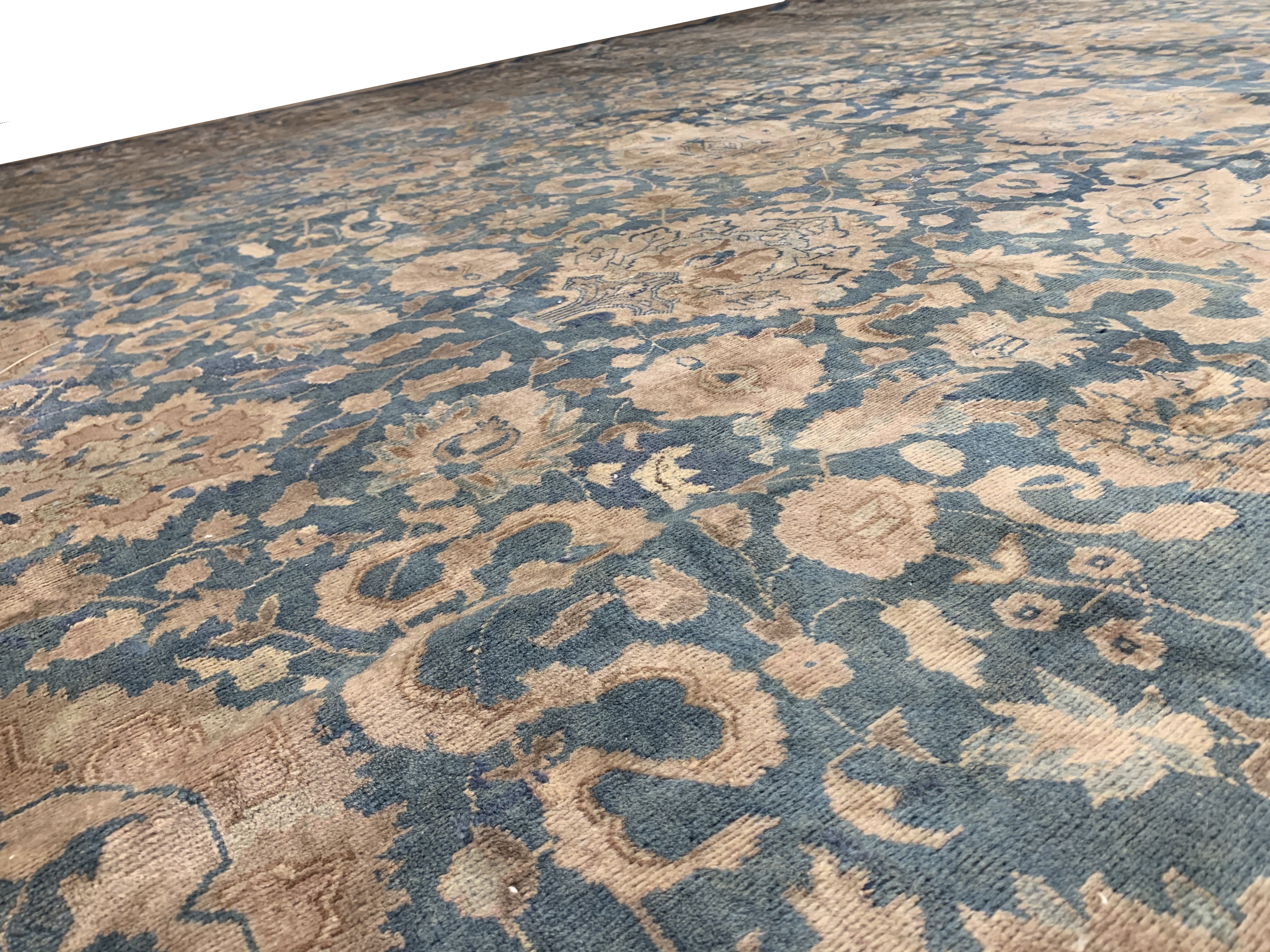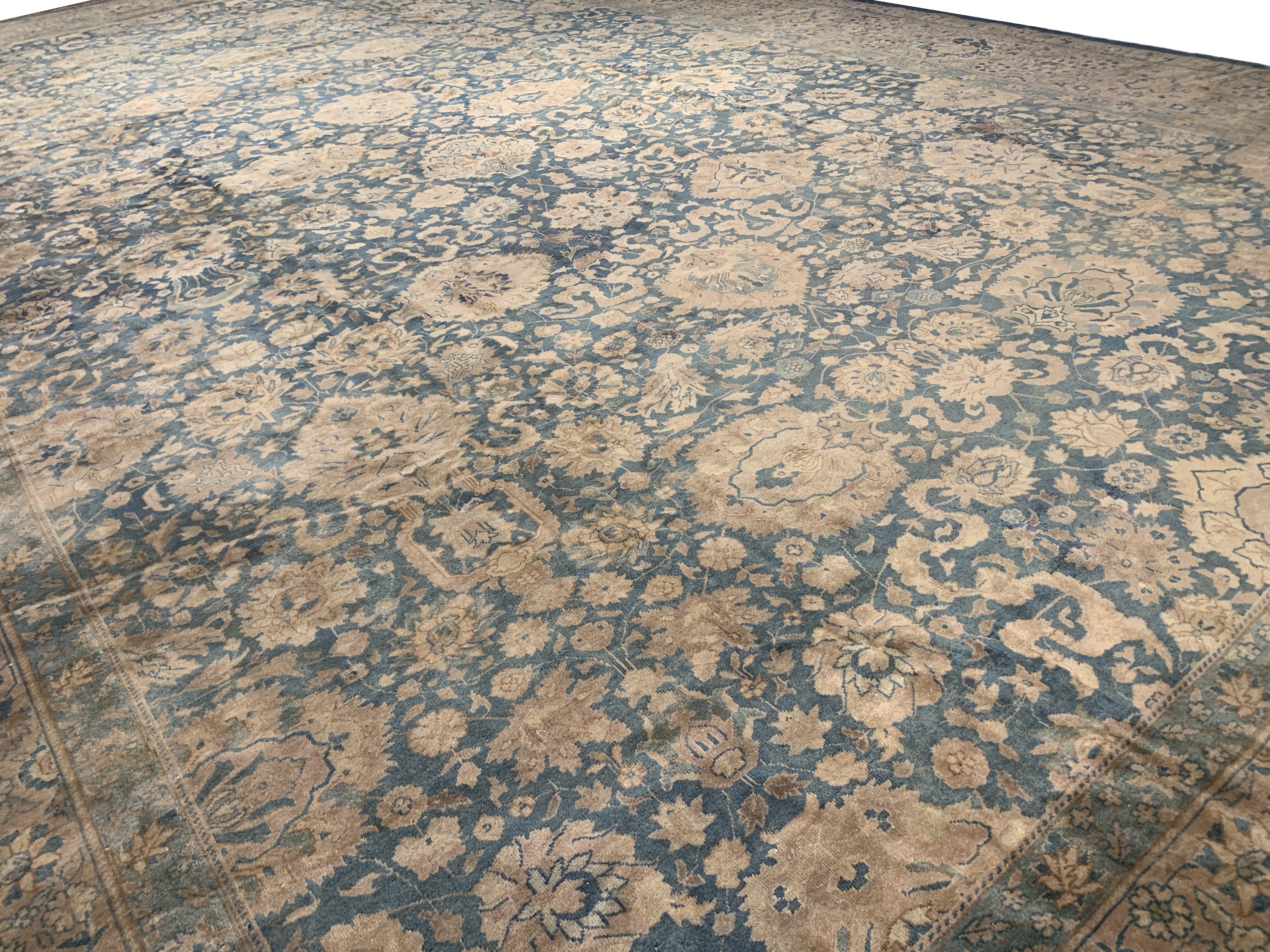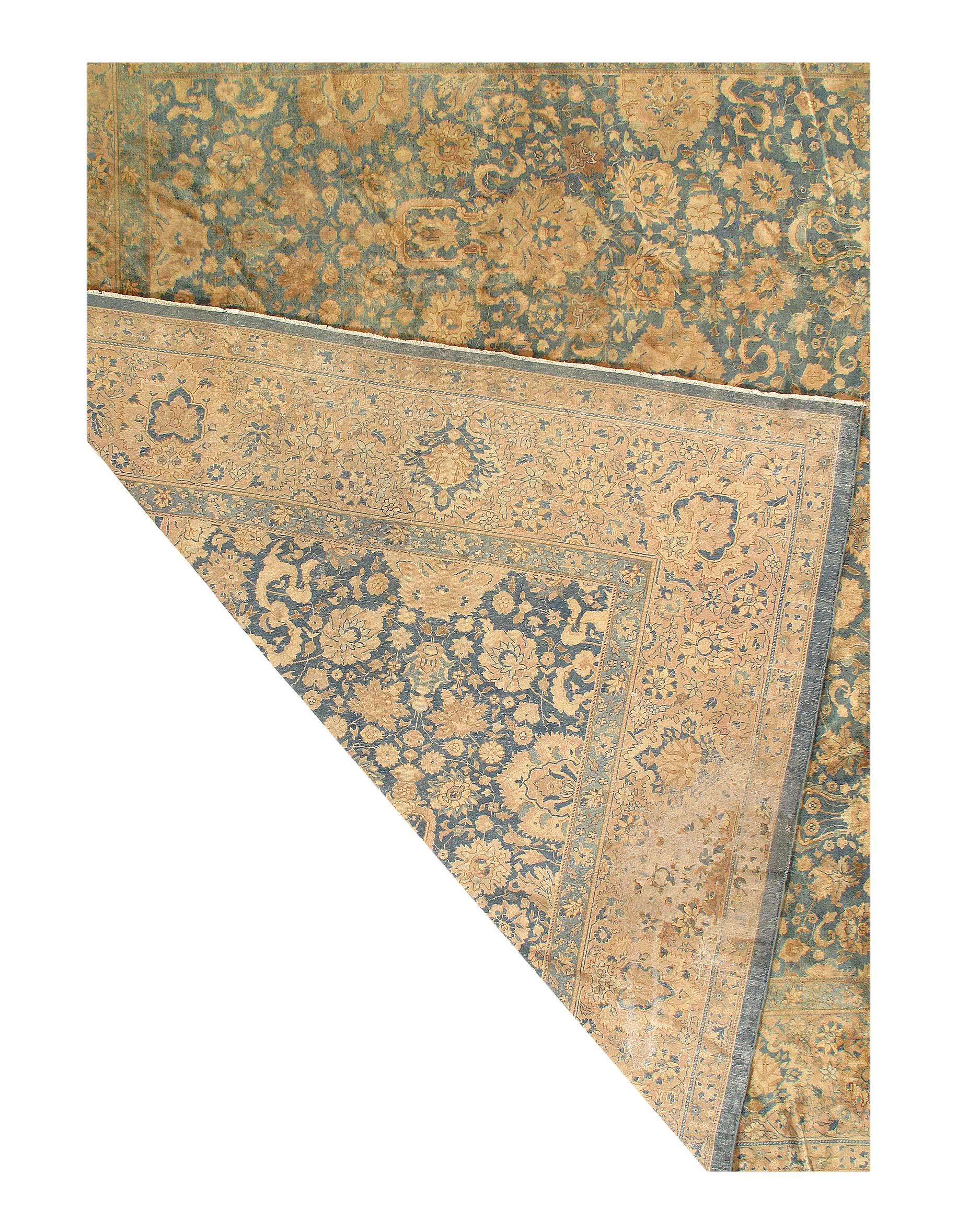 A hand-knotted antique Persian Tabriz rug has a floral design. This piece has magnificent detailing and great colors. It would be the perfect addition to your home. This rug measures 11'11'' X 19'1''