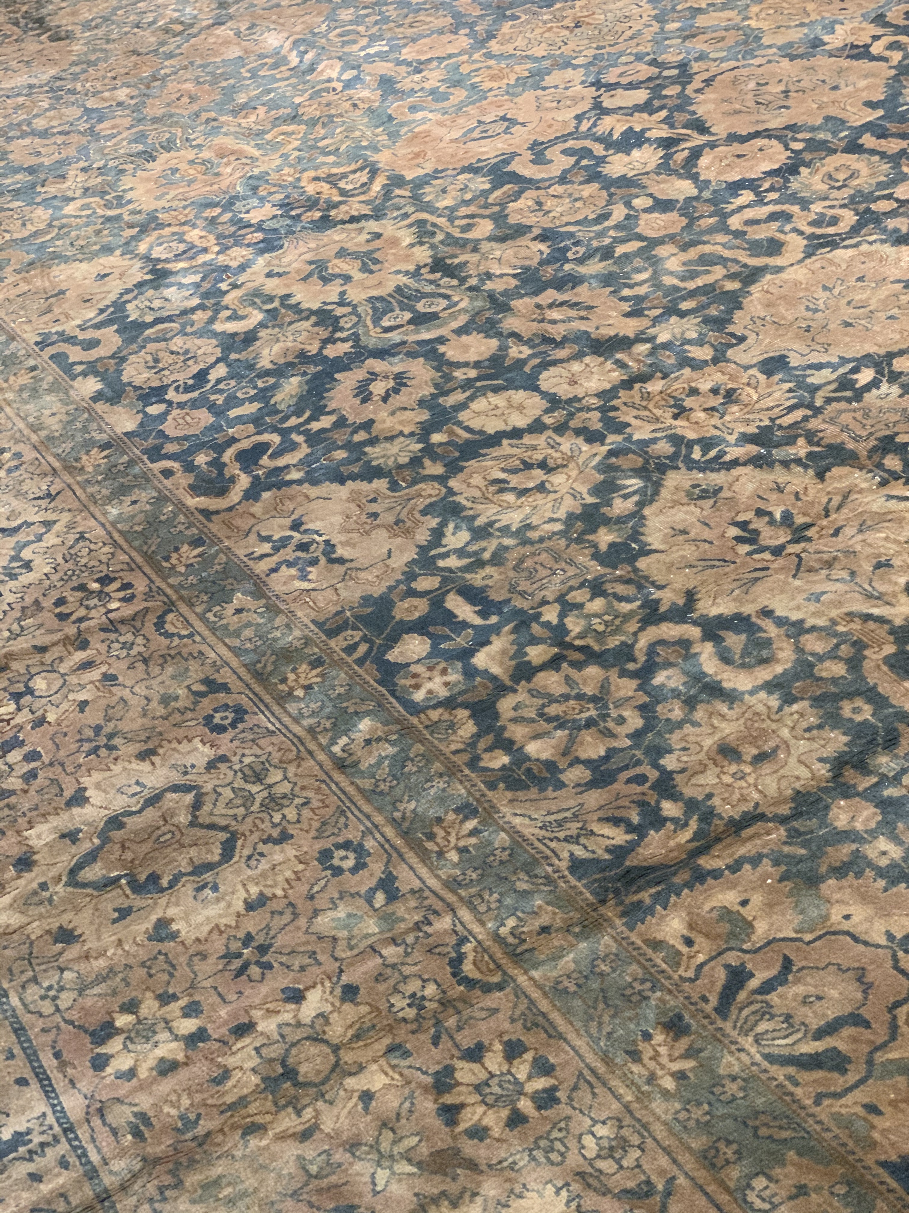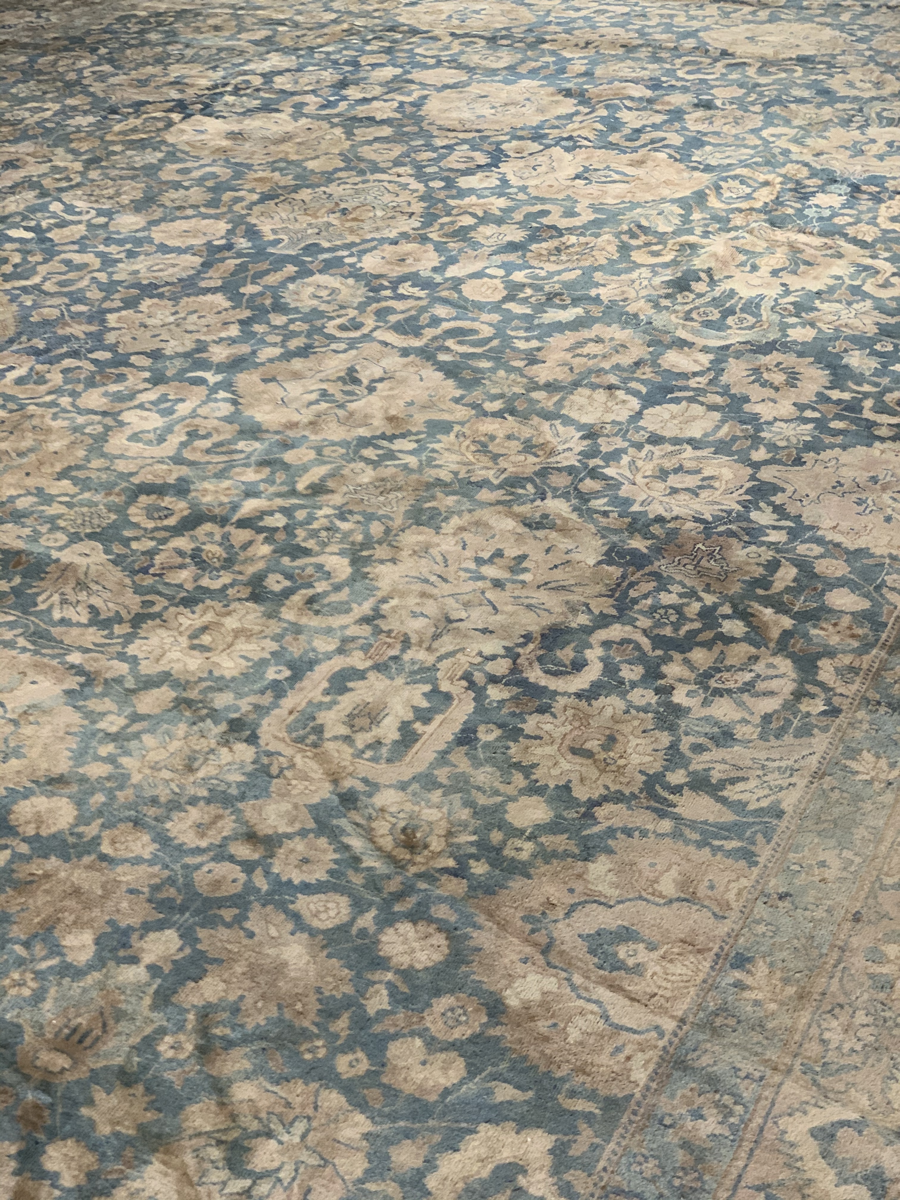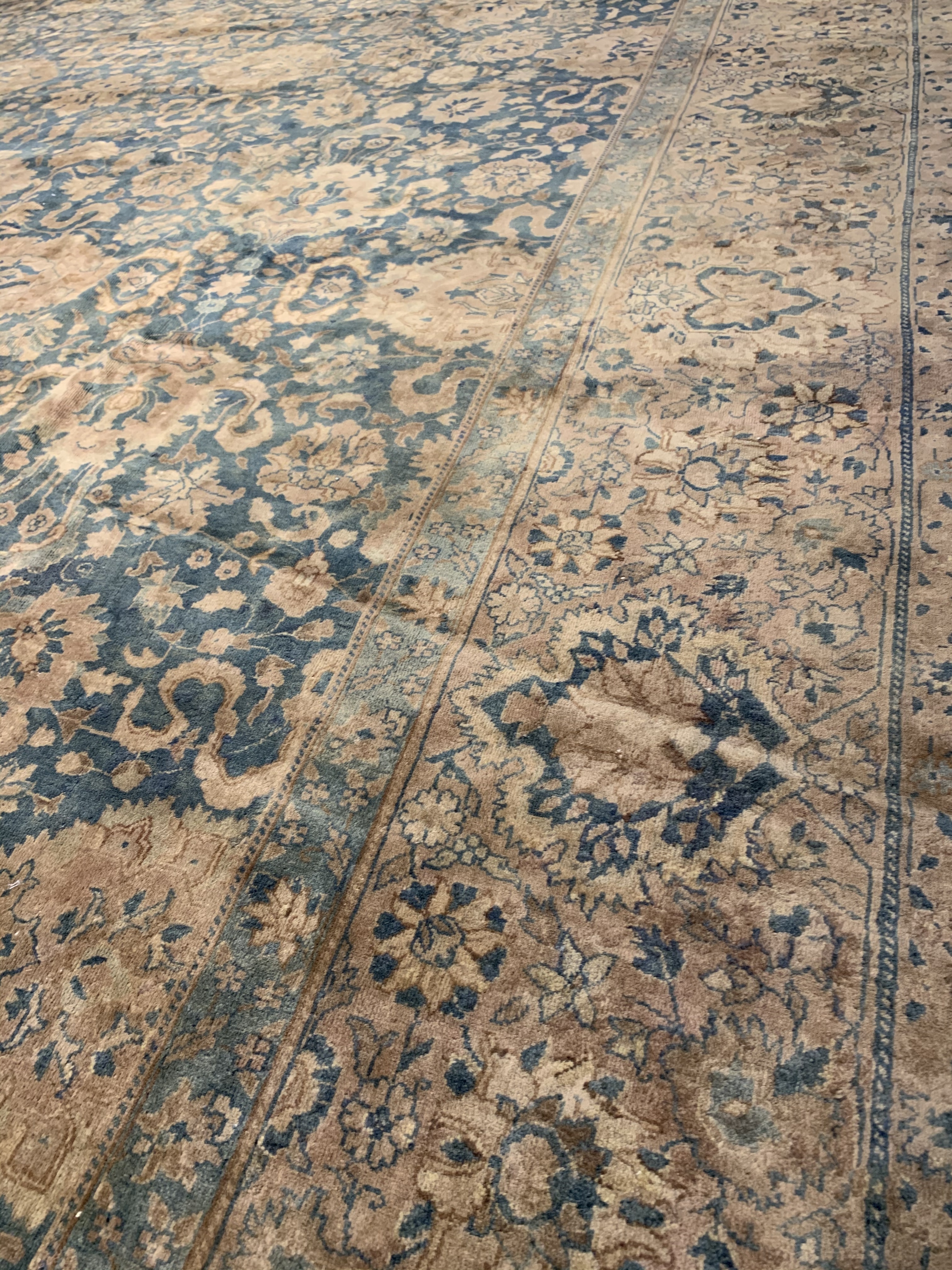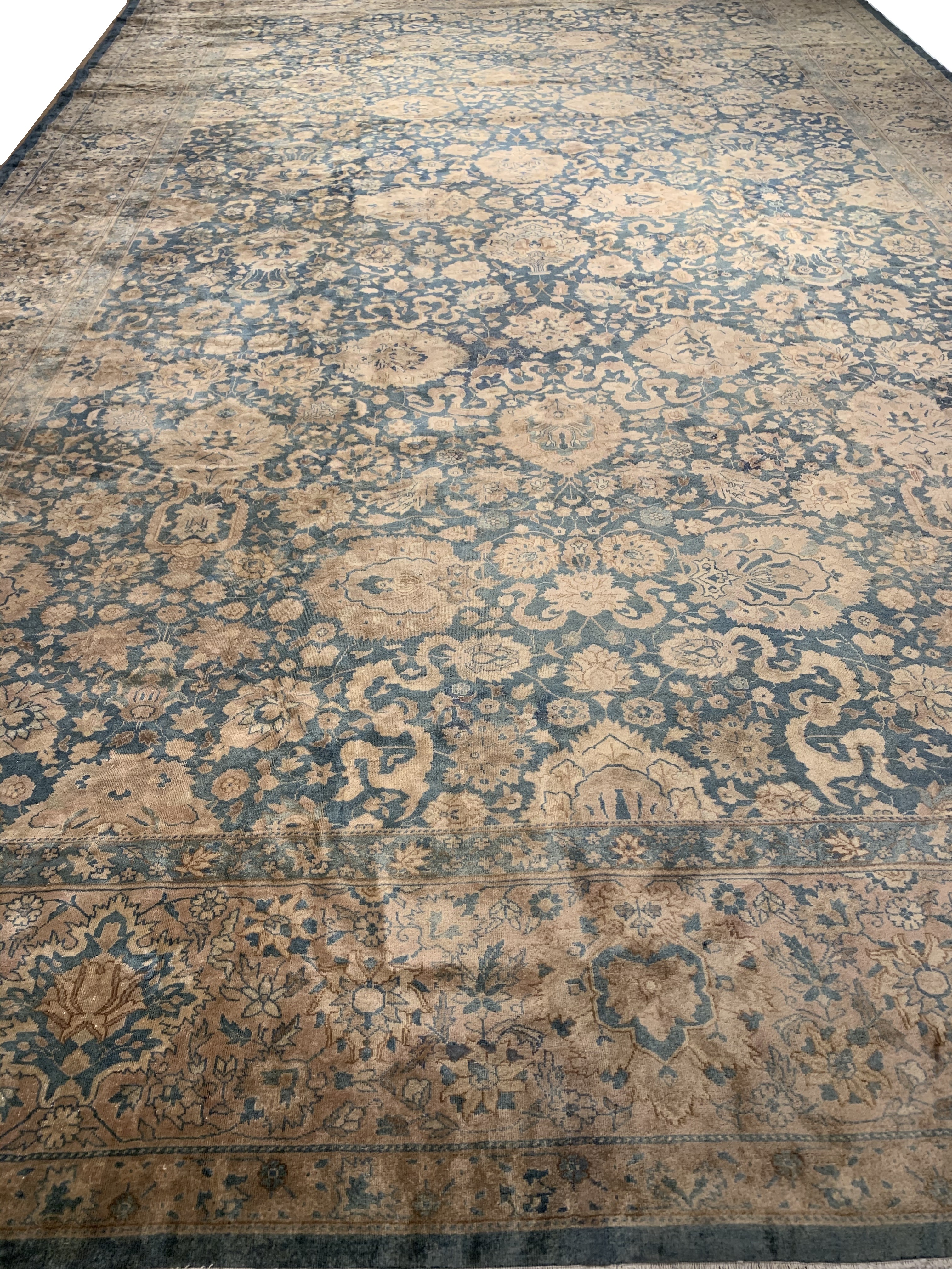 A hand-knotted antique Persian Tabriz rug has a floral design. This piece has magnificent detailing and great colors. It would be the perfect addition to your home. This rug measures 11'11'' X 19'1''