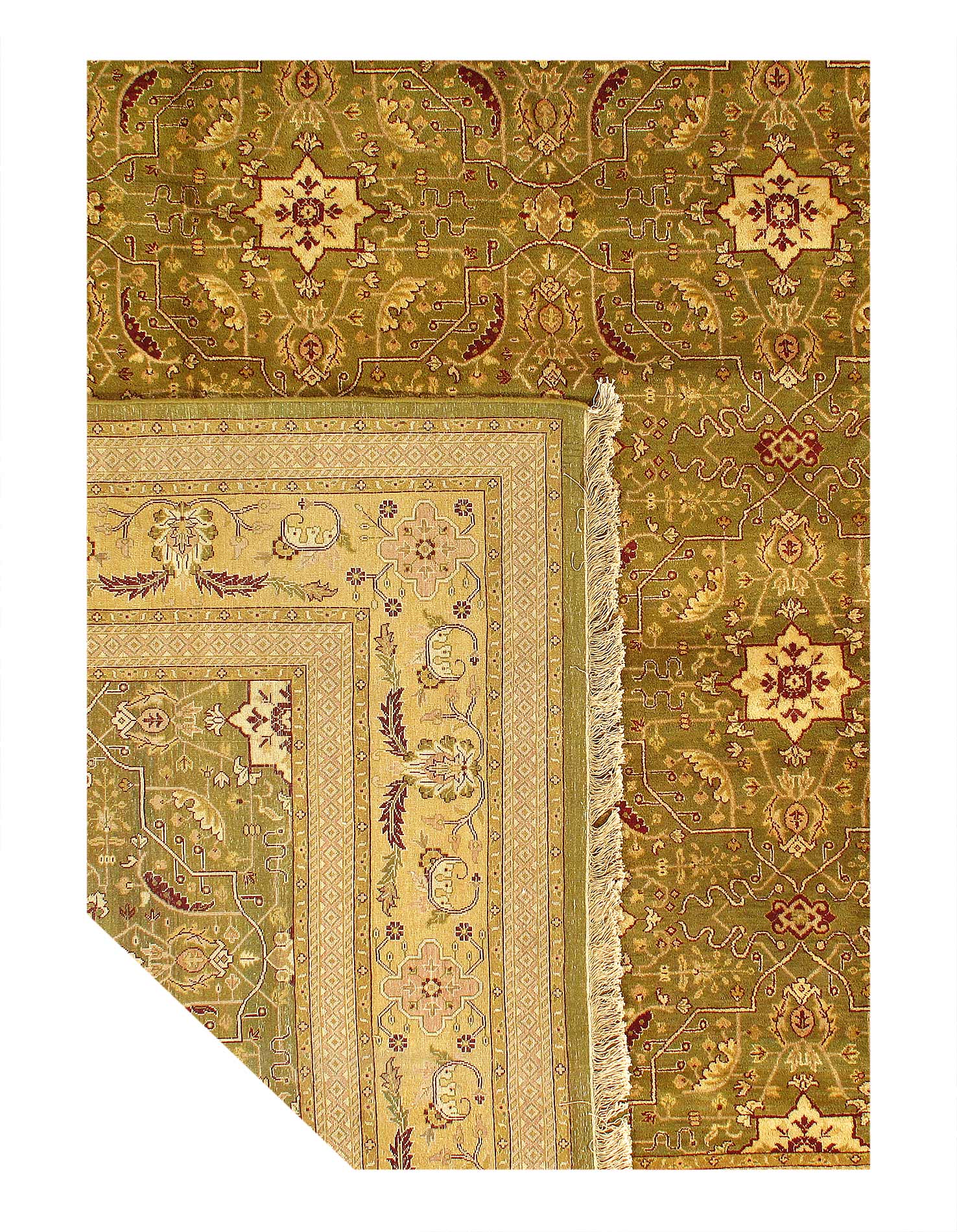 Augra rugs are distinguished by their excellent weave, they have the most diverse display of designs which often reflect scenes of falconry, and ferocious lions. Some of the most well know Augra rugs were inspired by hand painted covers of Ancient books. The dominant colors for these rugs tend to be, cream, red, navy blue, and many more. Their material is often woven with wool or silk. Augra rugs are not only one of the finest groups of Indian rugs but also the most decorative as well.