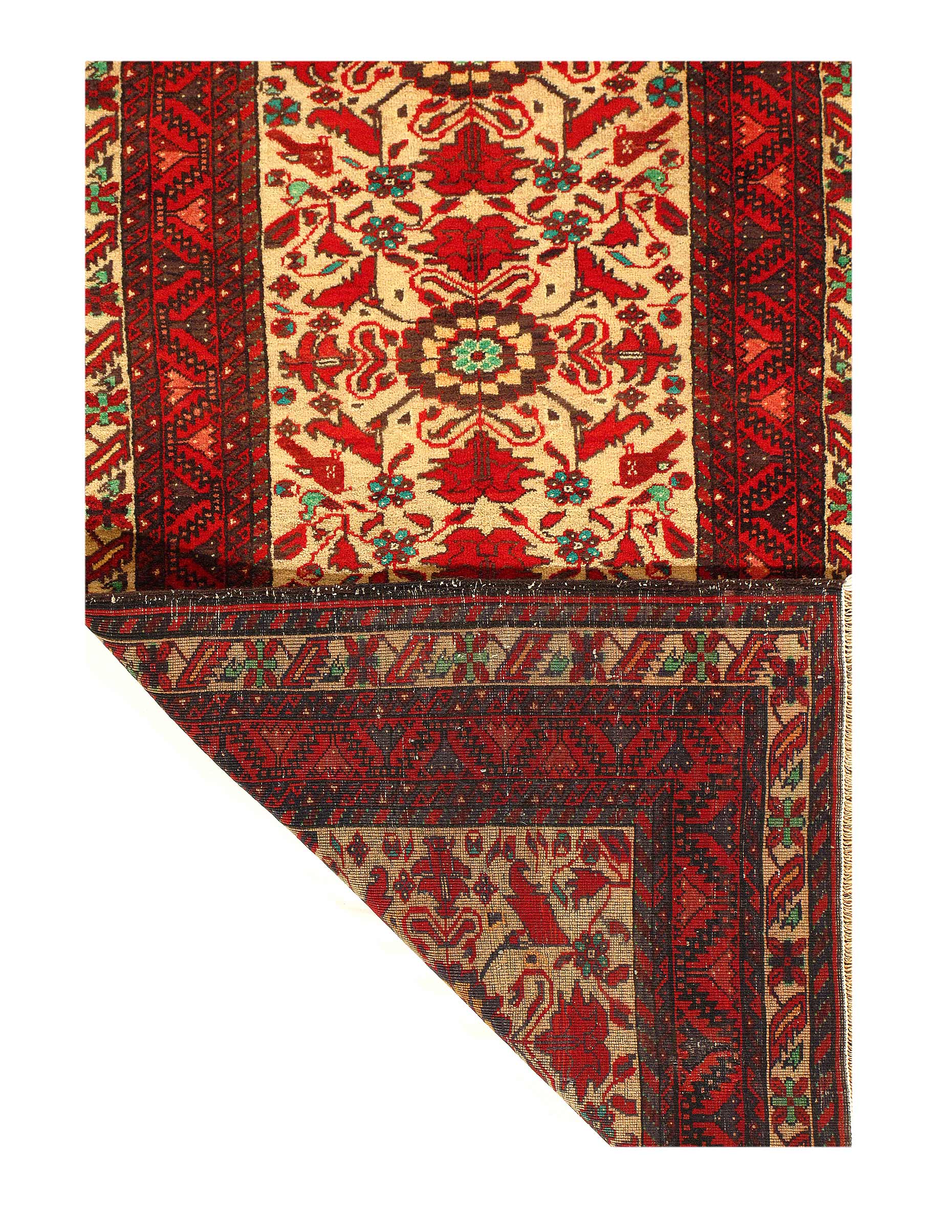 This Balouchi Rug is Hand Knotted with 100% Wool Pile and wool Foundation. This Rug has a Allover Design and its Main colors are Red, Beige .