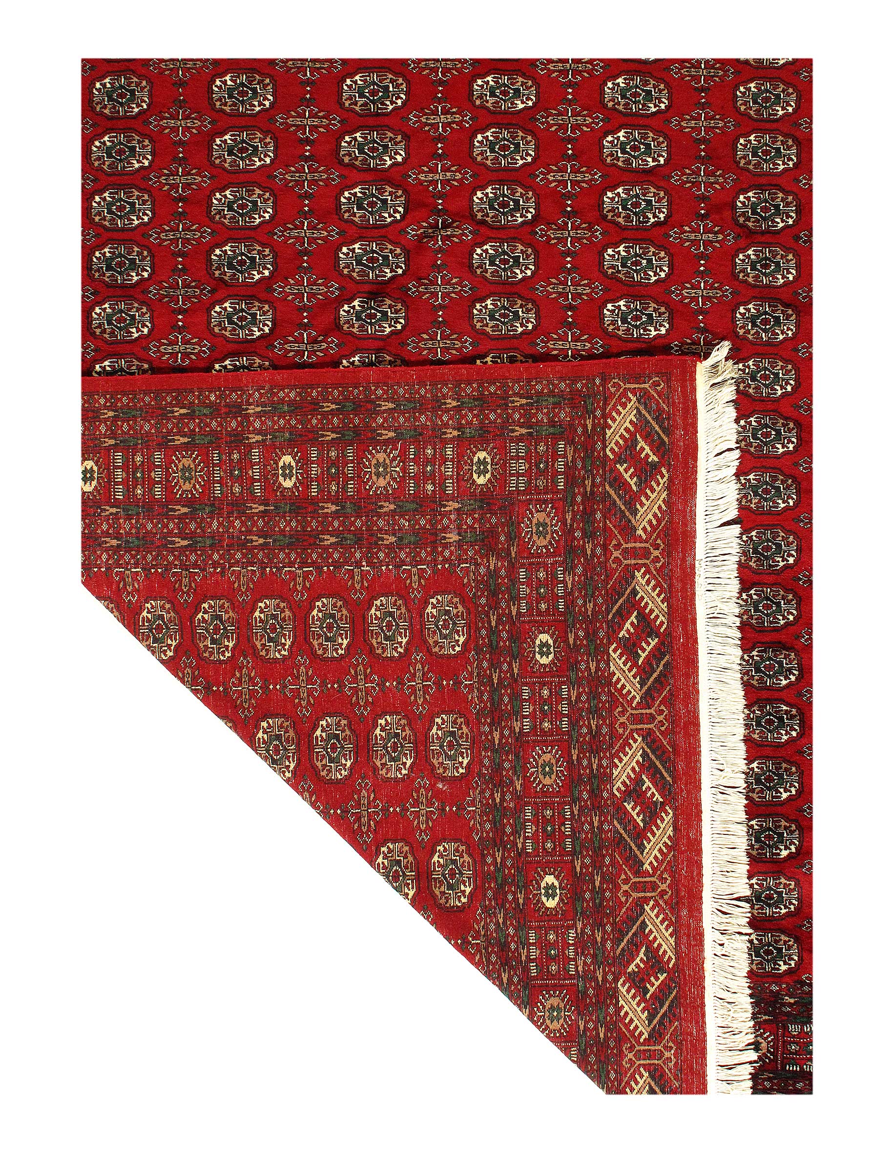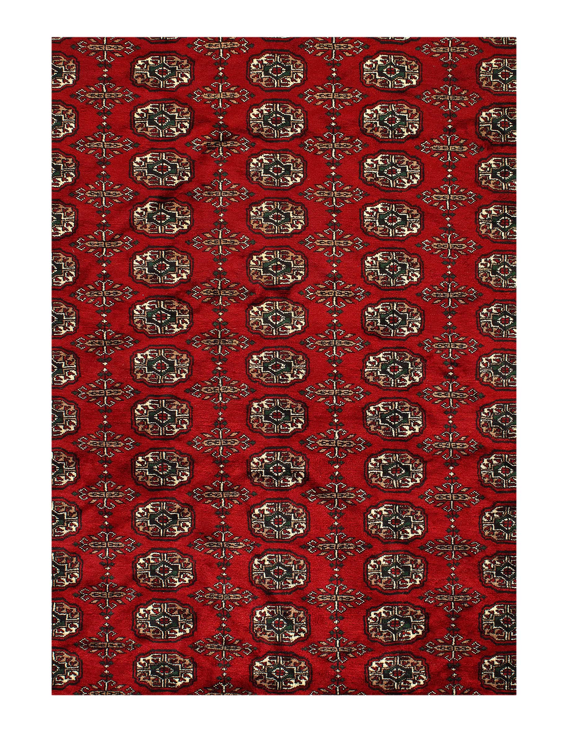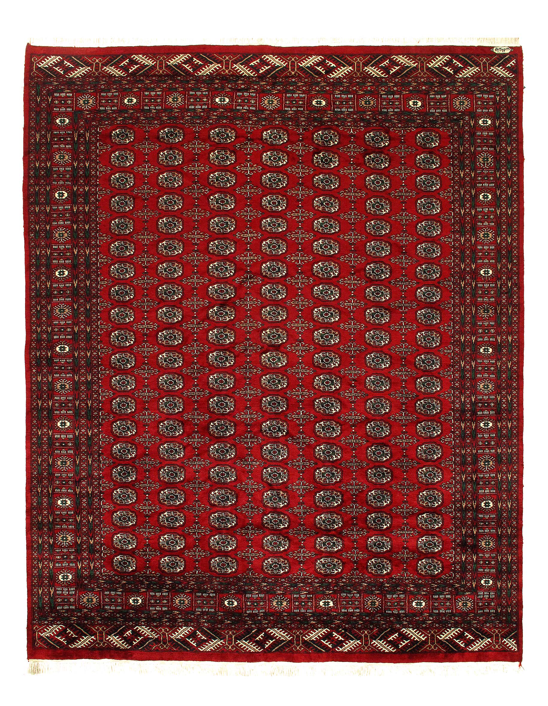 The Classic Bokhara Rug woven in Pakistan & Afghanistan. Also known as Afghan Rugs, are popular for the thick hand-knotted texture, heavy pile and attractive colors (burgundy, red, dark blue/navy, black or brown with ivory undertones). Their designs consist of repeating octagonal guls (elephant’s foot), conjoined rhombus medallions, or floral patterns. Bokhara Rugs shapes, colors & designs vary and these differences were used to identify the source of the rug.