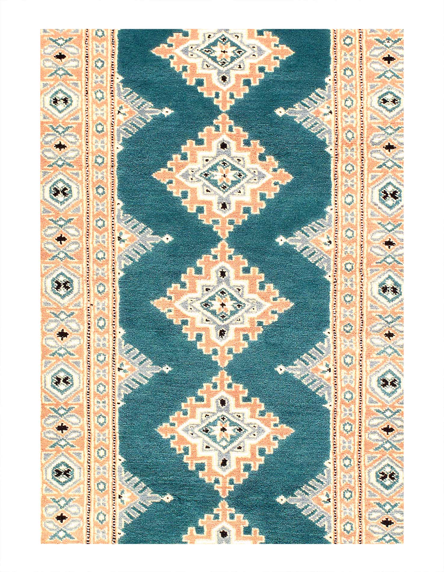 Bokharas are a type of handmade Pakistani rug; also known as Bukharas or Bokaras. Most are based on Turkmen prototypes called Tekkes. Pakistani Bokhara rugs are among the most popular handmade rugs in the world. They are popular for their soft, luxurious feel, heavy pile, attractive colors and appearance that consist of repeating octagonal figures called guls, usually on fields of burgundy Green, Beige, sometimes Cream .