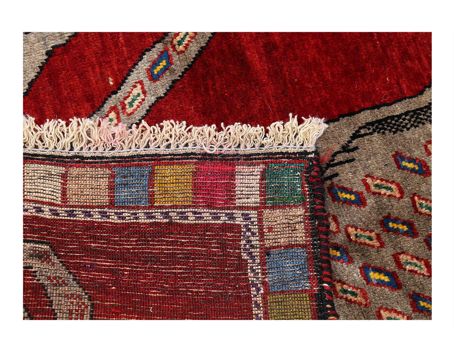 This Shiraz carpet originates from Persia and has been knotted from nomads in a smaller town. Its size is 3'9" by 5'3" with a weight of 30 lbs. Thanks to its origin the carpet has been crafted in the most traditional craftsmanship over months of handicraft. With its geometric design patterns this type of Persian rug re-gained a high popularity during the past years. With a pile height of 0.39 in and a knot density of 129 - 161 / square inch the carpet has been crafted to an extraordinary high level of quality and robustness. Nomads used natural dyes for the colors of this carpet made from Wool. It is in perfect condition. You are going to be very fond of this unique piece of highest craftsmanship