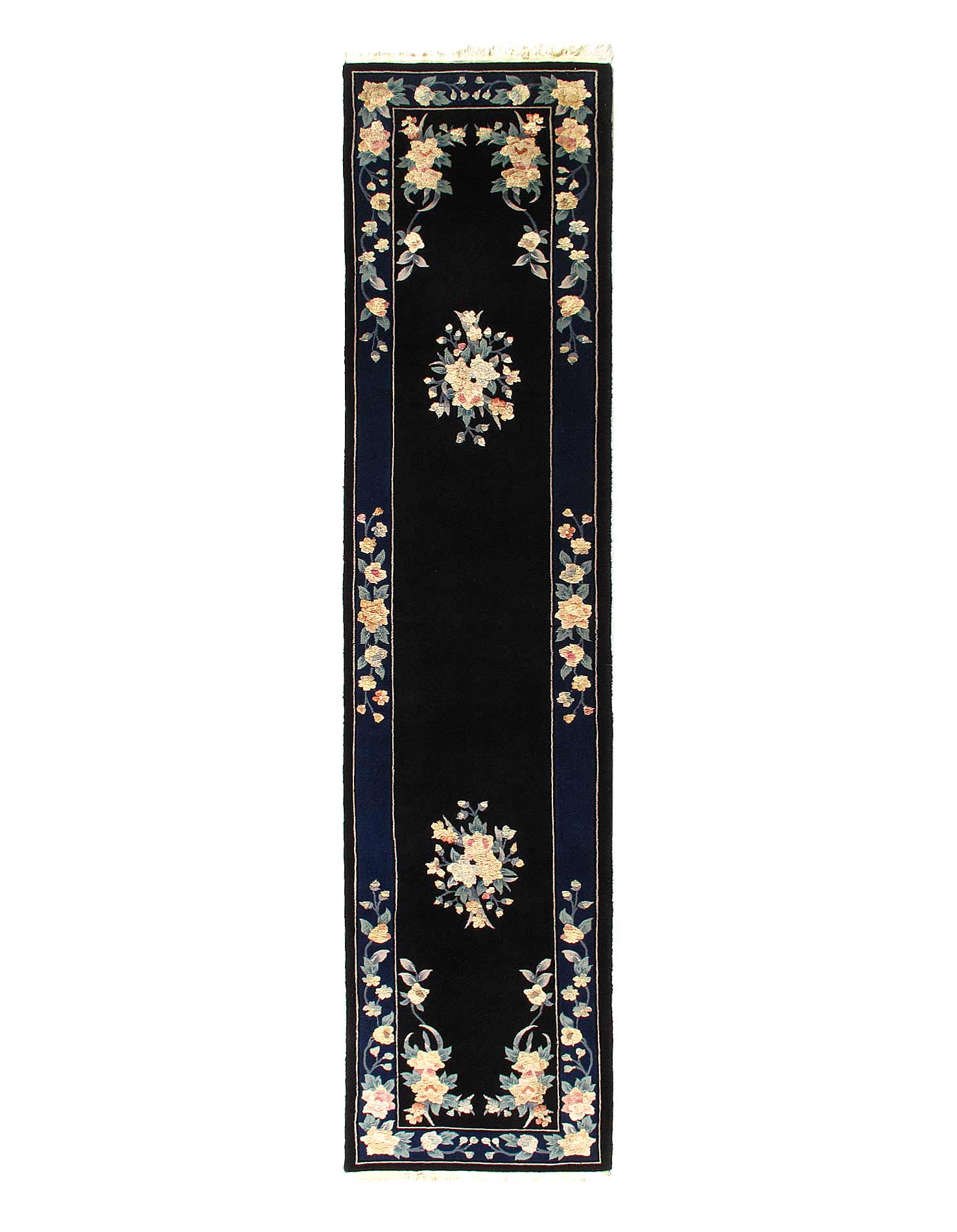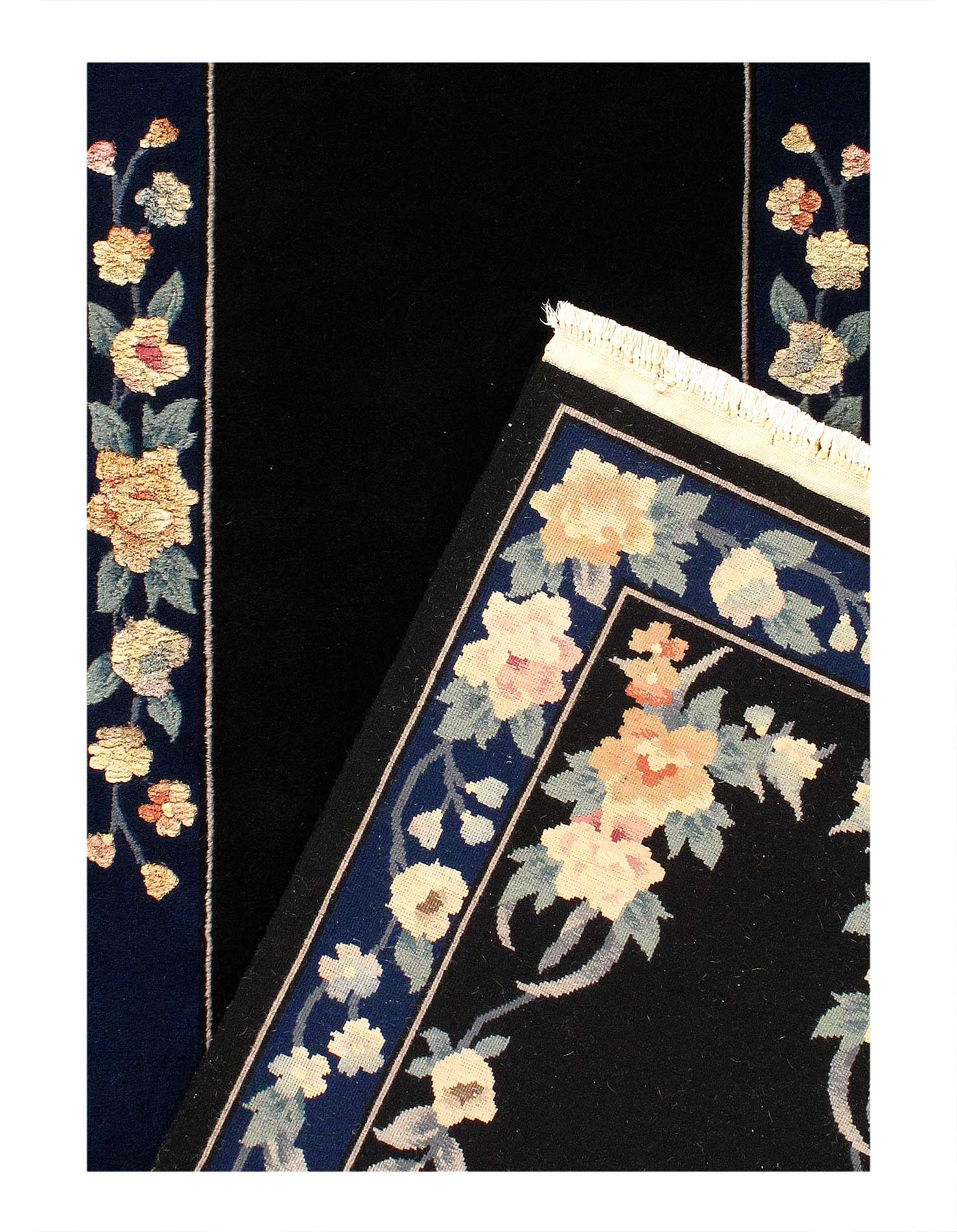 raditional Chinese rugs and carpets are immediately recognizable by their simple, classic motifs and unusual colors. These rugs often feature a center, circular medallion; familiar objects seen in nature such as animals, flowers, and clouds; stylized Chinese ideographs; and even entire scenes. They're usually framed with a simple, wide border. Chinese rugs are woven with a 5-ply yarn, in contrast with the 2-ply yarns used in Persian rugs and carpets. Many Chinese rugs and carpets are sculpted where contrasting colors meet to provide interest and texture to the simple patterns. These rugs are usually of high quality and extremely durable.