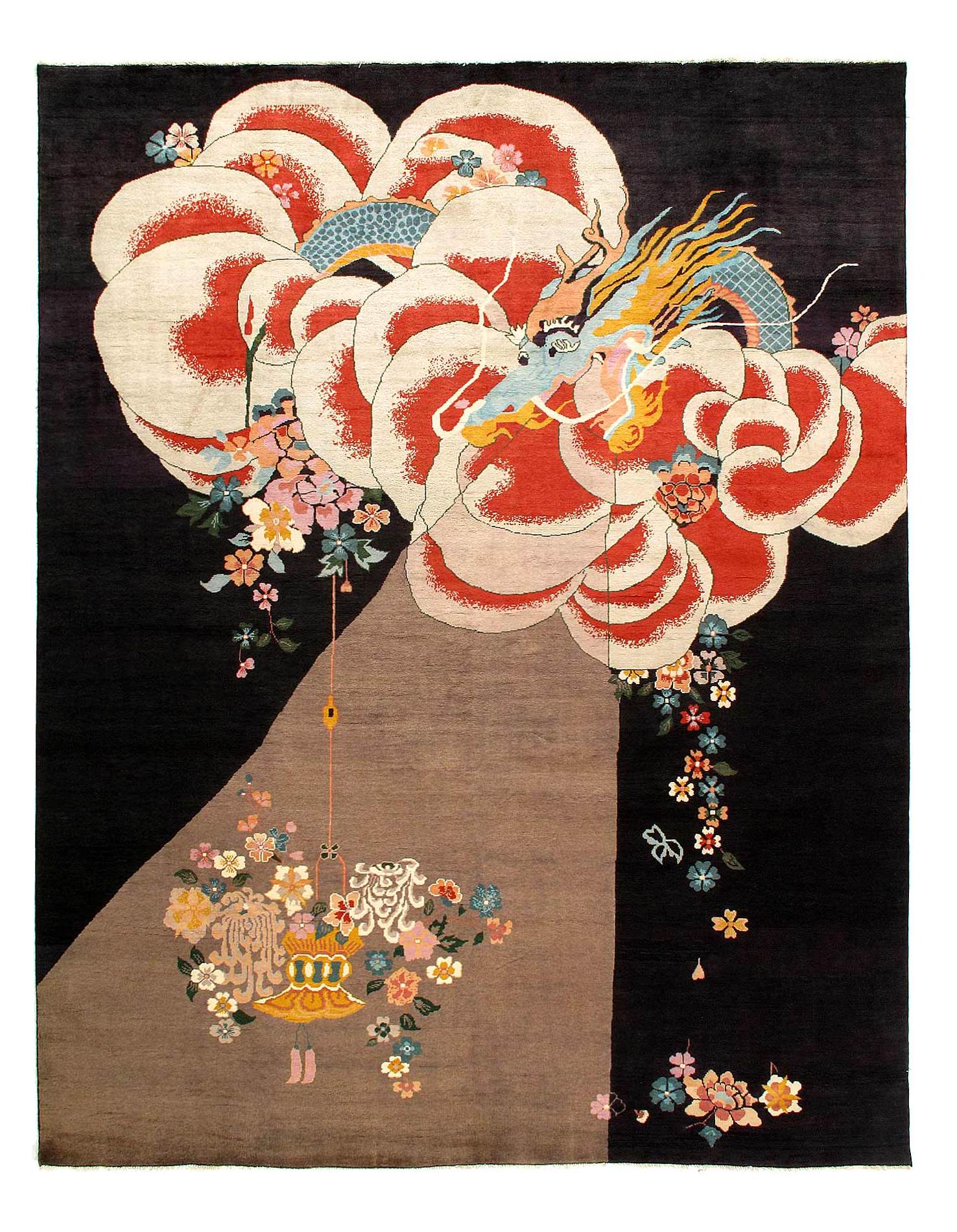 This rug combine an exceptional quality of hand-knotted rugs and contemporary design., lambs wool pile on cotton foundations are all used for the production.