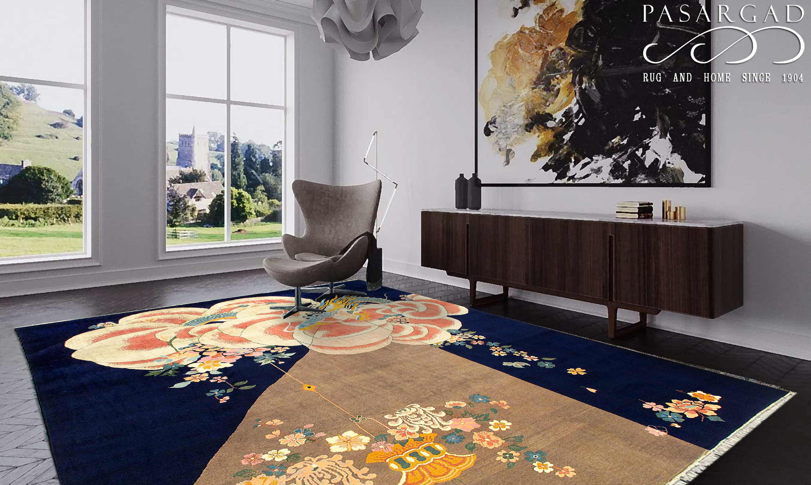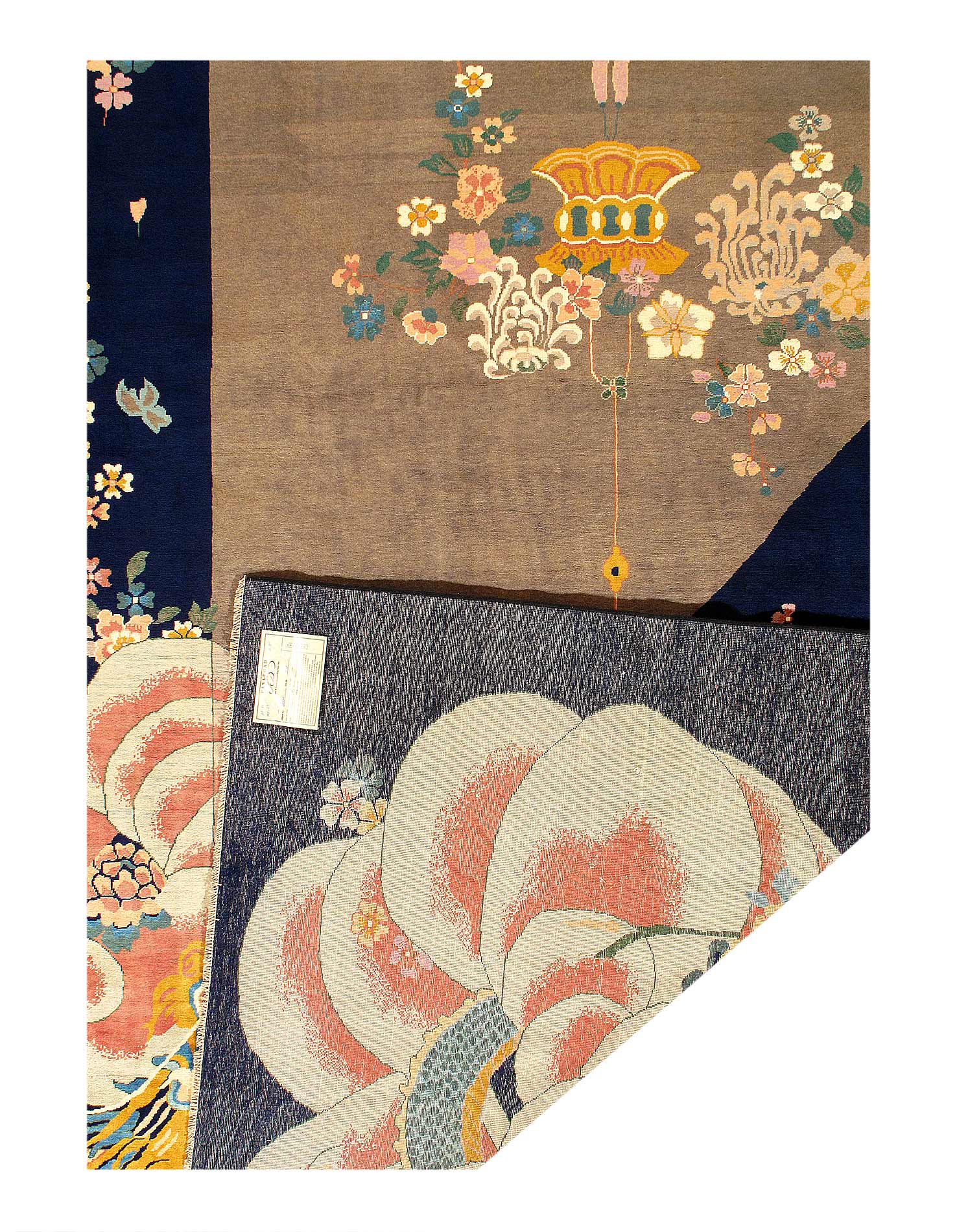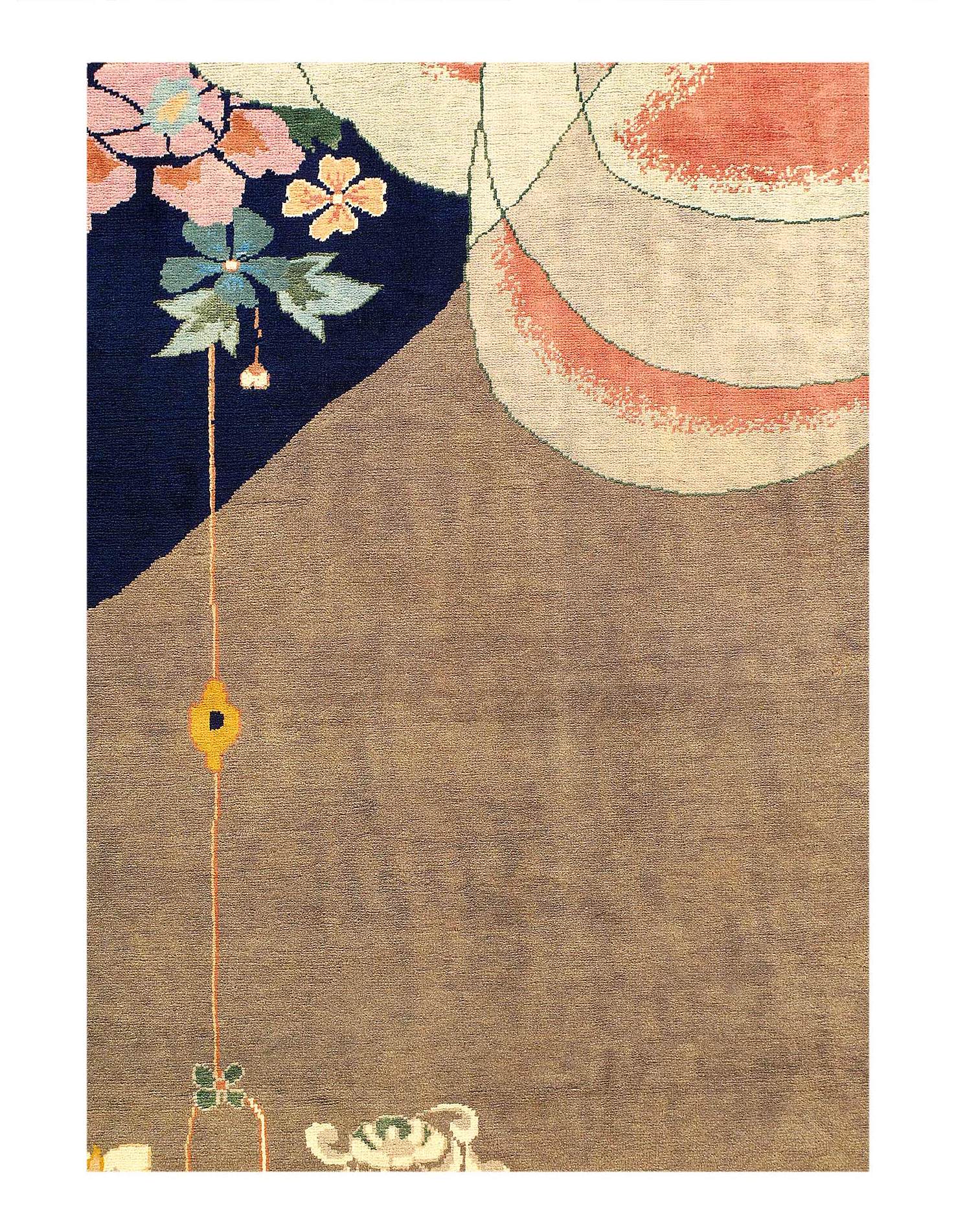 This rug combine an exceptional quality of hand-knotted rugs and contemporary design., lambs wool pile on cotton foundations are all used for the production.