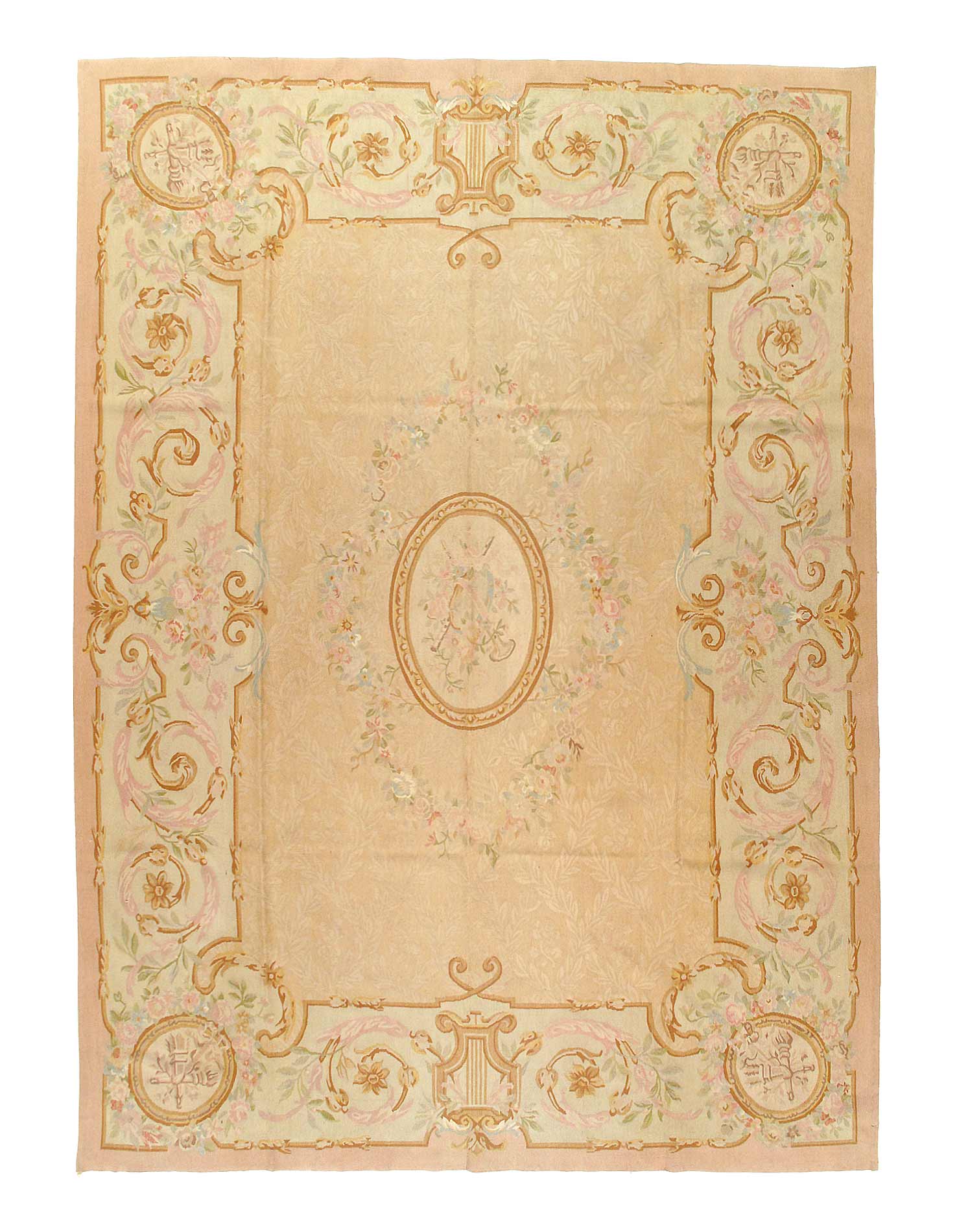Aubusson carpet, usually of considerable size, handwoven at the villages of Aubusson and Felletin, in the département of Creuse in central France. Workshops were established in 1743 to manufacture pile carpets primarily for the nobility, to whom the Savonnerie court production was not available. Aubusson carpets were, however, also made for the royal residences. Soon after the production of carpets began at Aubusson, the pileless tapestry technique previously in use in this district was adopted for so many of the carpets that the word Aubusson has become synonymous with a flat-woven French carpet, and it is not generally realized that piled rugs in numbers have been made there.