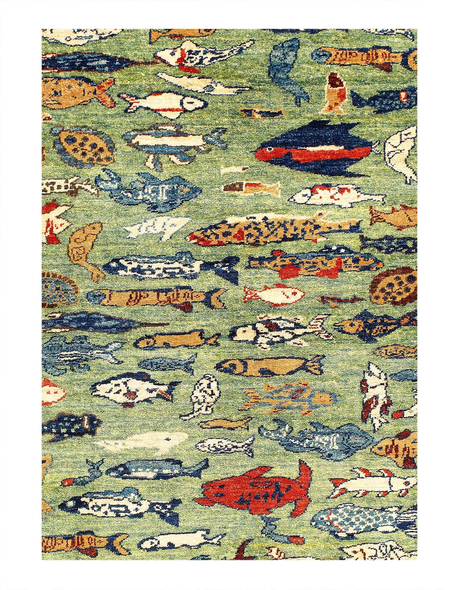 Gabbeh Rugs feature hand-spun wool in both the pile and foundation. These rugs are characterized by their abstract designs that relies upon open fields of color and a playfulness with geometric figures used to depict a story, person, or event. Gabbeh Rugs are popular in a contemporary or modern setting and are extremely durable, usually small to medium size.