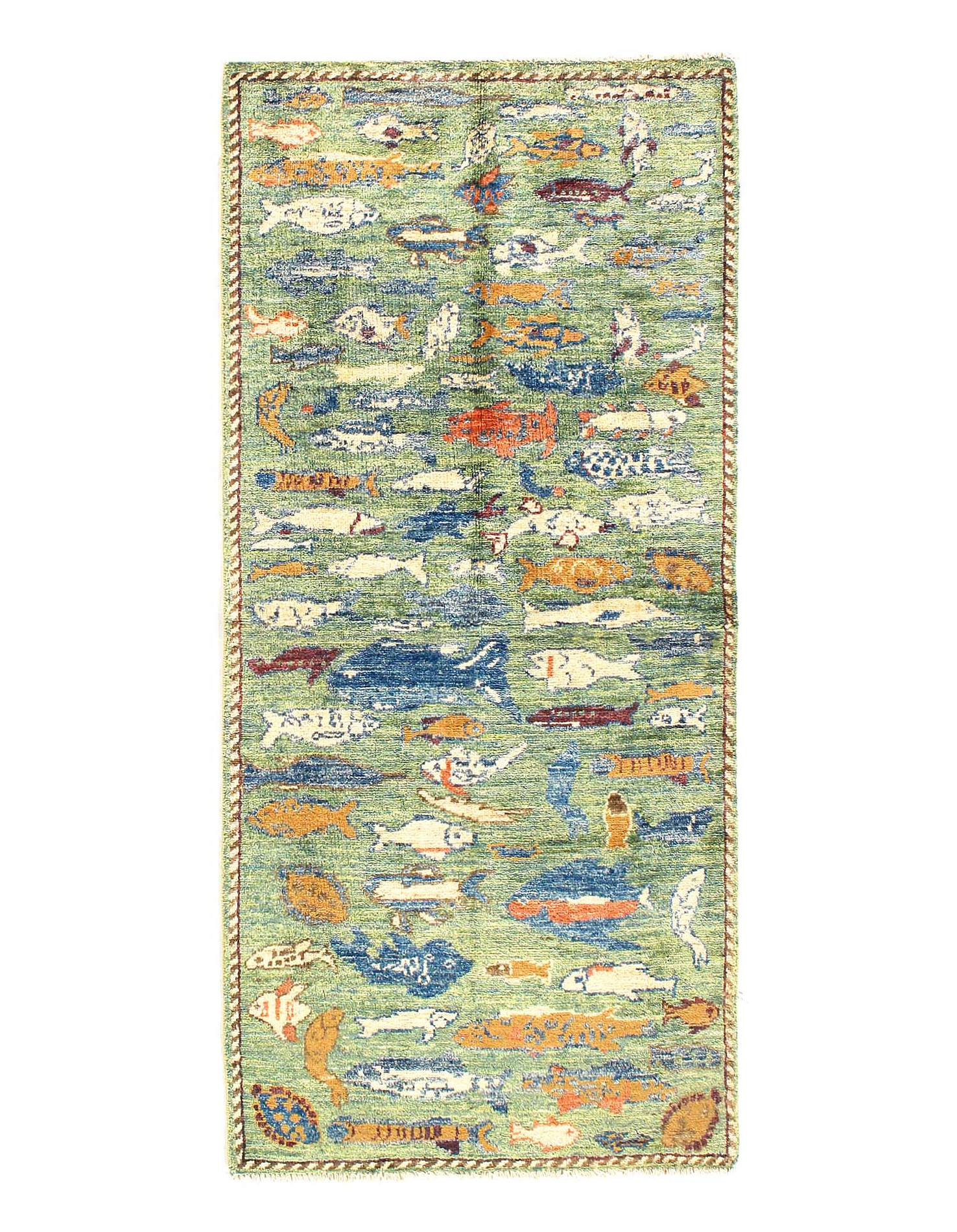 Gabbeh Rugs feature hand-spun wool in both the pile and foundation. These rugs are characterized by their abstract designs that relies upon open fields of color and a playfulness with geometric figures used to depict a story, person, or event. Gabbeh Rugs are popular in a contemporary or modern setting and are extremely durable, usually small to medium size.