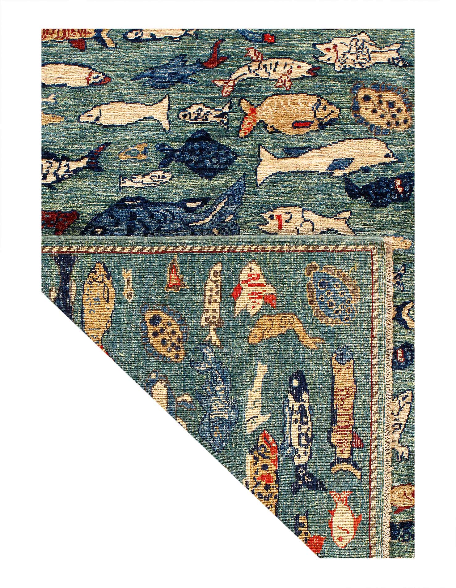 Gabbeh Rugs feature hand-spun wool pile and Cotton foundation. These rugs are characterized by their abstract designs that relies upon open fields of color and a playfulness with geometric figures used to depict a story, person, or event. Gabbeh Rugs are popular in a contemporary or modern setting and are extremely durable, usually small to medium size.