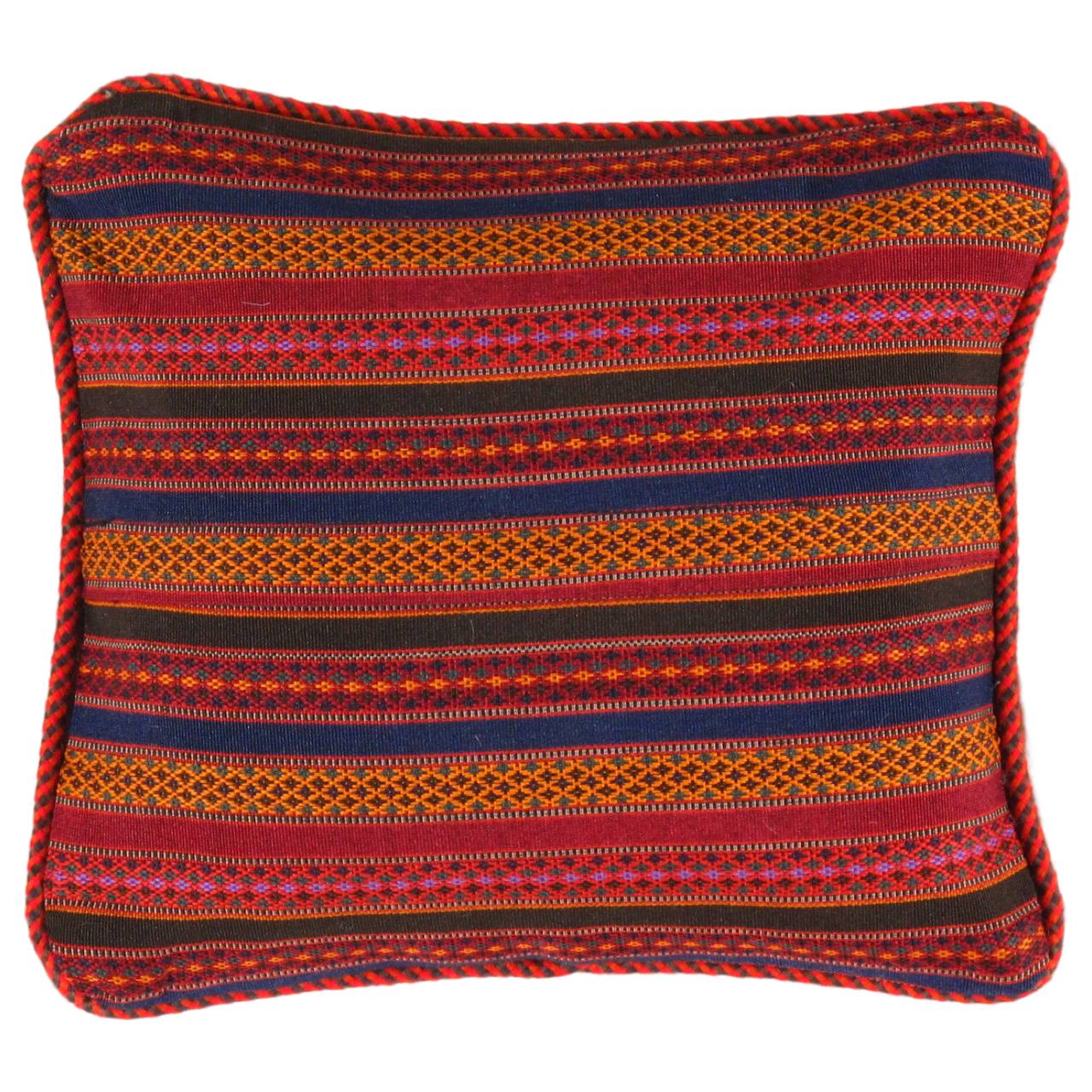 The word “Gabbeh” literally translates to “in the rough,” and it is an accurate description of this style of Persian rug. Gabbeh carpets are woven on makeshift ground looms constructed both of materials that are kept and hauled for long distances by the nomadic tribel, and also of materials that are found at each site where the tribe sets up camp. Due to the fact that part of the loom must be found at each site, a wide variety is introduced. Thus, these rugs are usually somewhat irregular in shape. But, for what they lack in perfectly uniform shape they more than make up for in character, durability and uniqueness.This Gabbeh pillow is made of high-quality LAMBS WOOL The piece was crafted with good workmanship.