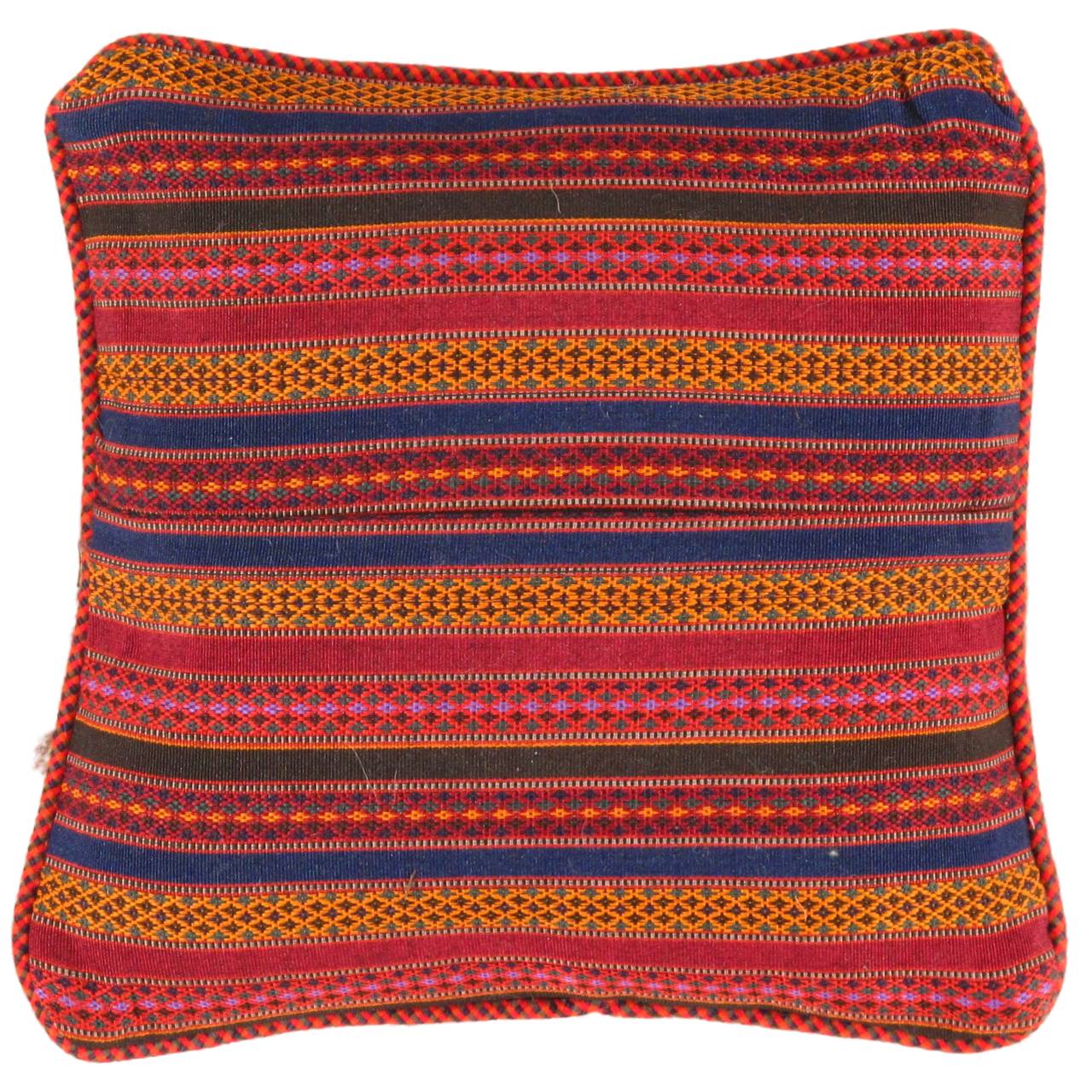 The word “Gabbeh” literally translates to “in the rough,” and it is an accurate description of this style of Persian rug. Gabbeh carpets are woven on makeshift ground looms constructed both of materials that are kept and hauled for long distances by the nomadic tribel, and also of materials that are found at each site where the tribe sets up camp. Due to the fact that part of the loom must be found at each site, a wide variety is introduced. Thus, these rugs are usually somewhat irregular in shape. But, for what they lack in perfectly uniform shape they more than make up for in character, durability and uniqueness.This Gabbeh pillow is made of high-quality LAMBS WOOL The piece was crafted with good workmanship.