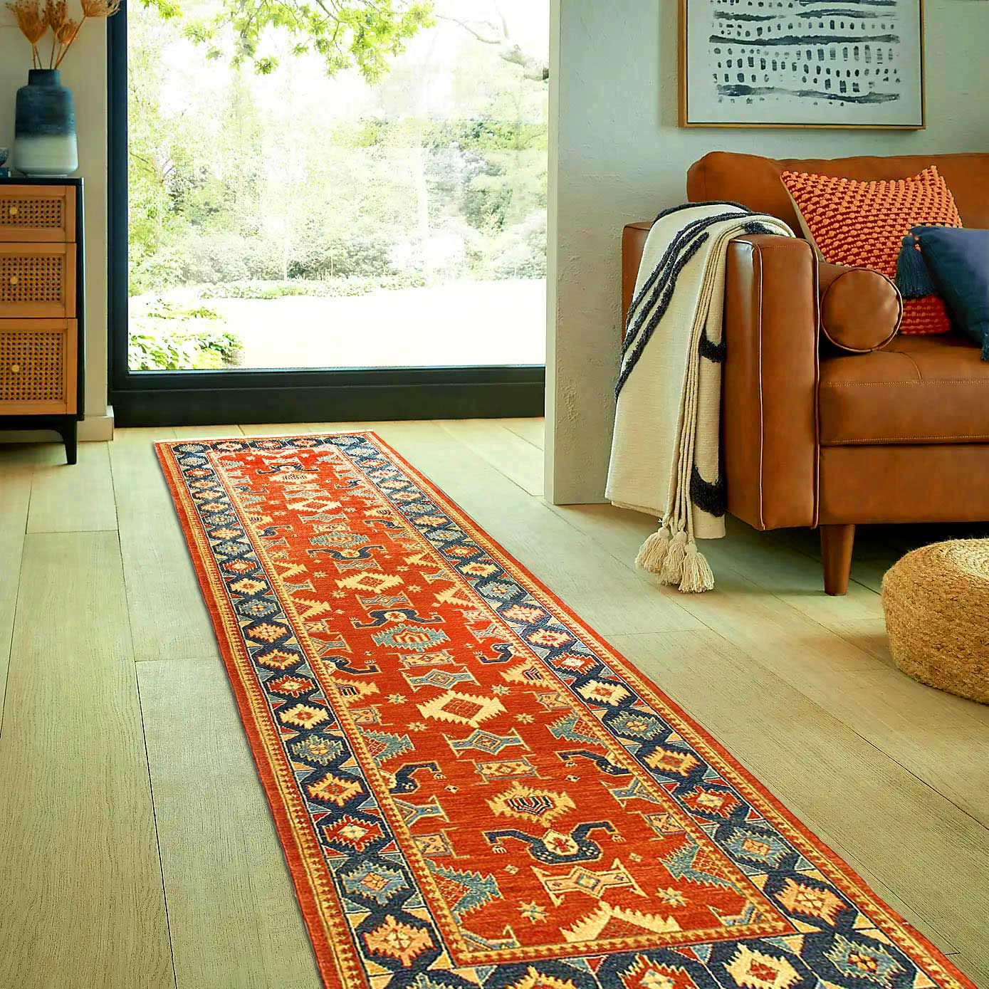 This rug is handmade from 100-percent premium, hand-spun wool, and employ ancient pot-dying techniques to give them their authentic look.