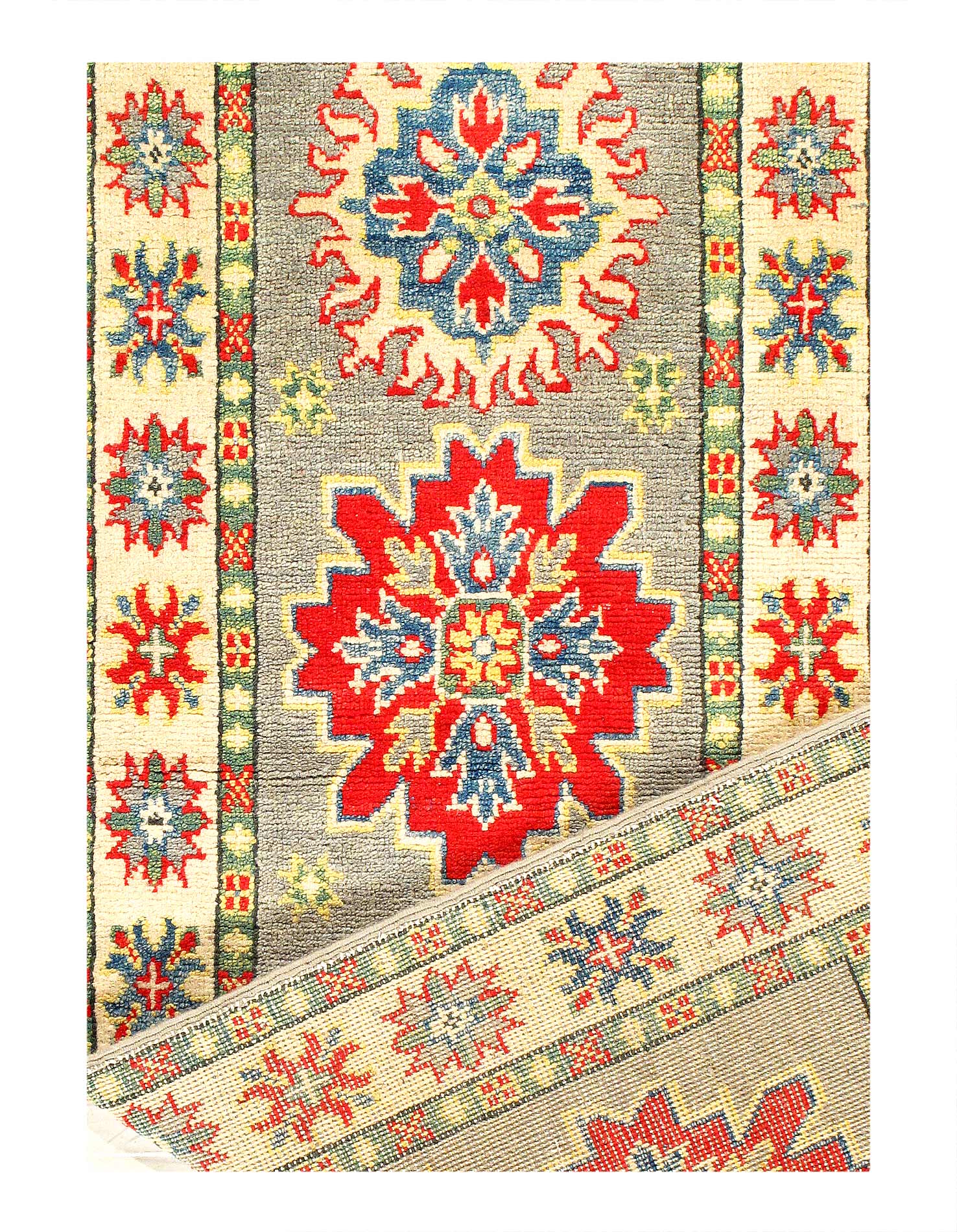 Original Super Kazak Rug. Handmade Hand-knotted,Very Practical for High Traffic,Hand-Spun Lamb's Wool on a Cotton Foundation,Vegetable Dyed,This rug is handmade from 100-percent premium, hand-spun wool, and employ ancient pot-dying techniques to give them their authentic look.Kazak is a modern shape of old Caucasian rugs which strictly adheres to traditional design elements of the Caucasus. It has elements such as the stepped hooked polygons, geometrical medallions and rosettes, presented in more stylized manner and with a new dimension. Natural dyes produce soft luminous shades and abrashes causing a beautiful sheen. Hand spun wool yarn is normally used in the variety of vibrant warm colors. Kazaks rugs in our collection are all fine quality pieces from Pakistan made with Ghazni hand spun wool and natural dyes.