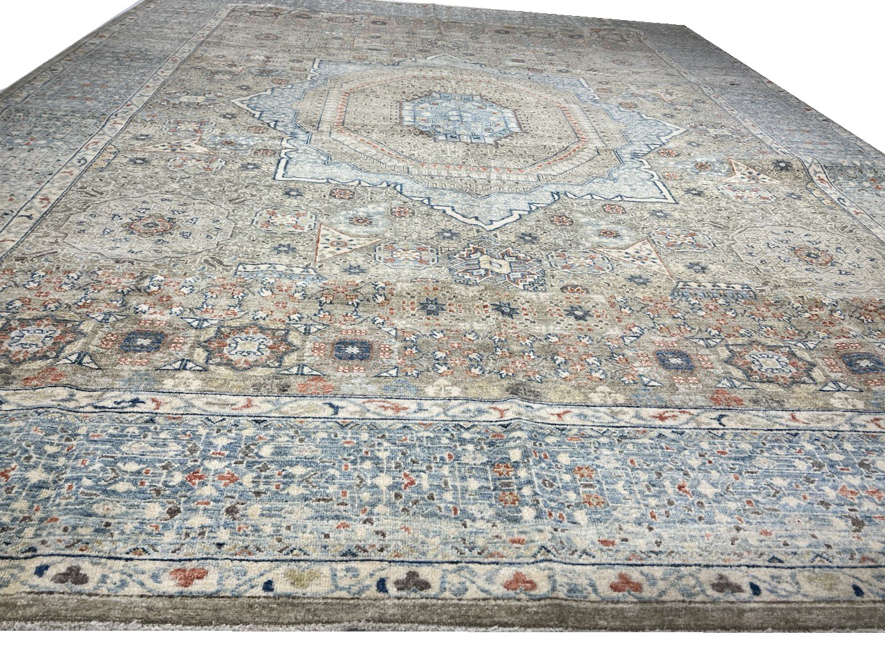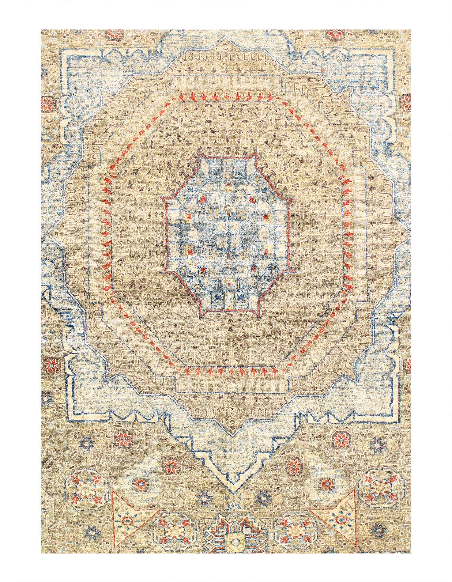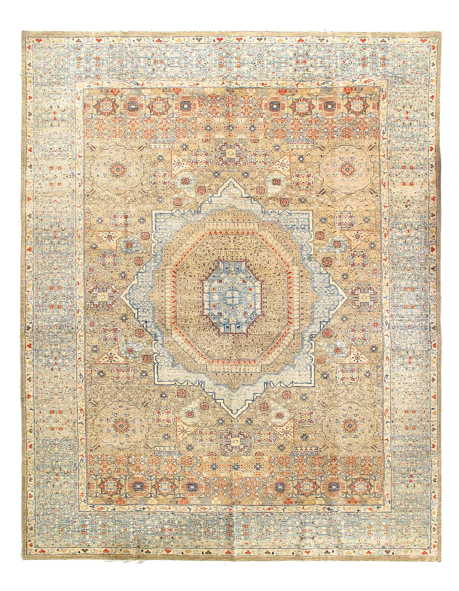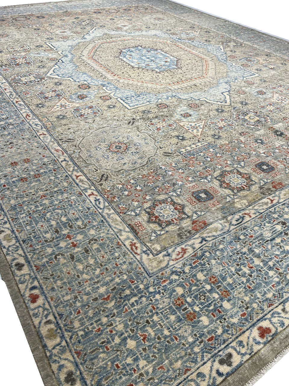Mamluk rugs and carpets have been prized for their sturdy construction and their quiet, intricate patterning. 100% Fine hand spun, Lamb’s wool and Natural Dyes.
