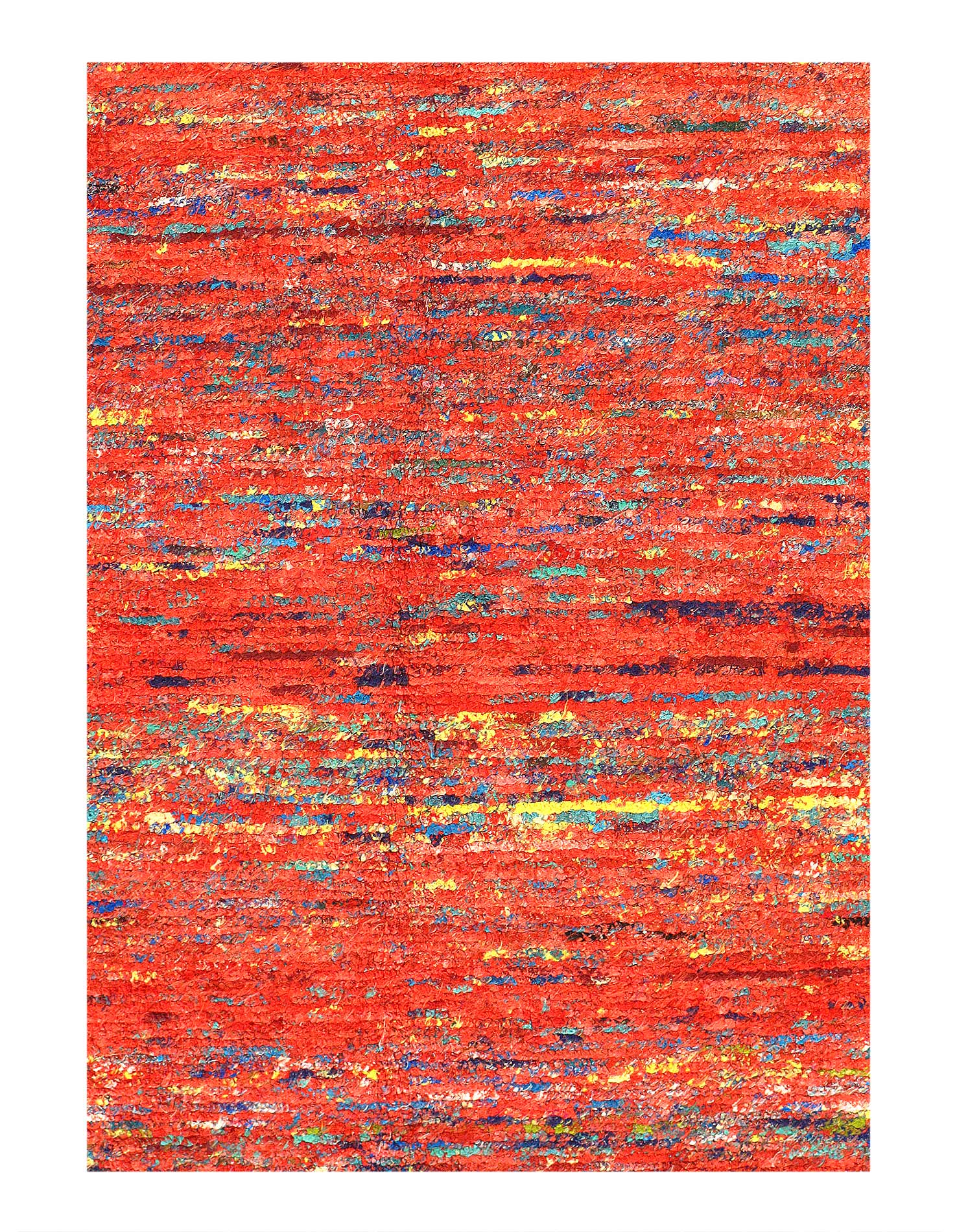 This hand knotted pile rug is made with all handspun silk. It was woven in a small cottage industry weaving project were all weaving takes place in individual weaver’s homes. This wonderful carpet is made using remnant, re-spun silk from the mill ends of sari looms. Sari silk is varied and irregular and carries some of the residual colors of the saris they would have been. The variation of tone and texture along with the natural shine of silk work in unison to create a visual feast. This luxurious and sophisticated modern rug is a beauty to the eye and so soft to the touch.