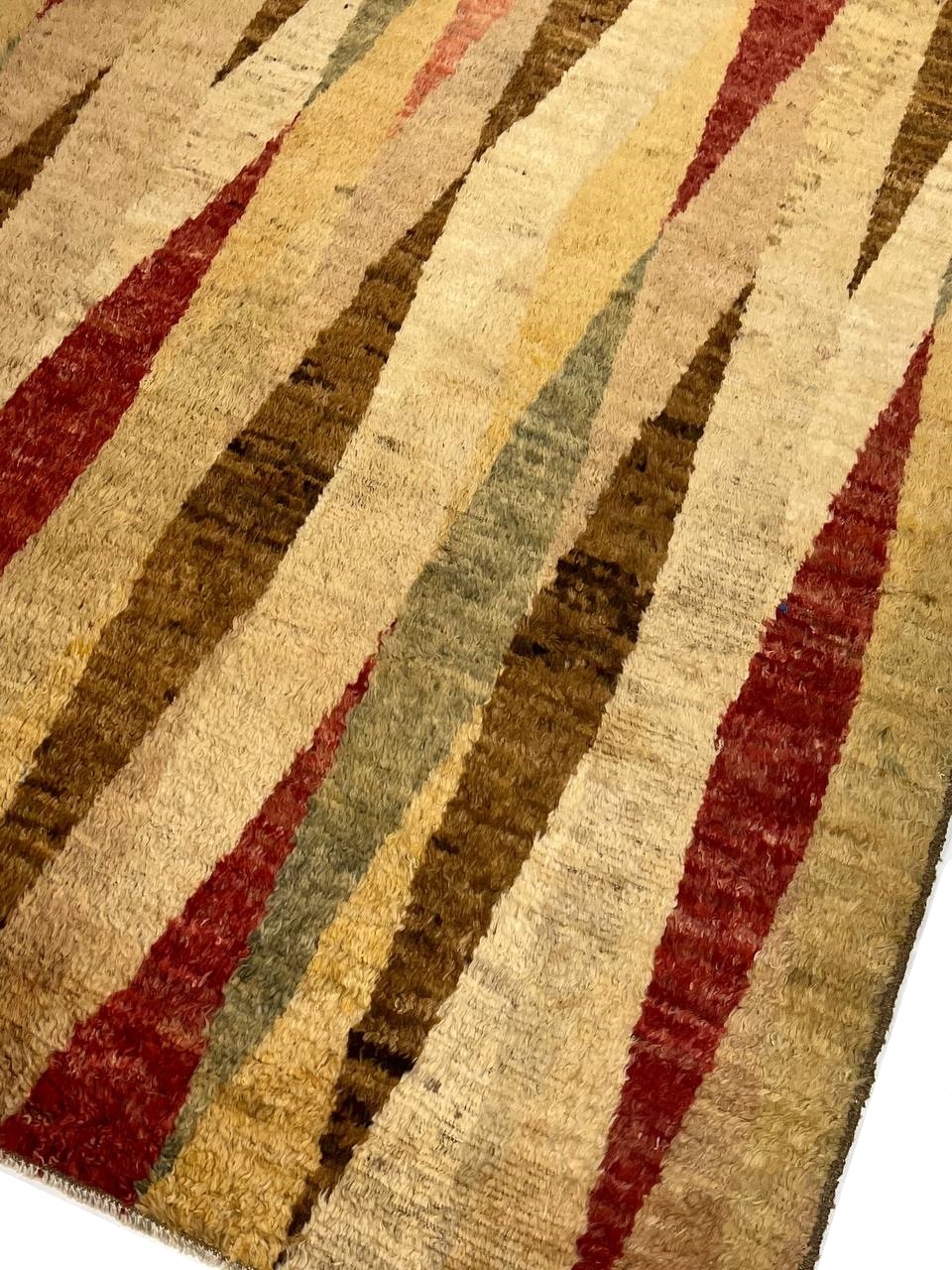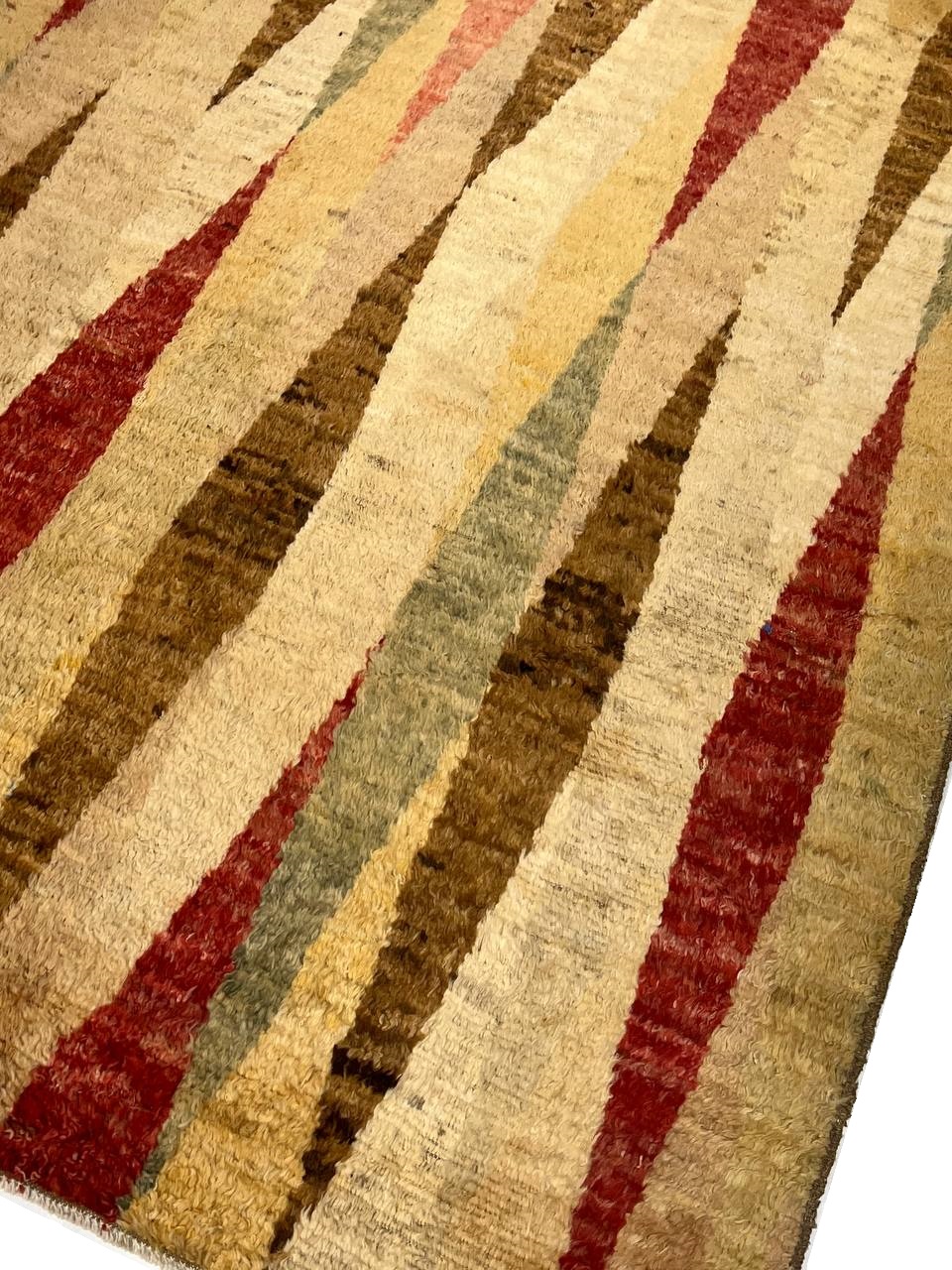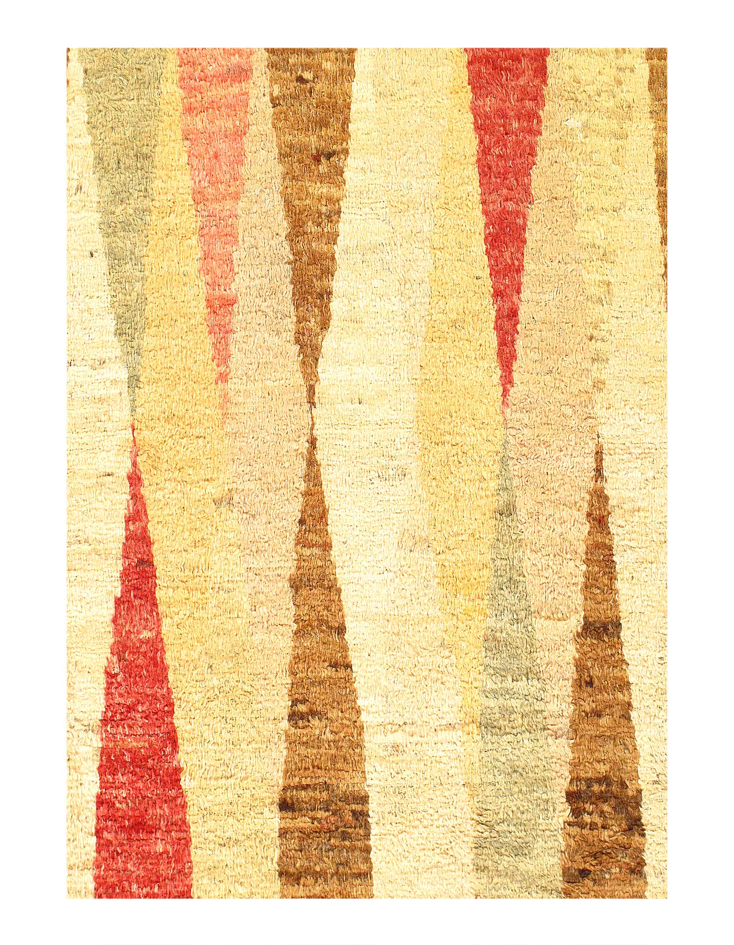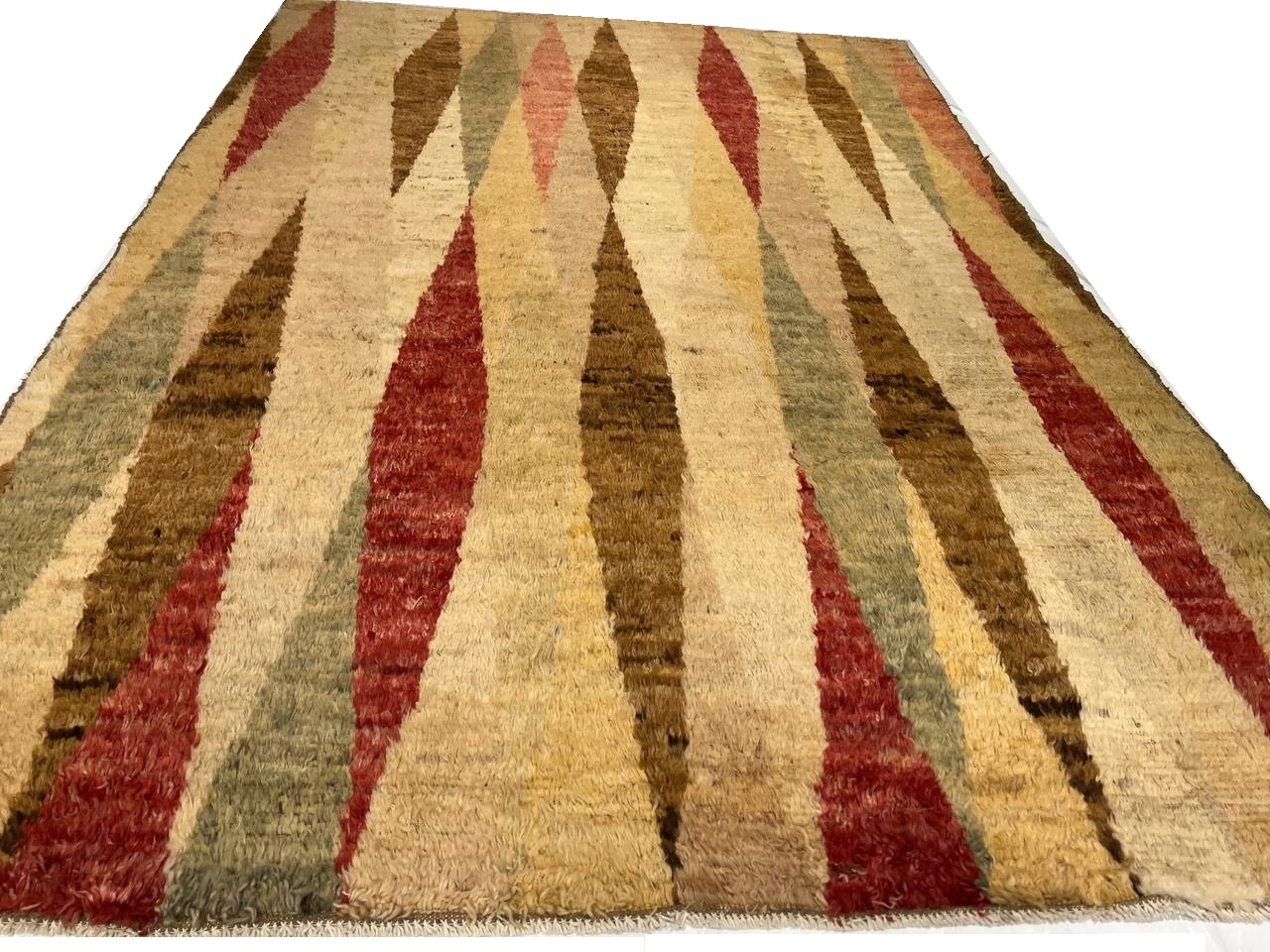 Bring a splash of vibrance and contrasting colors to your living space with the wool-blend composition, hand-knotted bohemian rug The colorful shaggy pattern of this beautiful rug is sure to catch everyone’s attention. Each corner of this beautifully designed floor covering features something else that will captivate anyone who sees it. Designed to enhance any room its placed in.