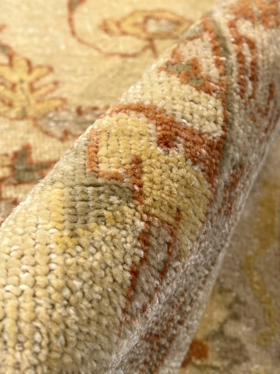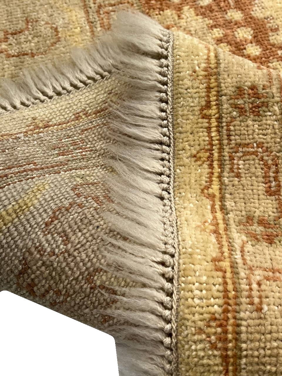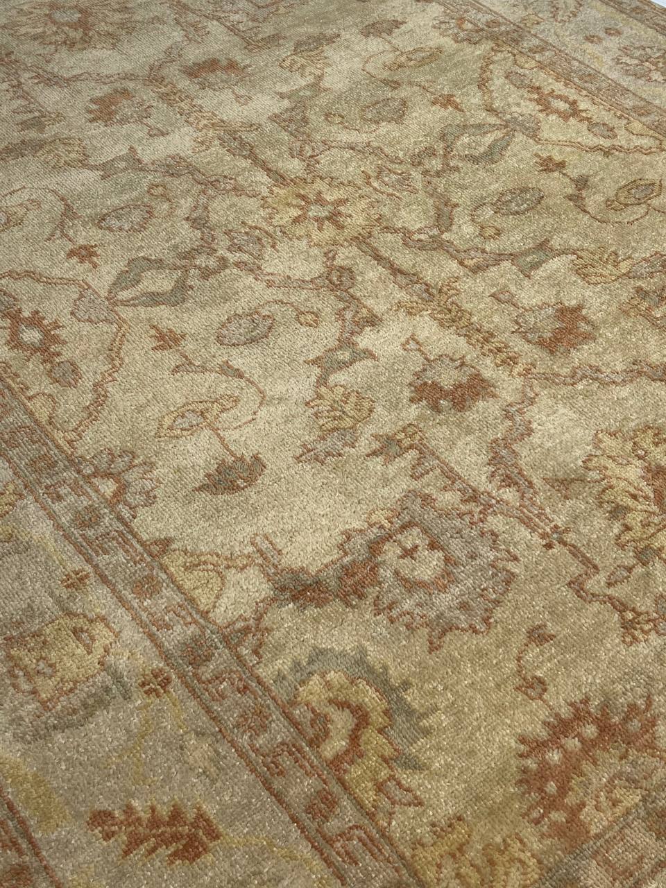 These Fine Indian Oushak carpets are extremely desirable because of their colors – which are usually much lighter and “happier” in feel than rugs from other regions. So if you are looking for an antique or vintage rug with a soft colors, theses should top your list. Fine Indian Oushak Carpets reflects the values of the time period in which they were woven. The weaving techniques, dyes used, and patterns incorporated all have their own time stamp attributed to them. These lighter colors will bring vibrancy and life to your home.