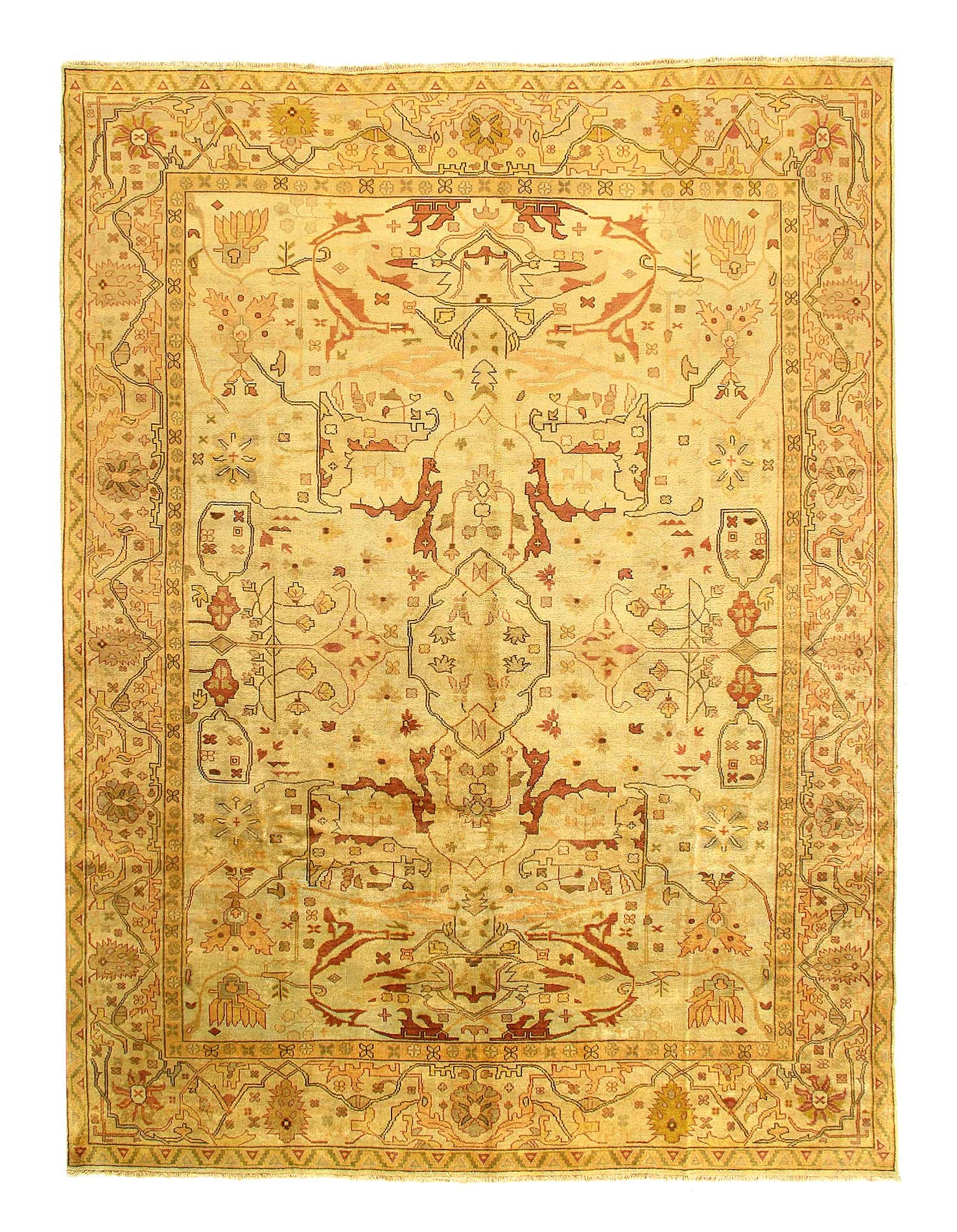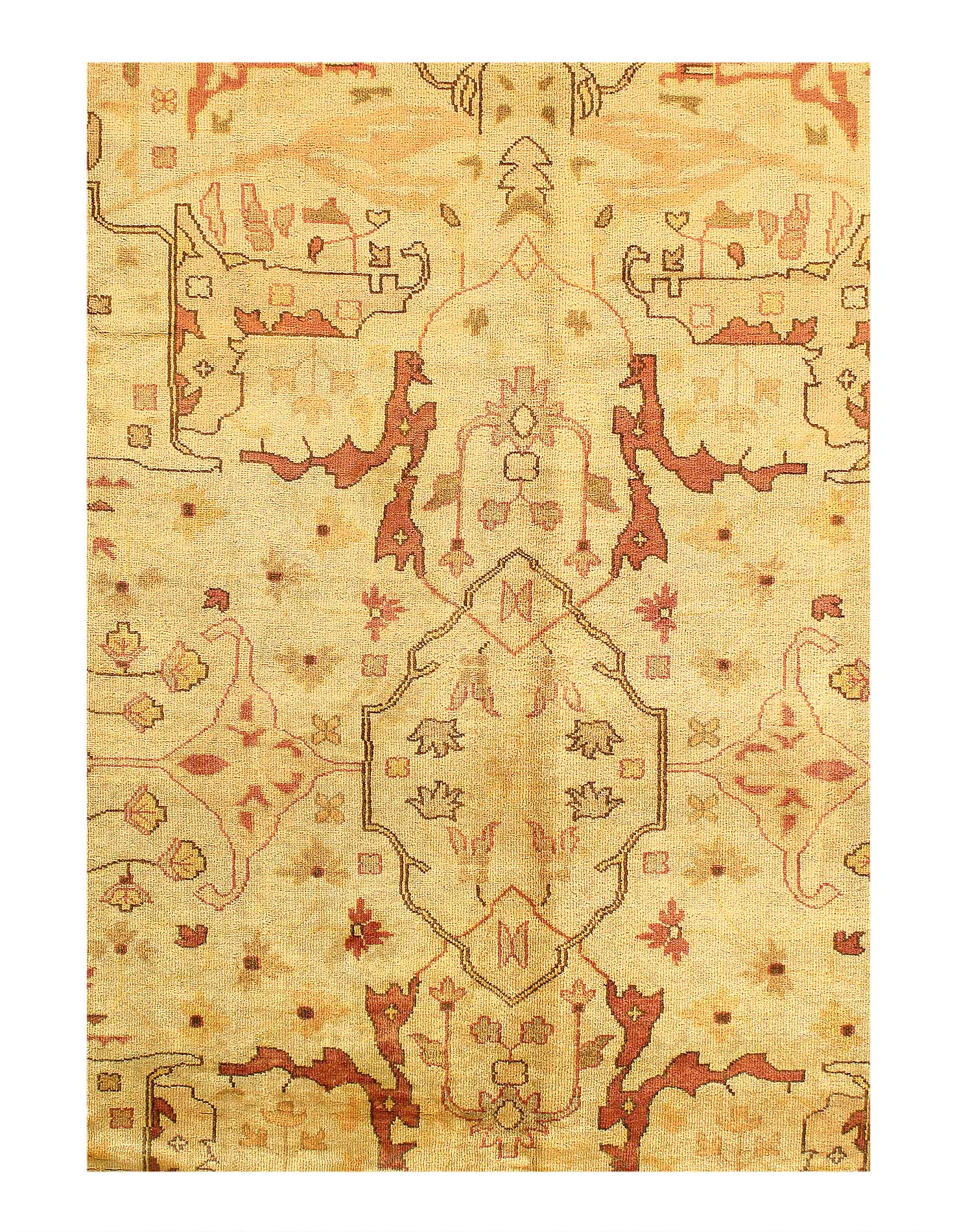 These Fine Indian Oushak carpets are extremely desirable because of their colors – which are usually much lighter and “happier” in feel than rugs from other regions. So if you are looking for an antique or vintage rug with a soft colors, theses should top your list. Fine Indian Oushak Carpets reflects the values of the time period in which they were woven. The weaving techniques, dyes used, and patterns incorporated all have their own time stamp attributed to them. These lighter colors will bring vibrancy and life to your home.