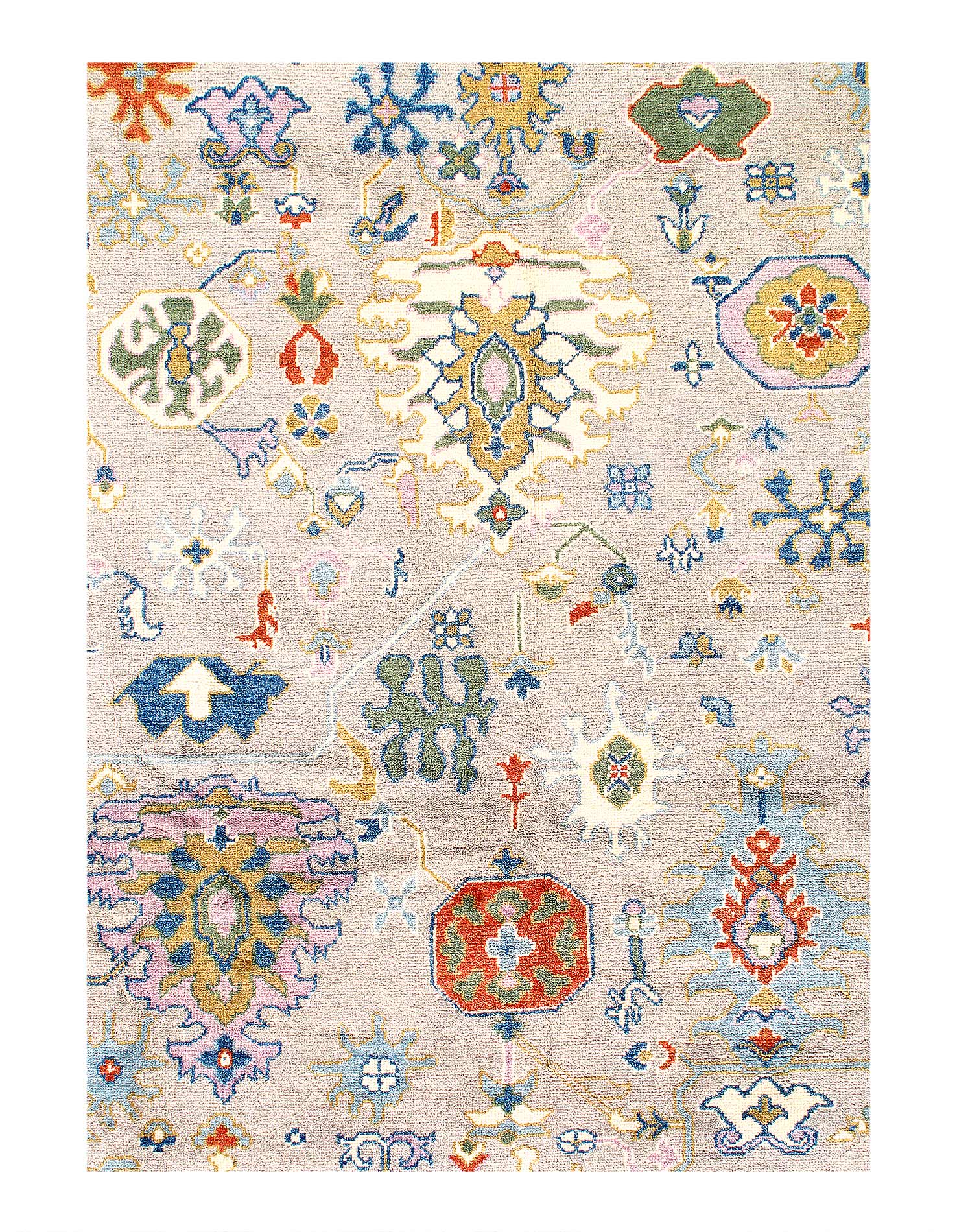Original Turkish OUSHAK Design. Handmade Hand-knotted. Lamb's wool on a Cotton foundation. From India. This rug has a dense, soft pile, and excellent quality, to ensure that you will enjoy the look and feel of your rug for years to come. D12211