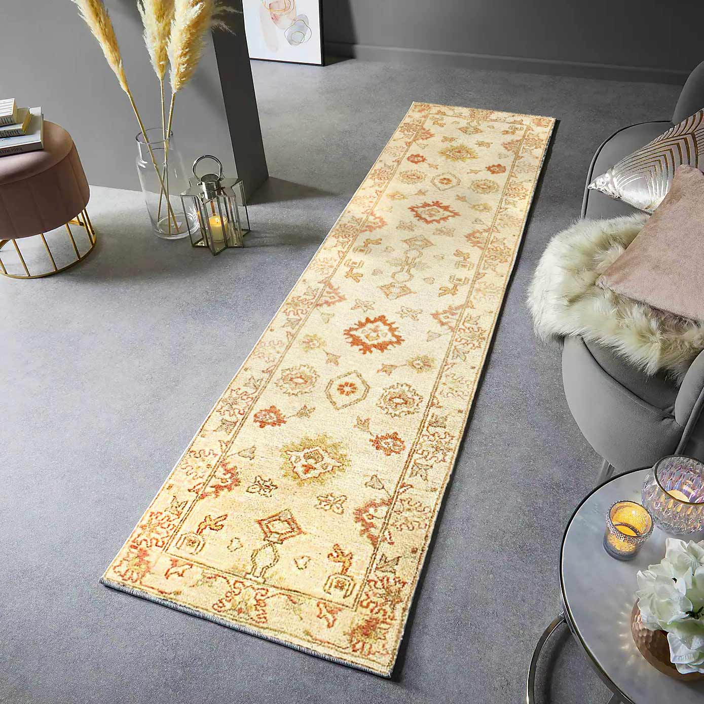 Oushak features the subtle elegance of classic Anatolian designs in tradition and styling of the finest Turkish carpets. These rugs provide a union of pattern, color, and the finest yarns and finishing. Each rug is finished with an antique wash that gives these rugs an authentic Oushak look. These rugs are hand knotted using the finest 100% New Zealand wool. The beauty of these rugs will enhance any interior decor.#D04904