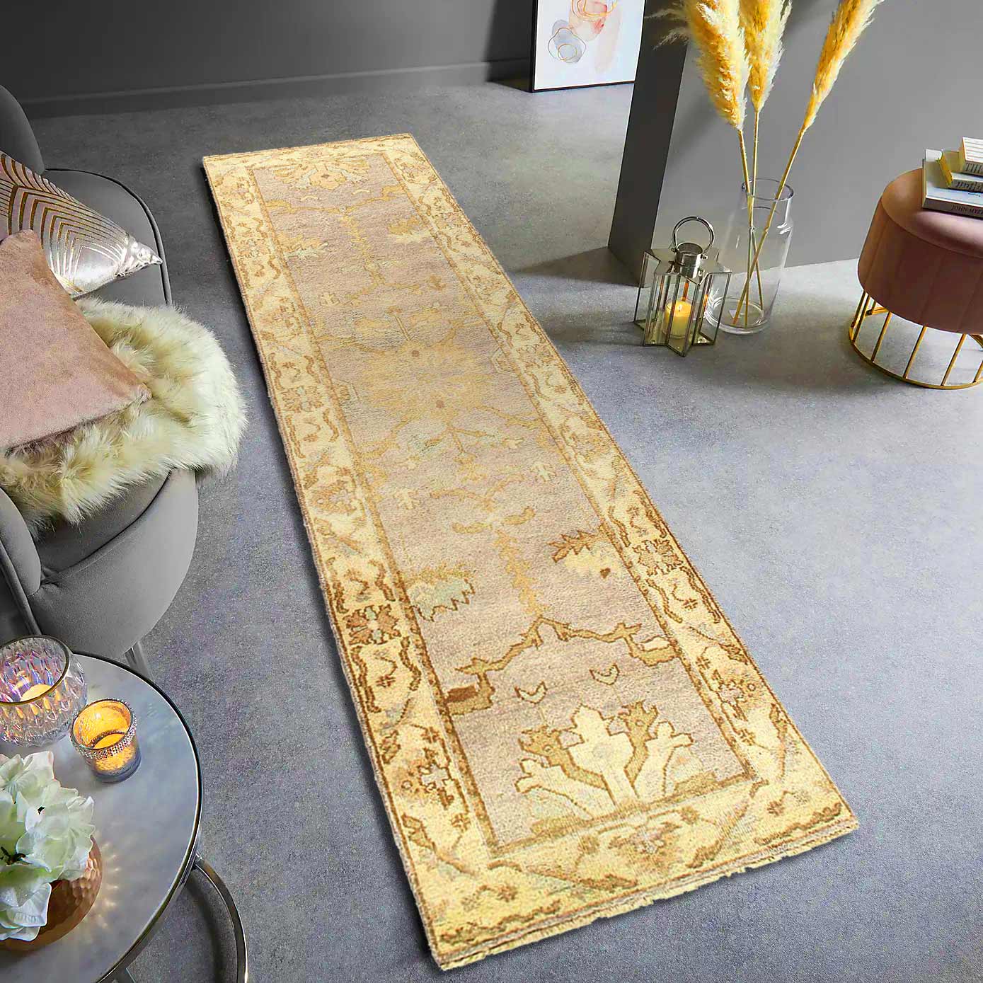 Indo Oushak design rug. Handmade and hand-knotted in fine lambswool on a cotton foundation. Vegetable dyed hand-spun wool rug.