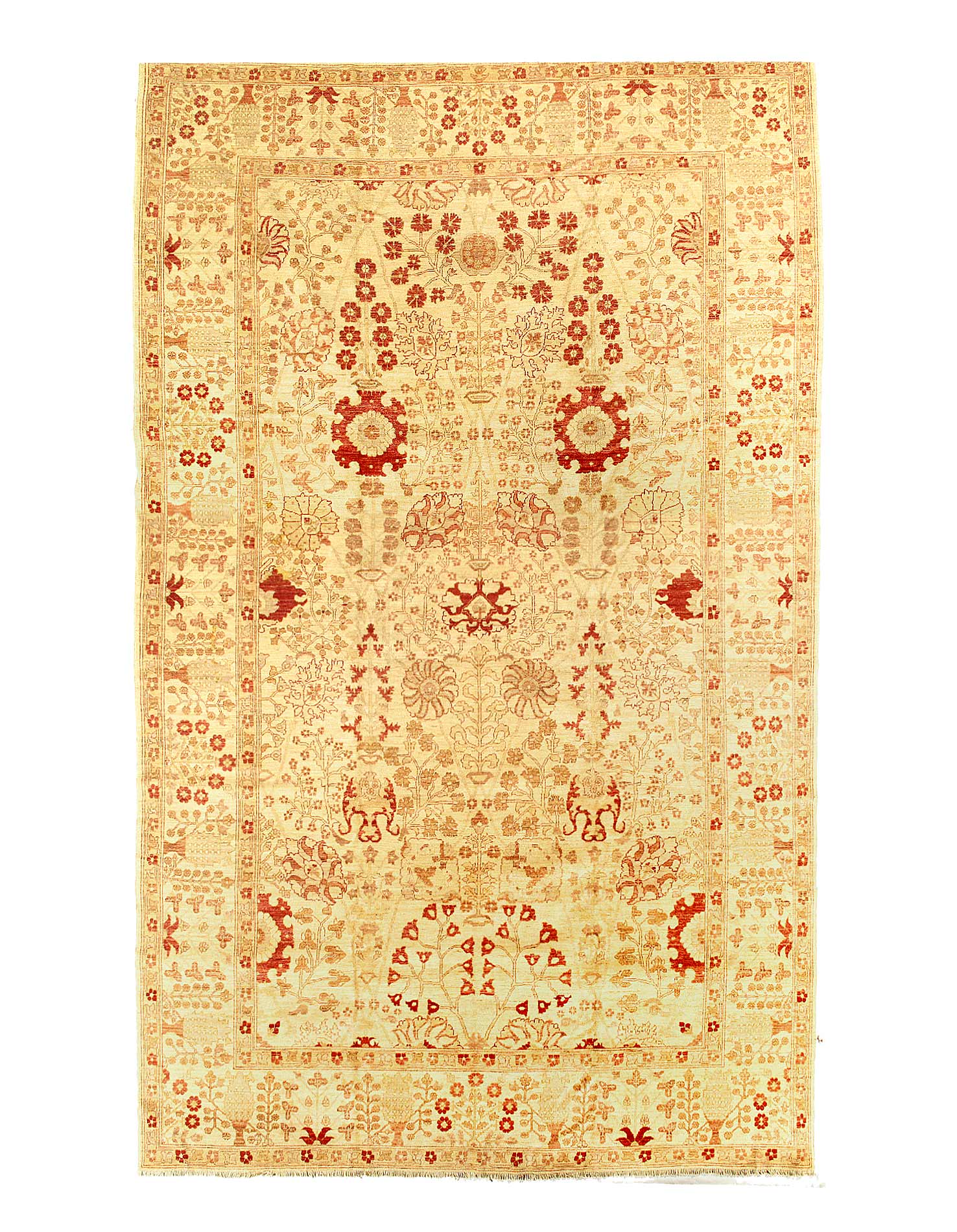 This Oushak Rug is Hand-Knotted Wool tan celebrated for its understated elegance, is greatly influenced by original antique Turkish Oushaks. Every Oushak reproduction is hand-knotted by master weavers capturing the look and spirit of the original Oushaks. Artfully made from hand spun New Zealand wool, each rug allows a texture that is soft and luxurious. This rug set a standard of excellence that will outlast the whims of fashion and without a doubt become tomorrow’s antiques!
