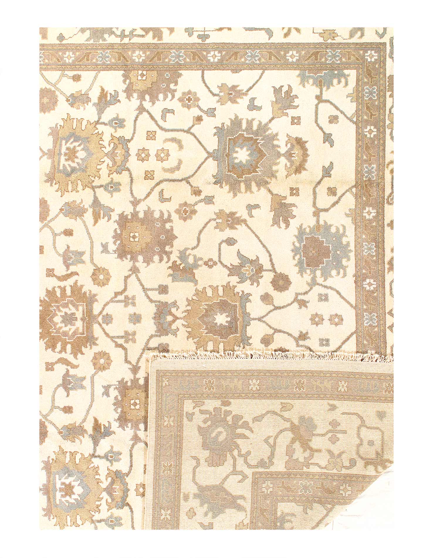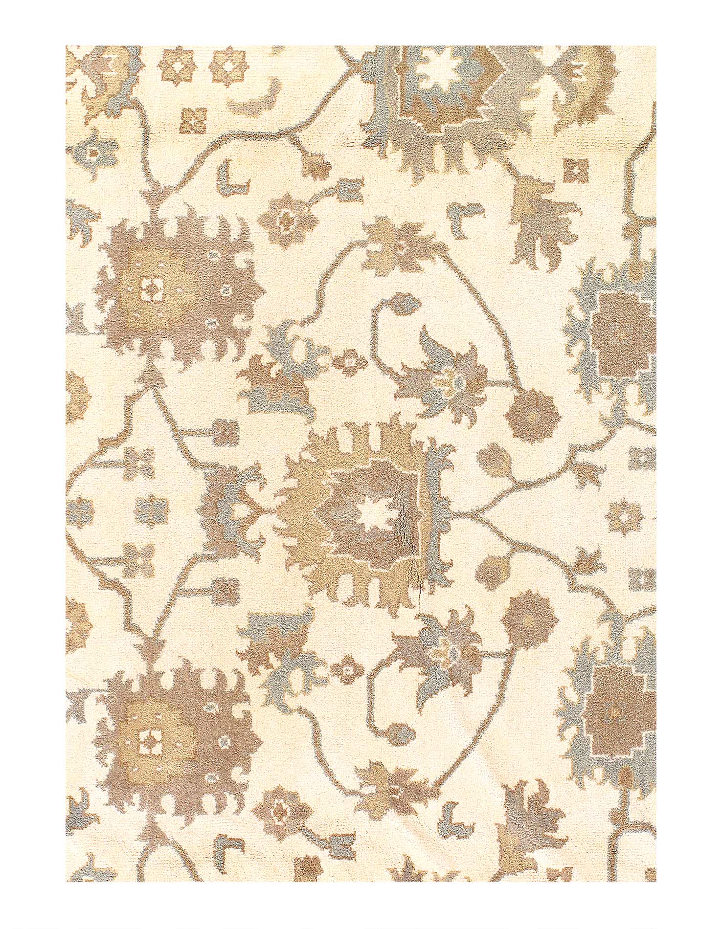 This Oushak Hand-Knotted Wool Beige Area Rug celebrated for its understated elegance, is greatly influenced by original antique Turkish Oushaks. Every Oushak reproduction is hand-knotted by master weavers capturing the look and spirit of the original Oushaks. Artfully made from hand spun New Zealand wool, each rug allows a texture that is soft and luxurious. This rug set a standard of excellence that will outlast the whims of fashion and without a doubt become tomorrow’s antiques!