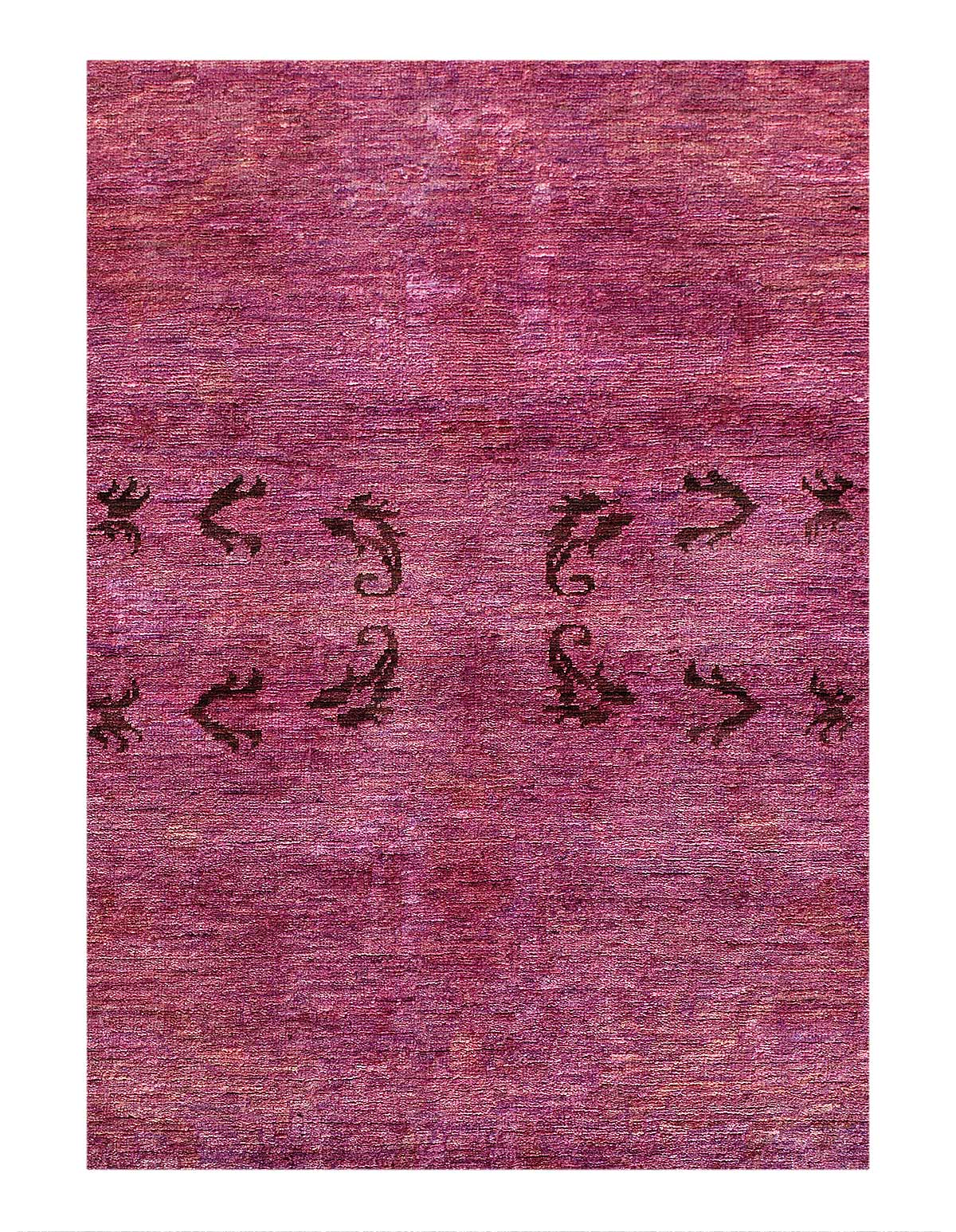 This hand knotted carpet was originally made in the 2024 It is over-dyed in burgundy rose, has low wool pile on cotton foundation. It is sturdy, in good condition and can handle high foot traffic. It is deep-washed and very clean. It can be a fitting piece for contemporary, boho chic and eclectic interiors.