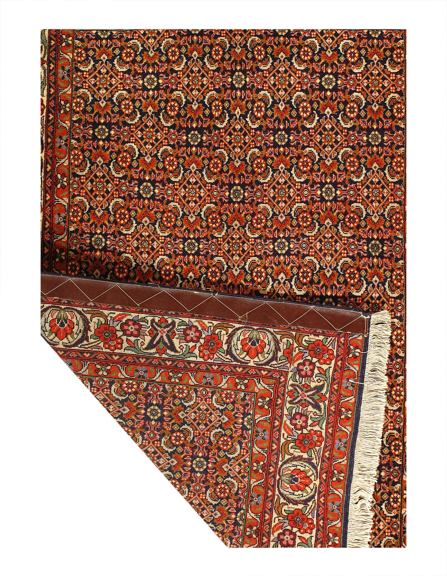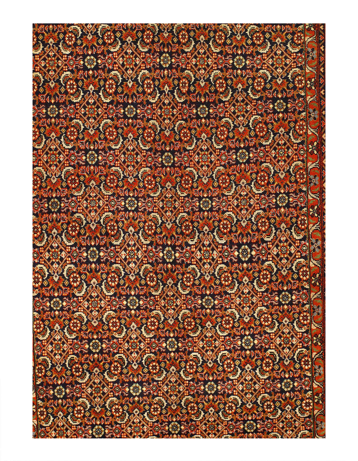 Bidjar is a town in Persian Kurdistan located in north-west Persia. The Bidjar name is also used to describe the antique rugs that were produced in the many villages in the surrounding vicinity. The Bidjar is noted as being the stiffest carpet made; they are very heavy in relation to their size, and very thick and durable. All of the knots are symmetrical and the rows are beaten down during the weaving process producing a dense compact fabric. Given their thickness and construction Bidjar rugs can be difficult to fold. The many designs depict the Kurdish influence of the area and often floral and classical geometric motifs are employed as well as the use of large, whimsical medallion designs. The color palate is rich and jewel toned making the Bidjar a highly desirable rug sought after by designers.