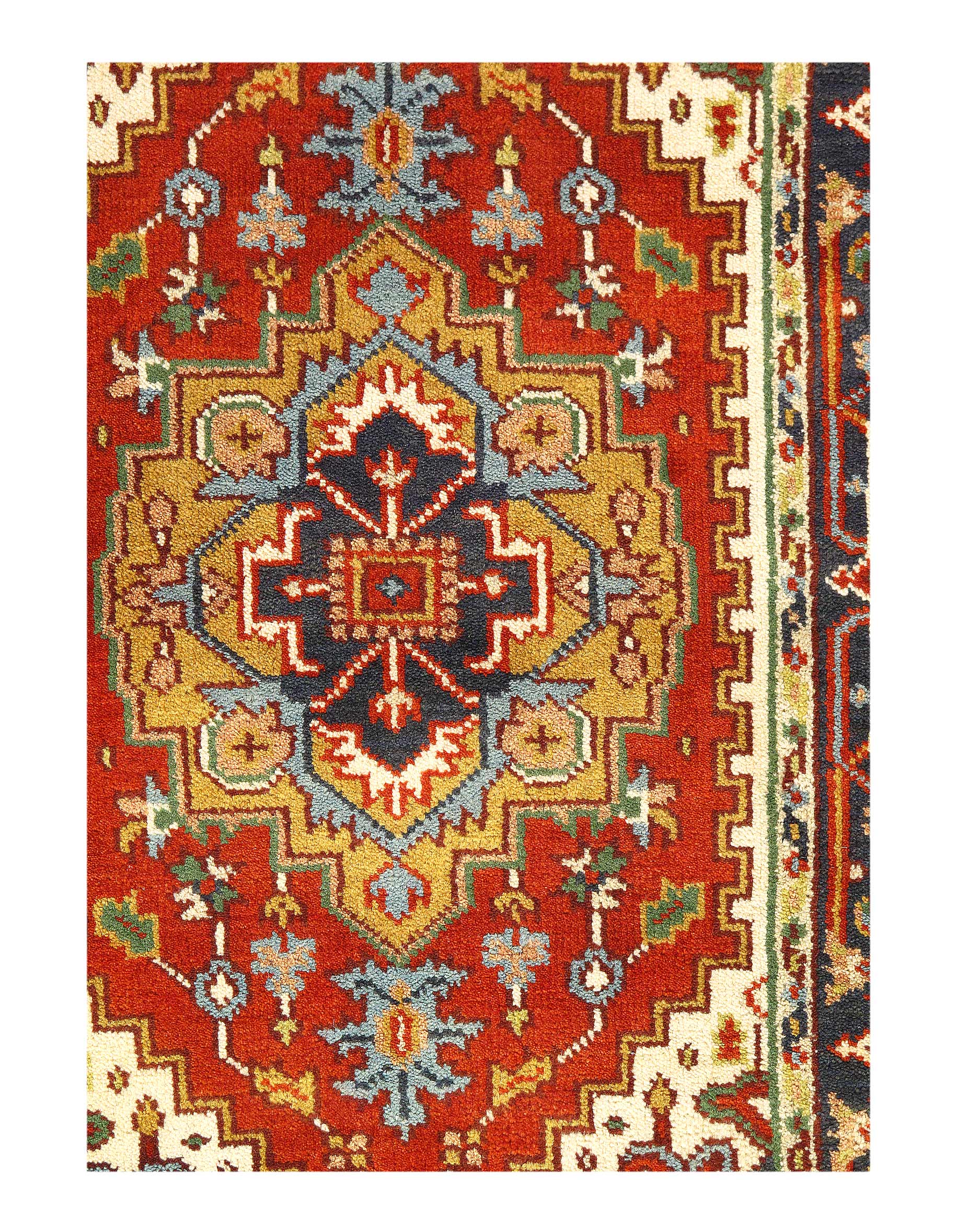 Indo Serapi design rug. Handmade Hand-knotted in fine lambswool. Lamb's Wool on a Cotton Foundation Vegetable Dyed Hand-Spun Wool Rug The Serapi Rug is one of the most sought after rugs particularly in the USA and England for many years. No other rug so epitomizes the "East Coast Establishment" than the Serapi carpet This rug has a dense, soft pile, and excellent quality, to ensure that you will enjoy the look and feel of your rug for years to come #D09062