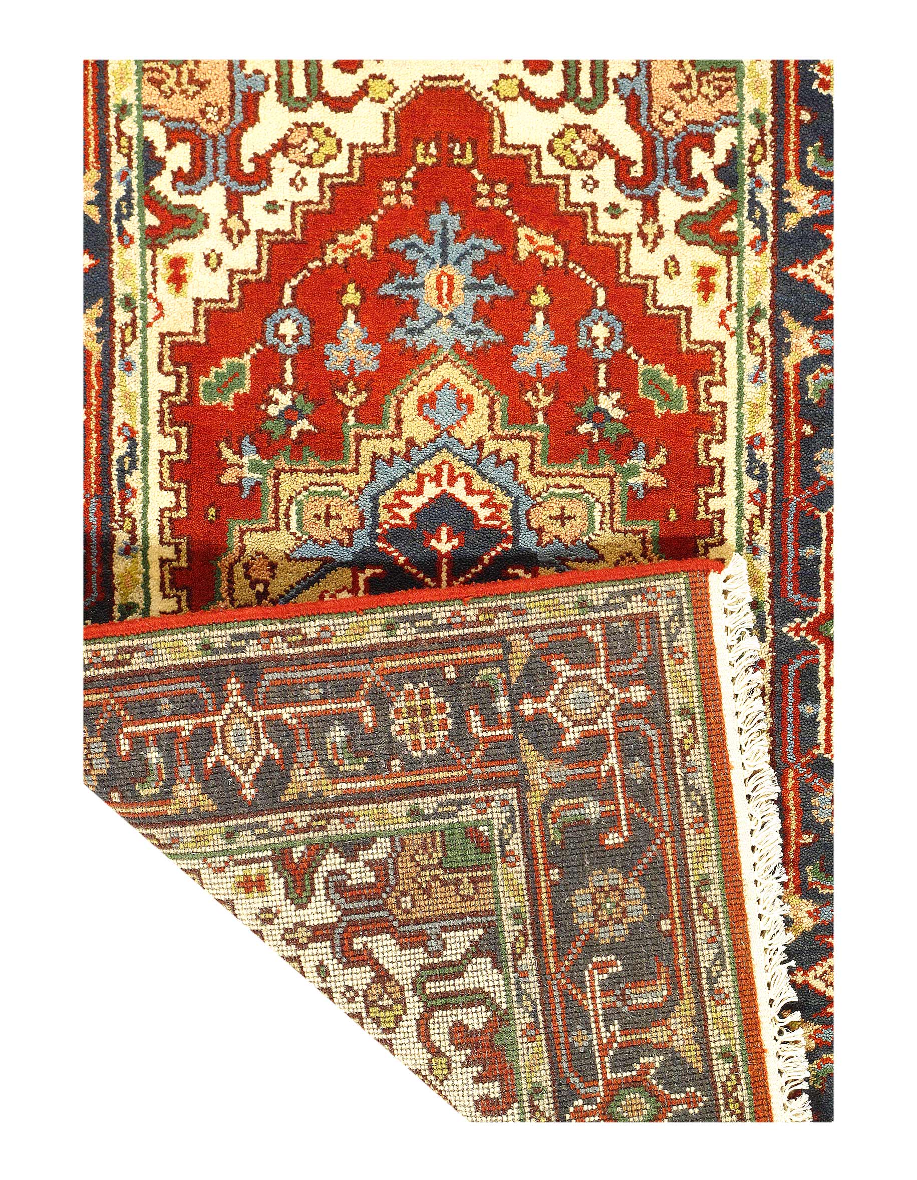 Indo Serapi design rug. Handmade Hand-knotted in fine lambswool. Lamb's Wool on a Cotton Foundation Vegetable Dyed Hand-Spun Wool Rug The Serapi Rug is one of the most sought after rugs particularly in the USA and England for many years. No other rug so epitomizes the "East Coast Establishment" than the Serapi carpet This rug has a dense, soft pile, and excellent quality, to ensure that you will enjoy the look and feel of your rug for years to come #D09060