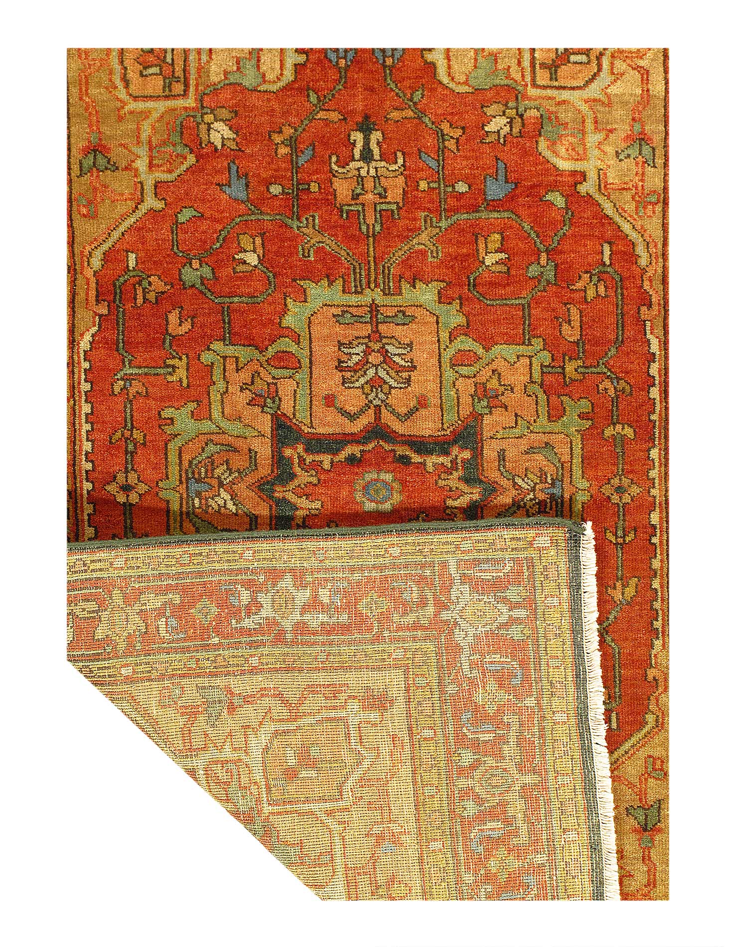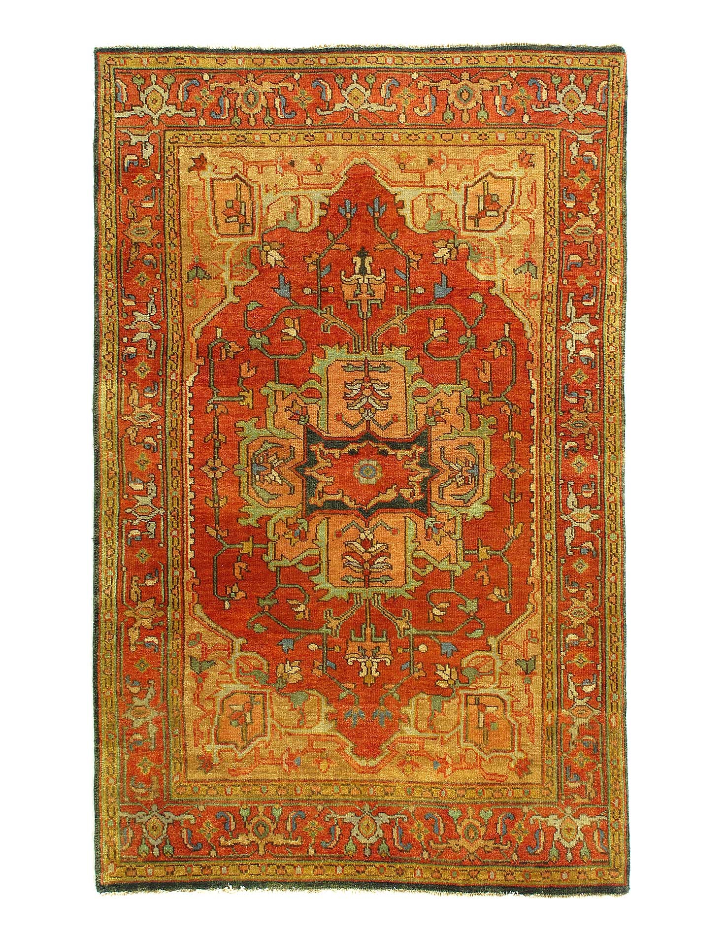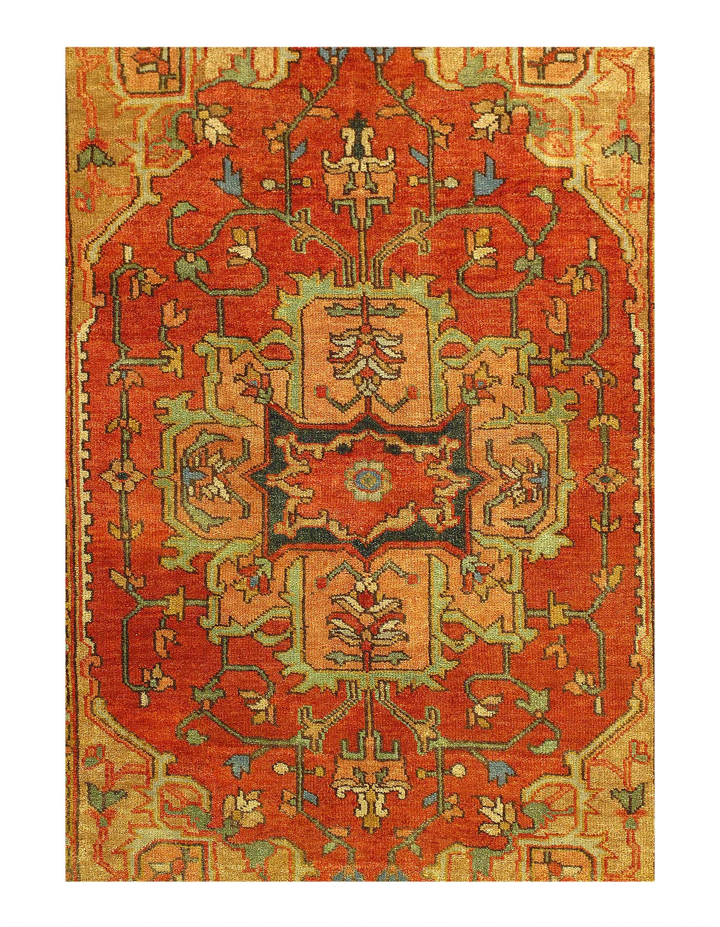 Serapi design rug. Handmade Hand-knotted in fine lambswool. Lamb's Wool on a Cotton Foundation Vegetable Dyed Hand-Spun Wool Rug The Serapi Rug is one of the most sought after rugs particularly in the USA and England for many years. No other rug so epitomizes the "East Coast Establishment" than the Serapi carpet This rug has a dense, soft pile, and excellent quality, to ensure that you will enjoy the look and feel of your rug for years to come .