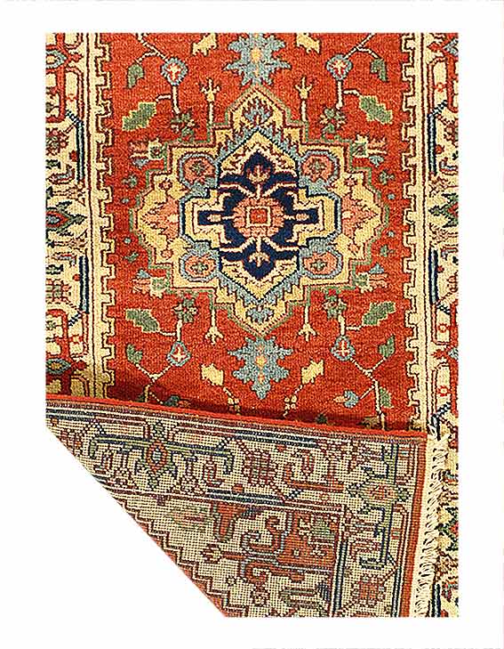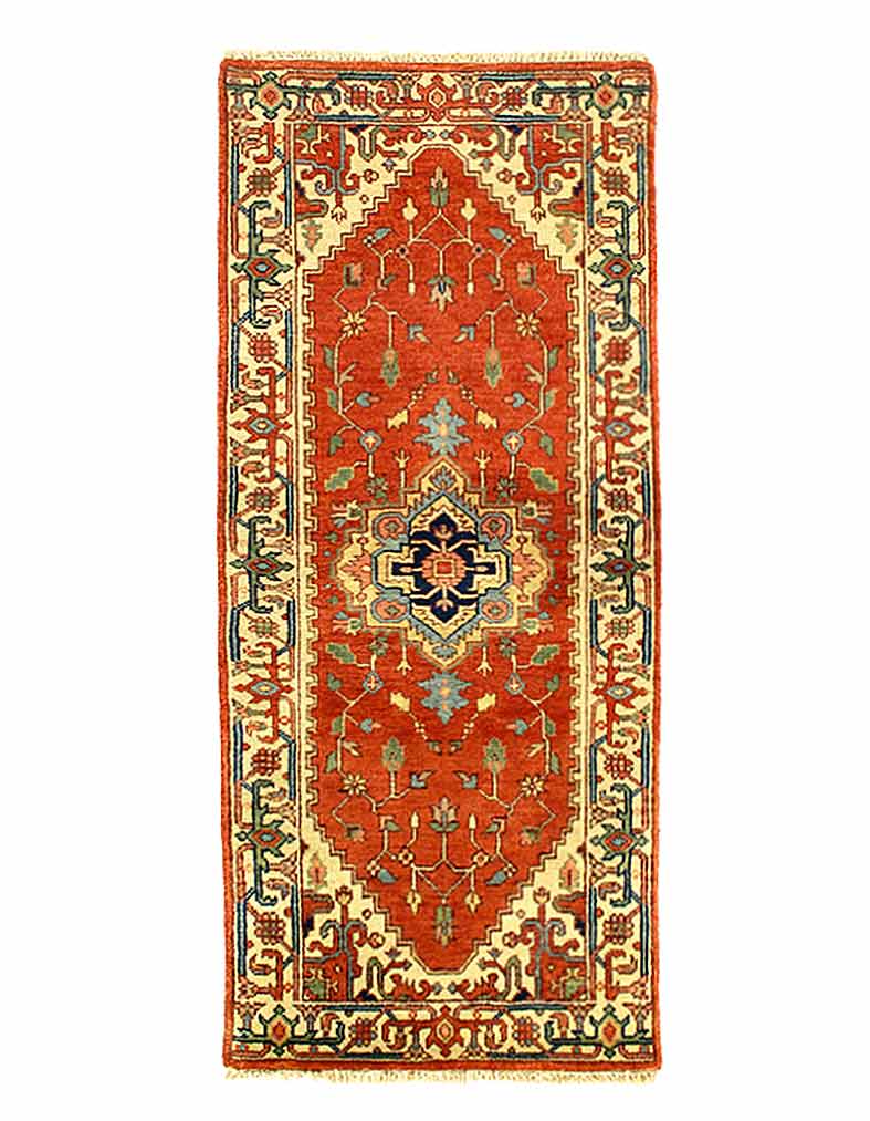 Indo Serapi design rug. Handmade Hand-knotted in fine lambswool. Lamb's Wool on a Cotton Foundation Vegetable Dyed Hand-Spun Wool Rug The Serapi Rug is one of the most sought after rugs particularly in the USA and England for many years. No other rug so epitomizes the "East Coast Establishment" than the Serapi carpet This rug has a dense, soft pile, and excellent quality, to ensure that you will enjoy the look and feel of your rug for years to come D08965