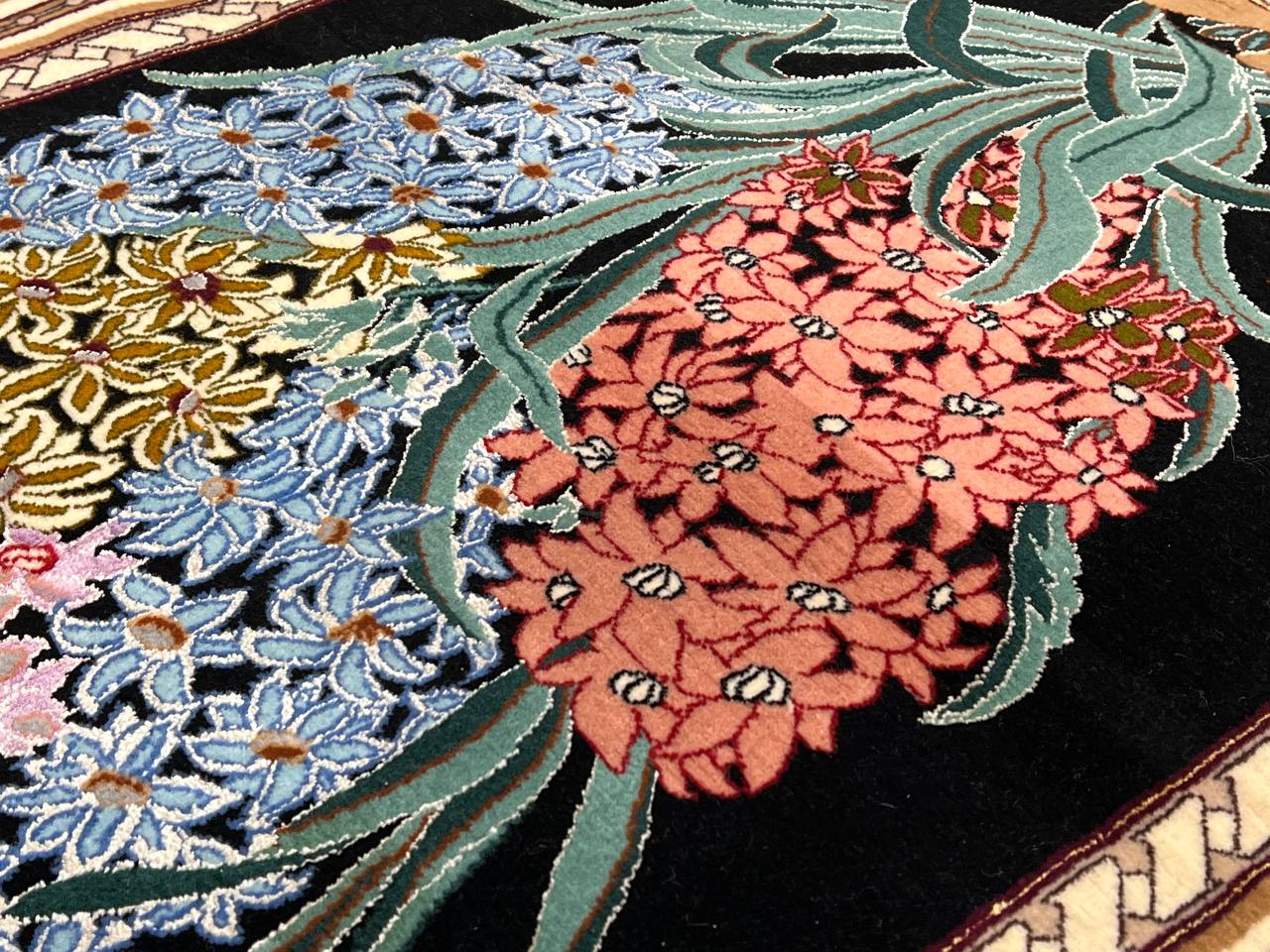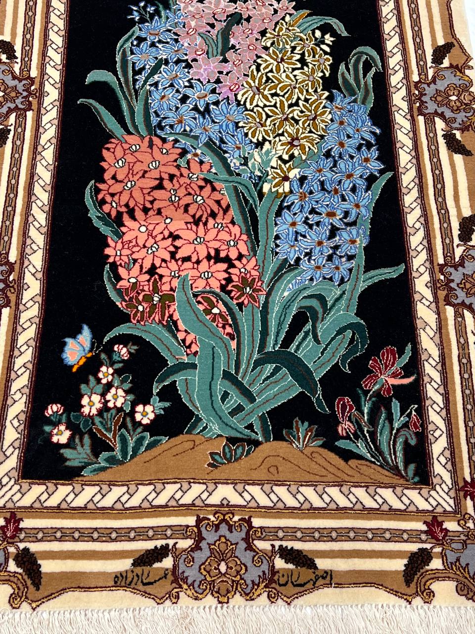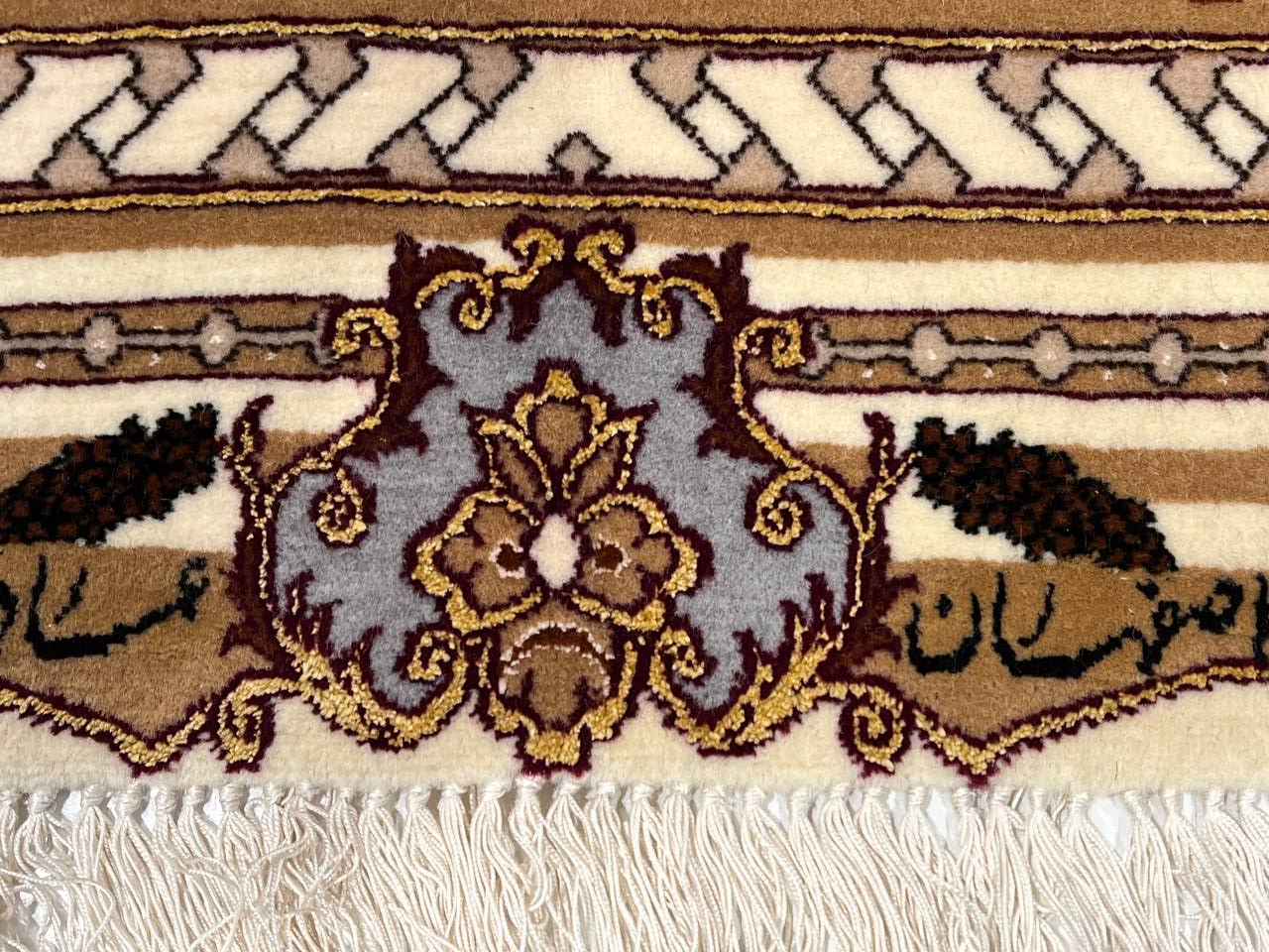 The Isfahan rugs are made with exceptionally good quality of wool & silk. They use traditional motifs inspired by architectural tiles that once decorated the historical buildings from which these rugs originated in. When it comes to high class designs the composition, patterns, and materials of Isfahan meets those expectations. The motifs usually consist of medallions with palmetts and also figural motifs. Isfahan rugs have an extremely high knot density and are woven with silk and golden threads, which give them their luxurious look.