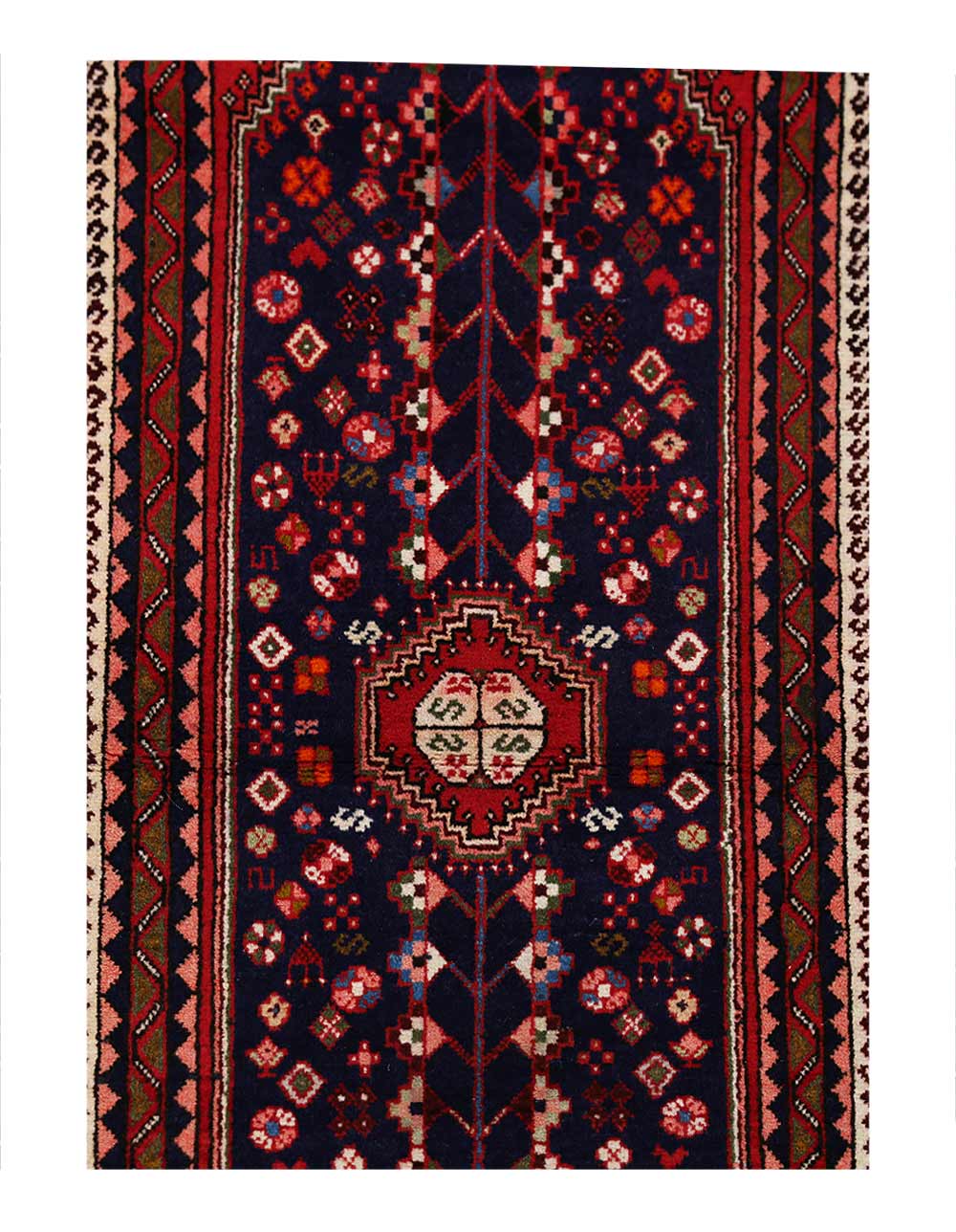 A very attractive and durable carpet woven in the village of Abadeh in southwestern Persia. The pattern is influenced by nomads and usually consists of a hexagon in the middle containing a rosette or a medallion. A good bargain since the carpet retains its value for a long time.