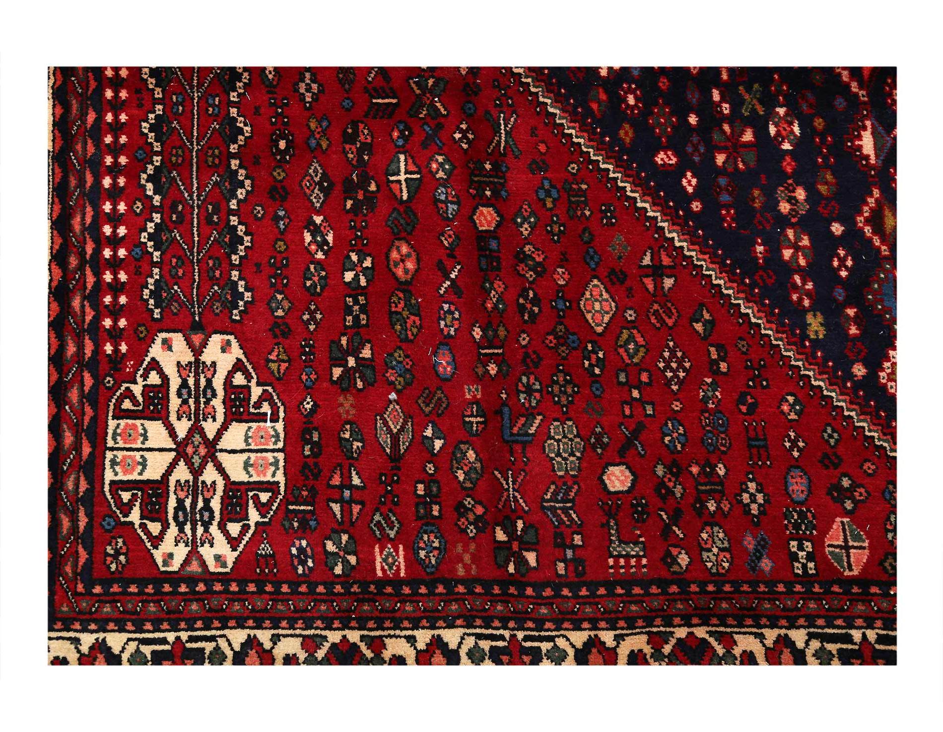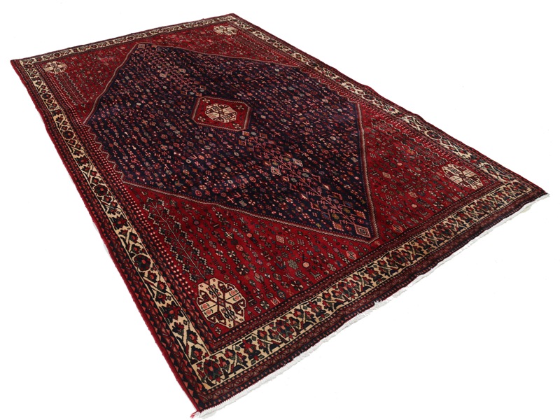 A very attractive and durable carpet woven in the village of Abadeh in southwestern Persia. The pattern is influenced by nomads and usually consists of a hexagon in the middle containing a rosette or a medallion. A good bargain since the carpet retains its value for a long time.