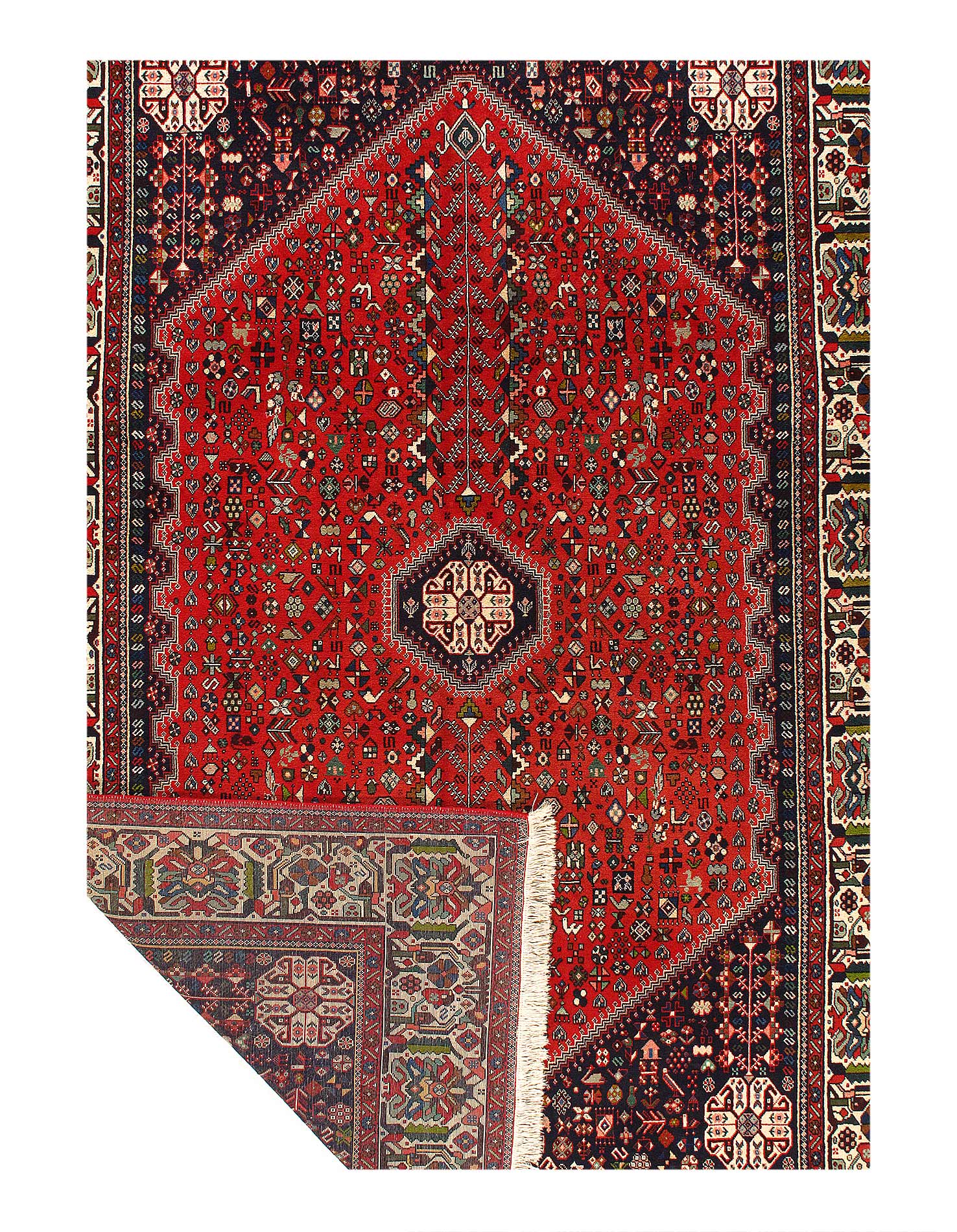 A very attractive and durable carpet woven in the village of Abadeh in southwestern Persia. The pattern is influenced by nomads and usually consists of a hexagon in the middle containing a rosette or a medallion. A good bargain since the carpet retains its value for a long time.