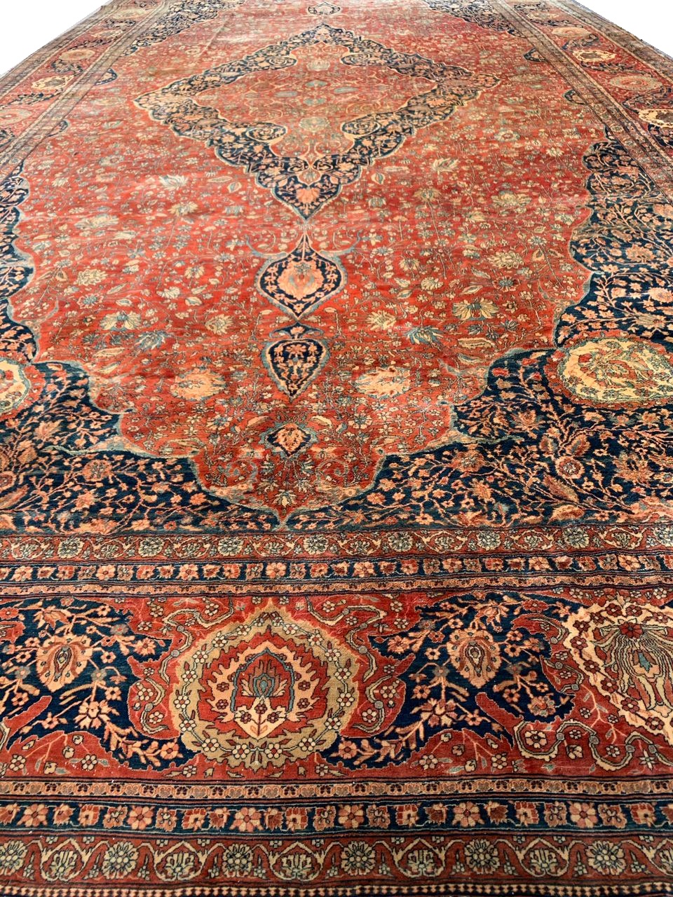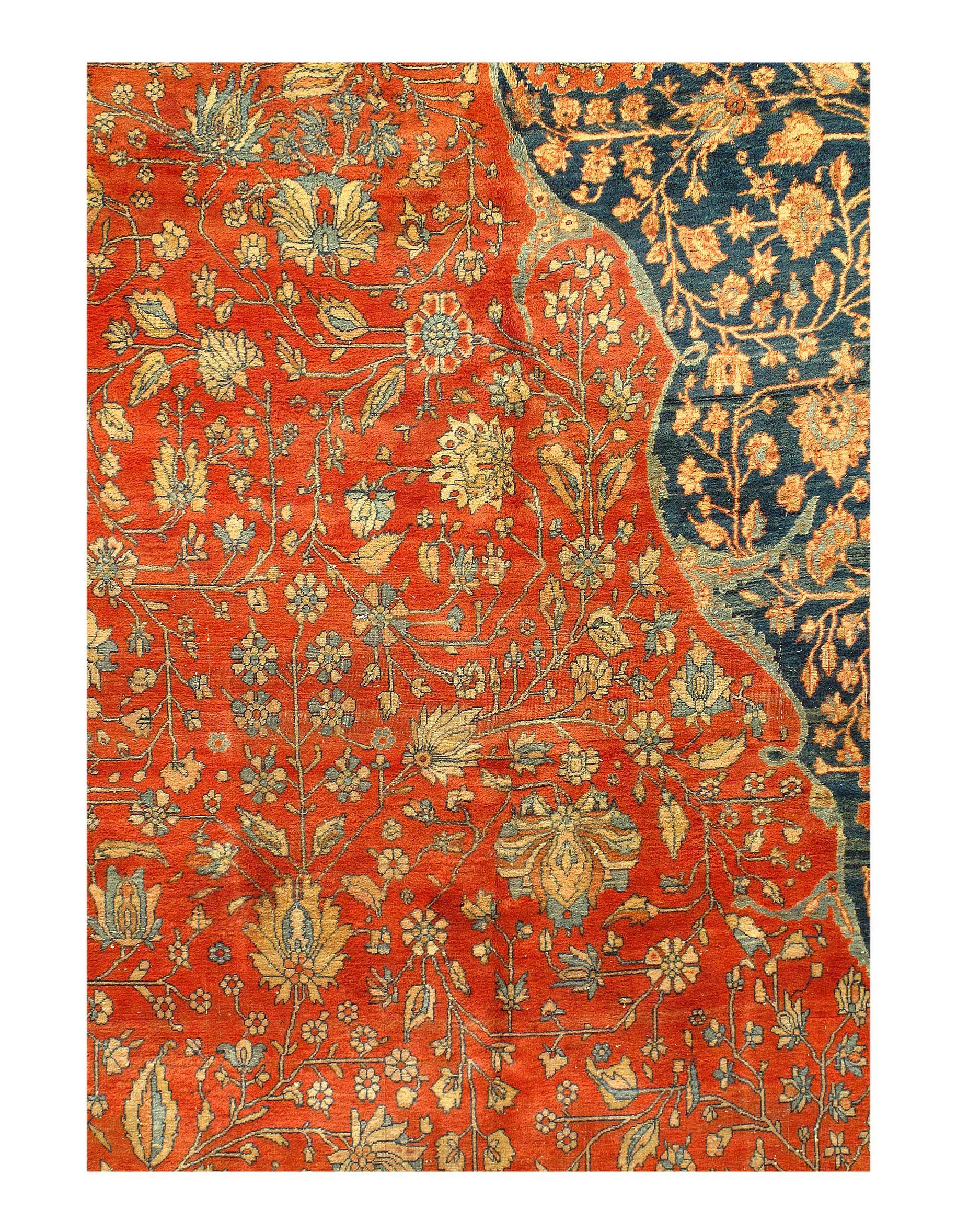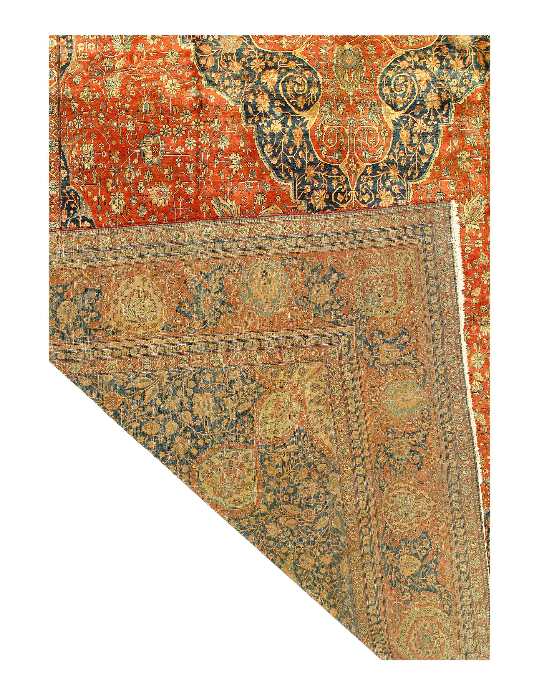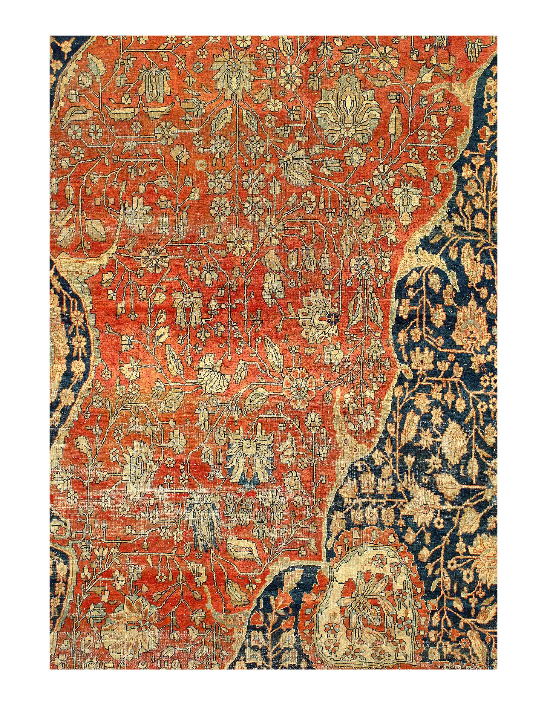 There were many master artists during the revival period, but we only know the names of a handful of them. Mohtasham is one of them. This rug is a large piece with a fine knot count. Rugs of this size and quality could take a team of weavers working under Mohtasham’s direction a year or more to create.