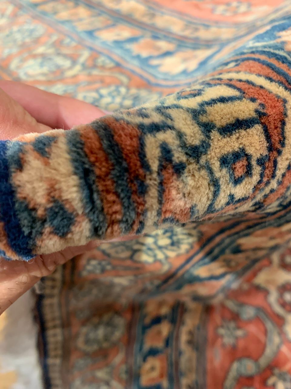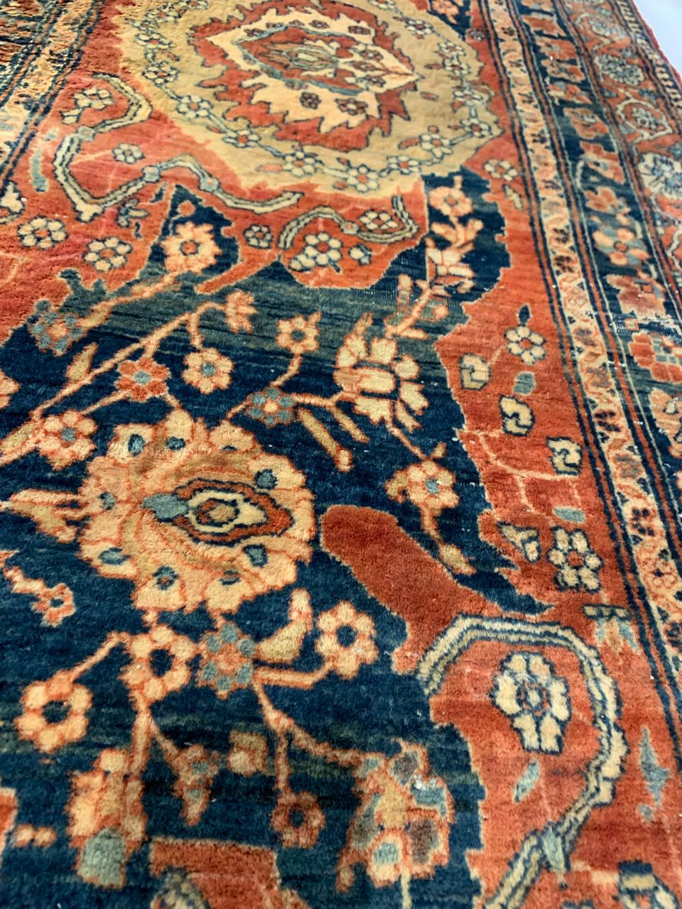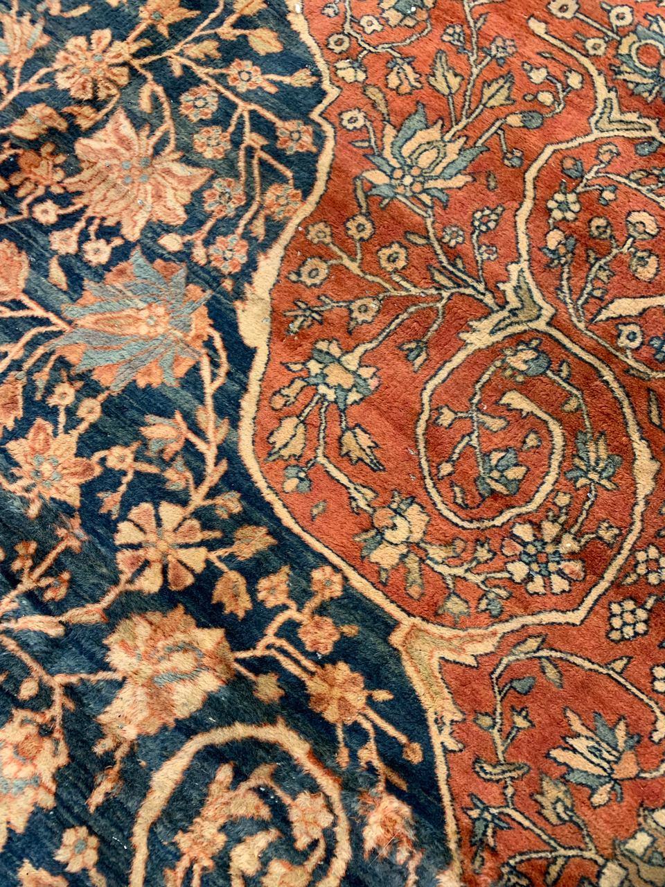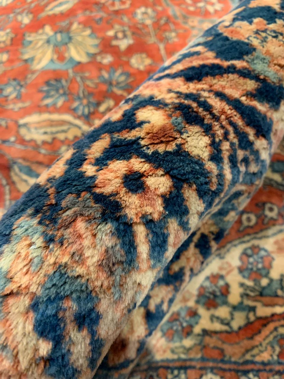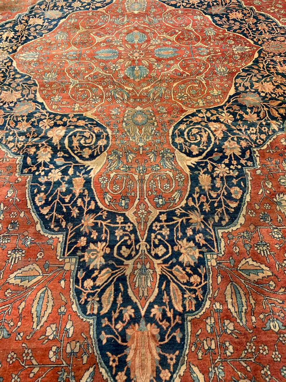 There were many master artists during the revival period, but we only know the names of a handful of them. Mohtasham is one of them. This rug is a large piece with a fine knot count. Rugs of this size and quality could take a team of weavers working under Mohtasham’s direction a year or more to create.