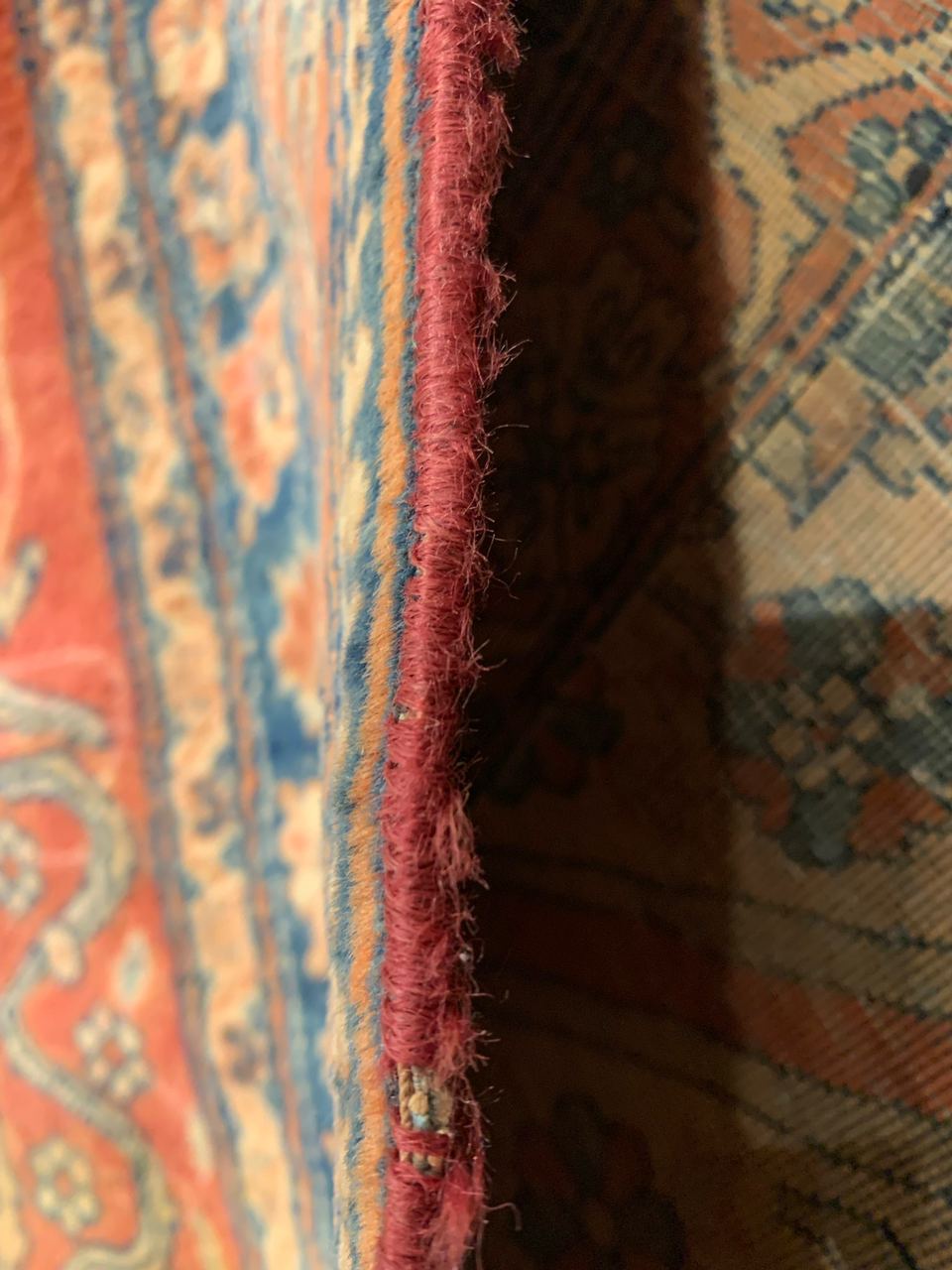 This rug is inspired by the beautiful gardens surrounding Kashan. One of the characteristics of a Mohtasham is the needle-wrapped edges with magenta threads. These carpets are known for their fine weave and soft, yet durable wools. The fineness of the knots requires incredible manual dexterity.