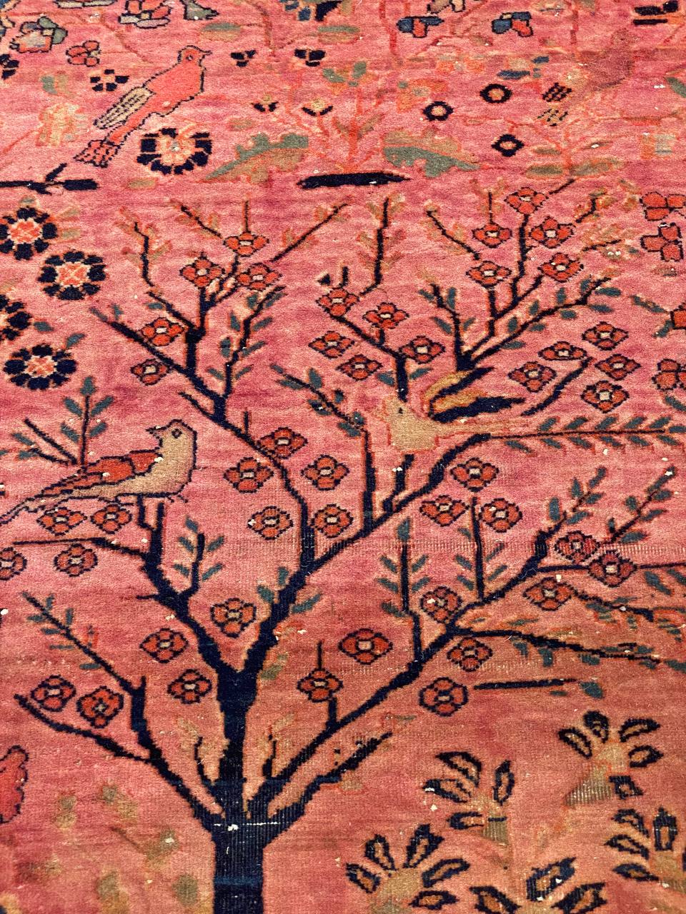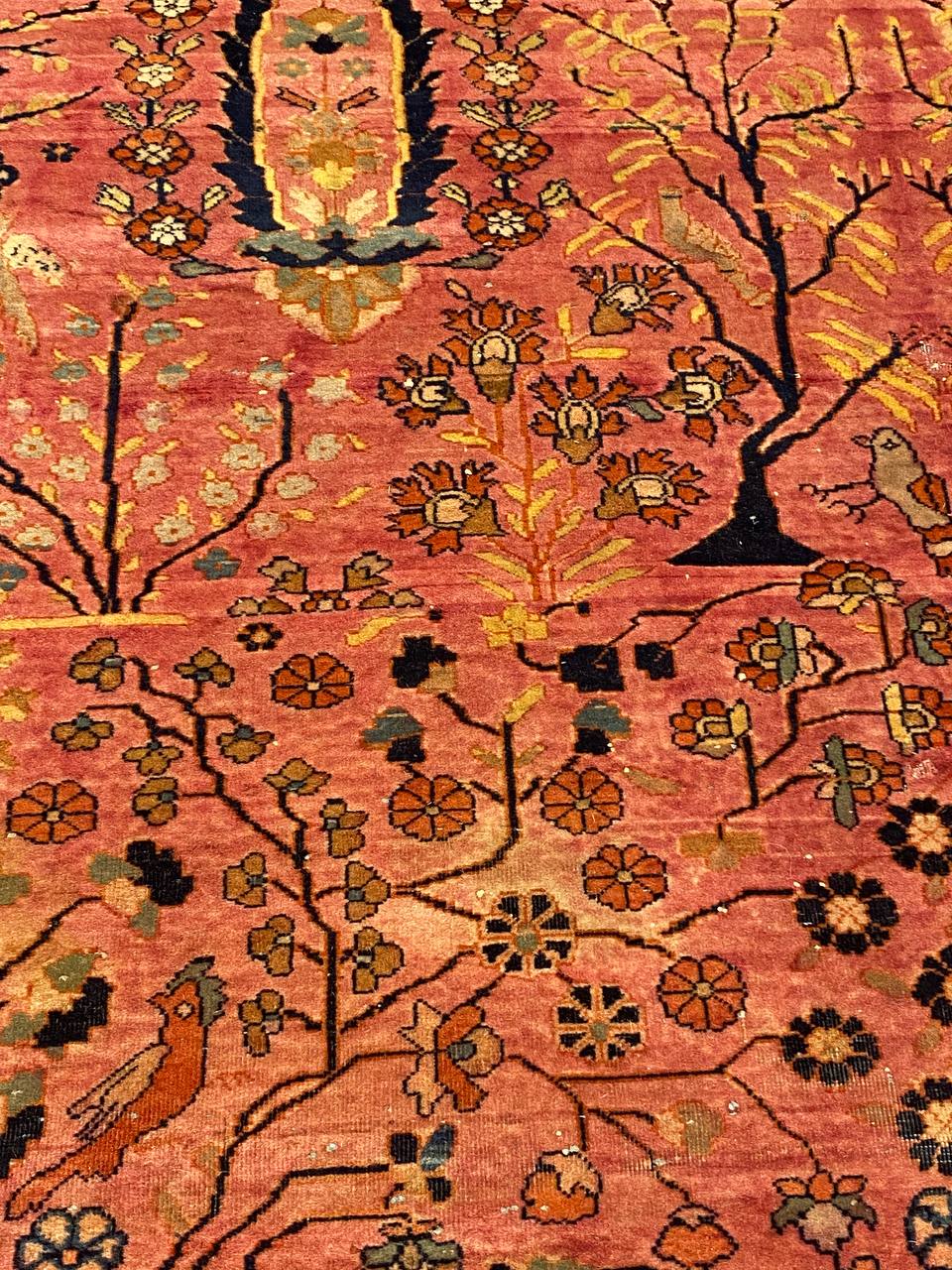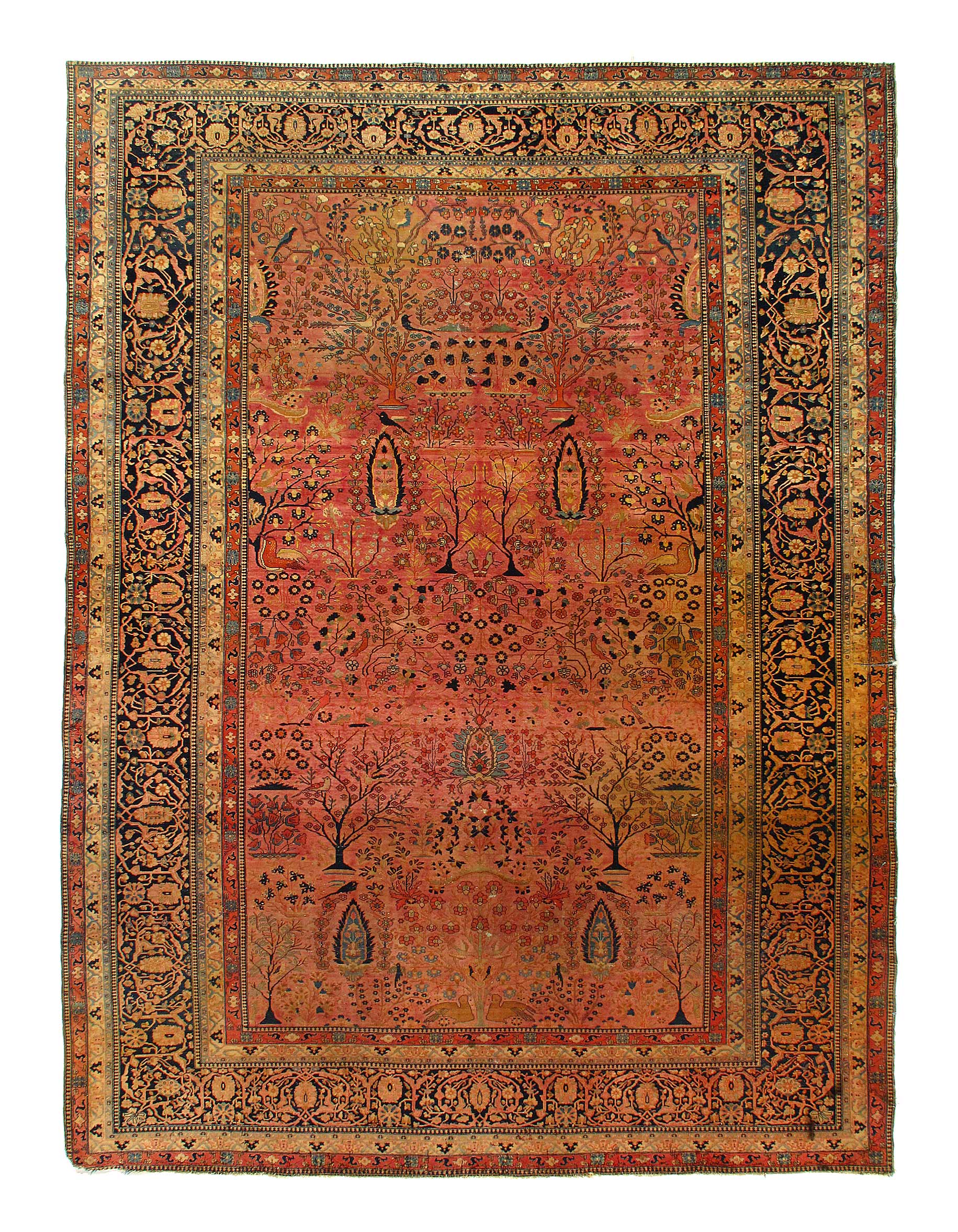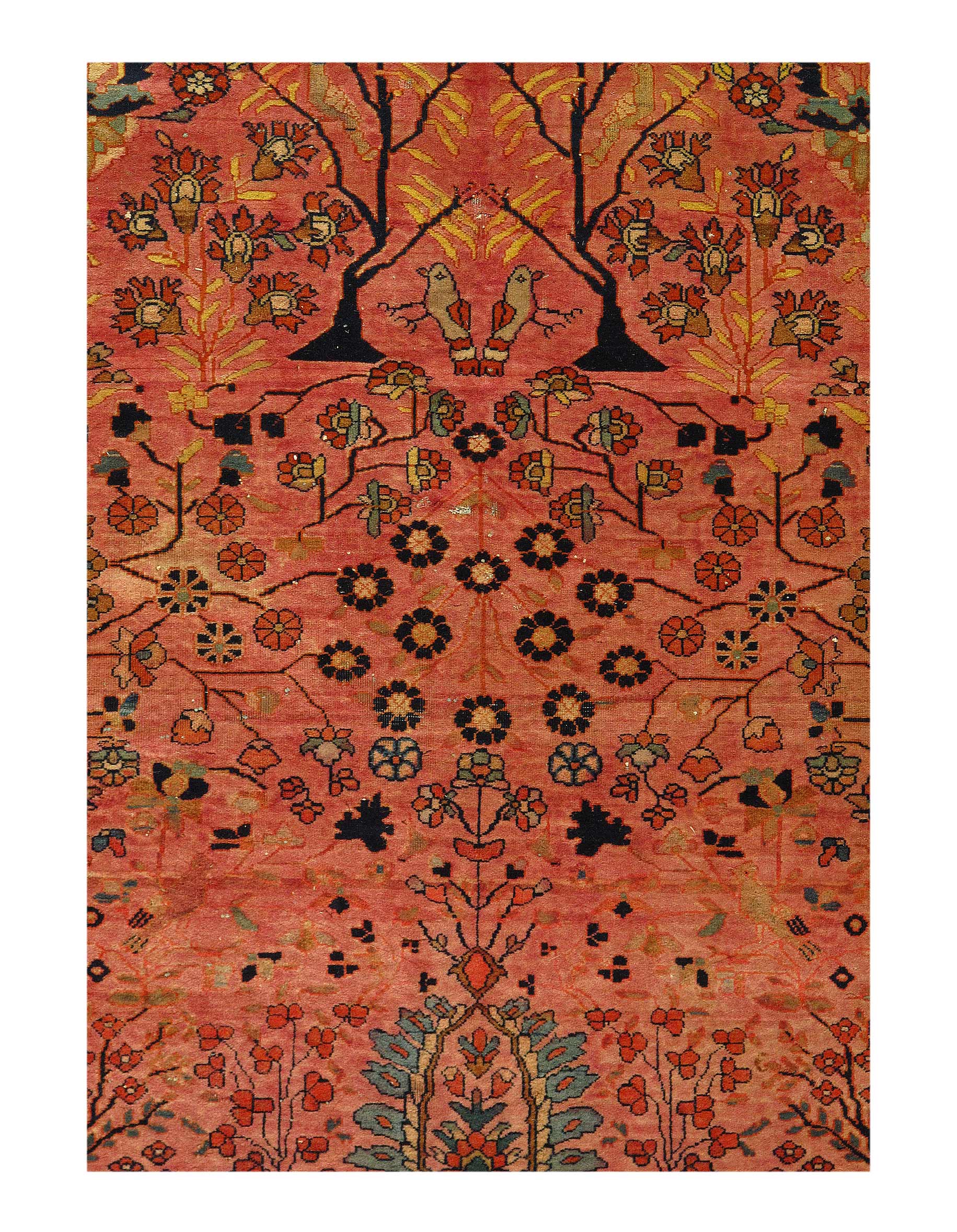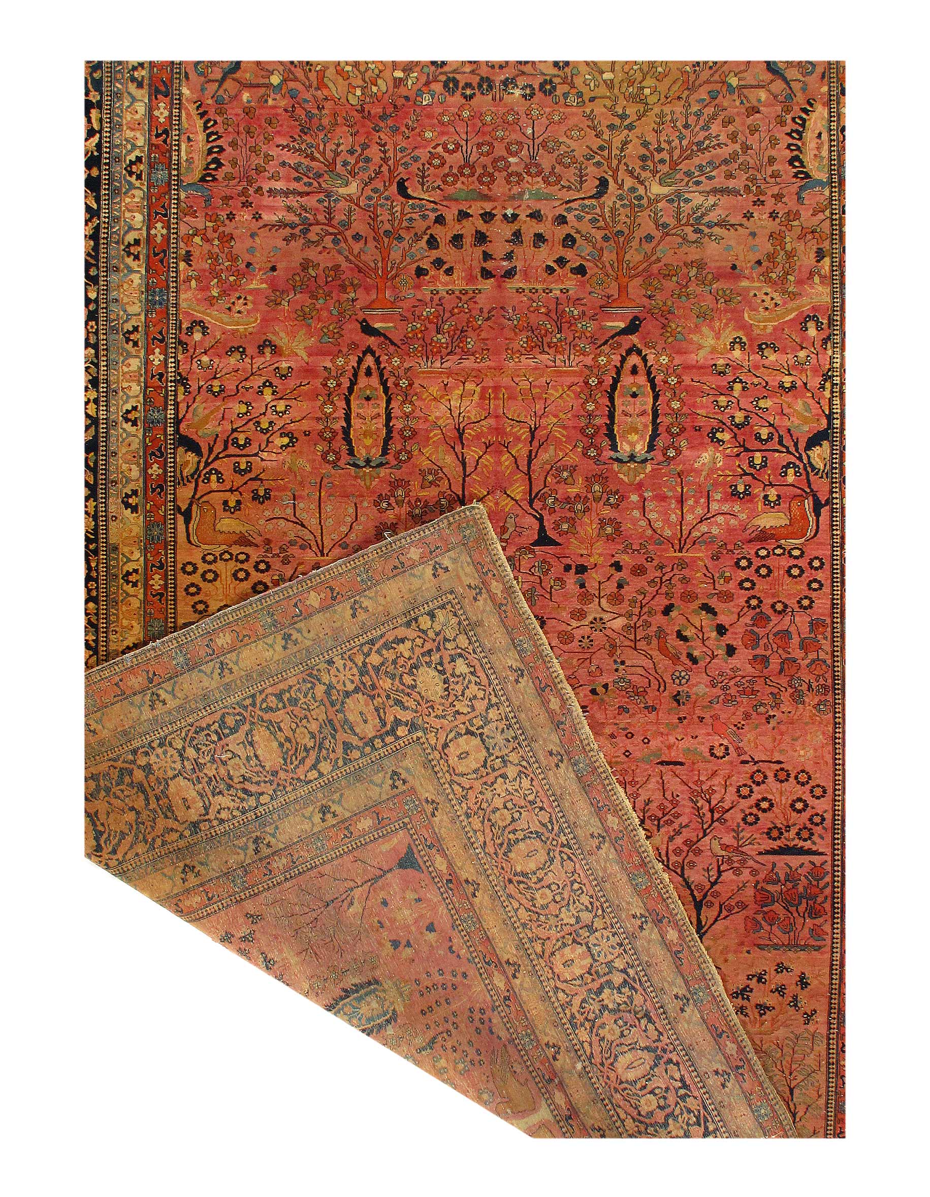 Magnificent And Luxurious Tree Of Life Design Antique Persian Mohtashem Kashan Rug, Country of Origin / Rug Type: Persian Rug, Circa Date: 1870 – This gorgeous antique Persian Mohtashem Kashan rug is a masterpiece of irresistible intrigue and idyllic allure. Graceful flora and fauna imagery dominate this luxurious rug’s facade in an exquisitely refined and detailed fashion.