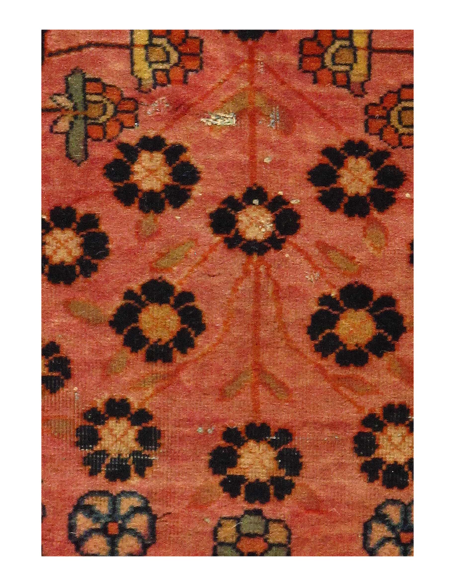The next border features a pastel sand color background. This light background color creates a magnificent juxtaposition with the richly colored floral patterns.